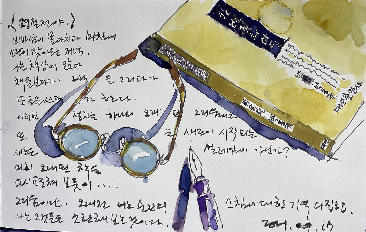그리움이란 오래전 어느 순간의 스침에 대한 기억들의 집합인가 보다. 기억의 소환. 가족이란 이토록 세밀히 스쳐야 하는 존재들있었는데, 그렇지 못함에 대한 회환이 문득 나를 때릴 때가 왜 없을까? 그때마다 나는 식구들을 생각하며 그림을 그리고, 책을 읽고, 글을 쓰자. 그리고 오래된 책을 다시 펴 보기도 하자. 시간에 태풍이 잦아들 듯, 내 그리움도 끝내 옅어지리니.