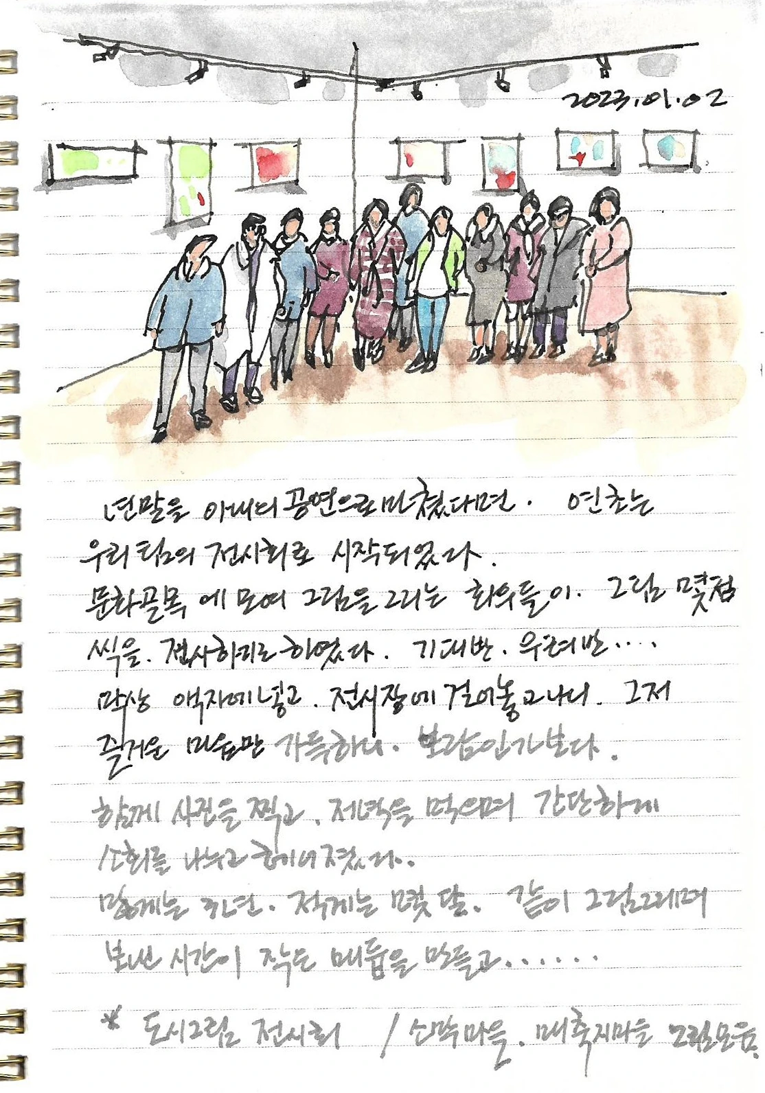 막상 액자에 넣고, 벽에 걸어놀고 나니, 그저 즐거운 마음만 가득. 이런게 보람인가 보다. 함께 사진을 찍고, 저녁을 먹고, 간단하게 소회를 나누었다. 많게는 3년, 적게는 몇 달. 같이 그림을 그리며 보낸 시간들이 작은 매듭을 하나를 만들었다.