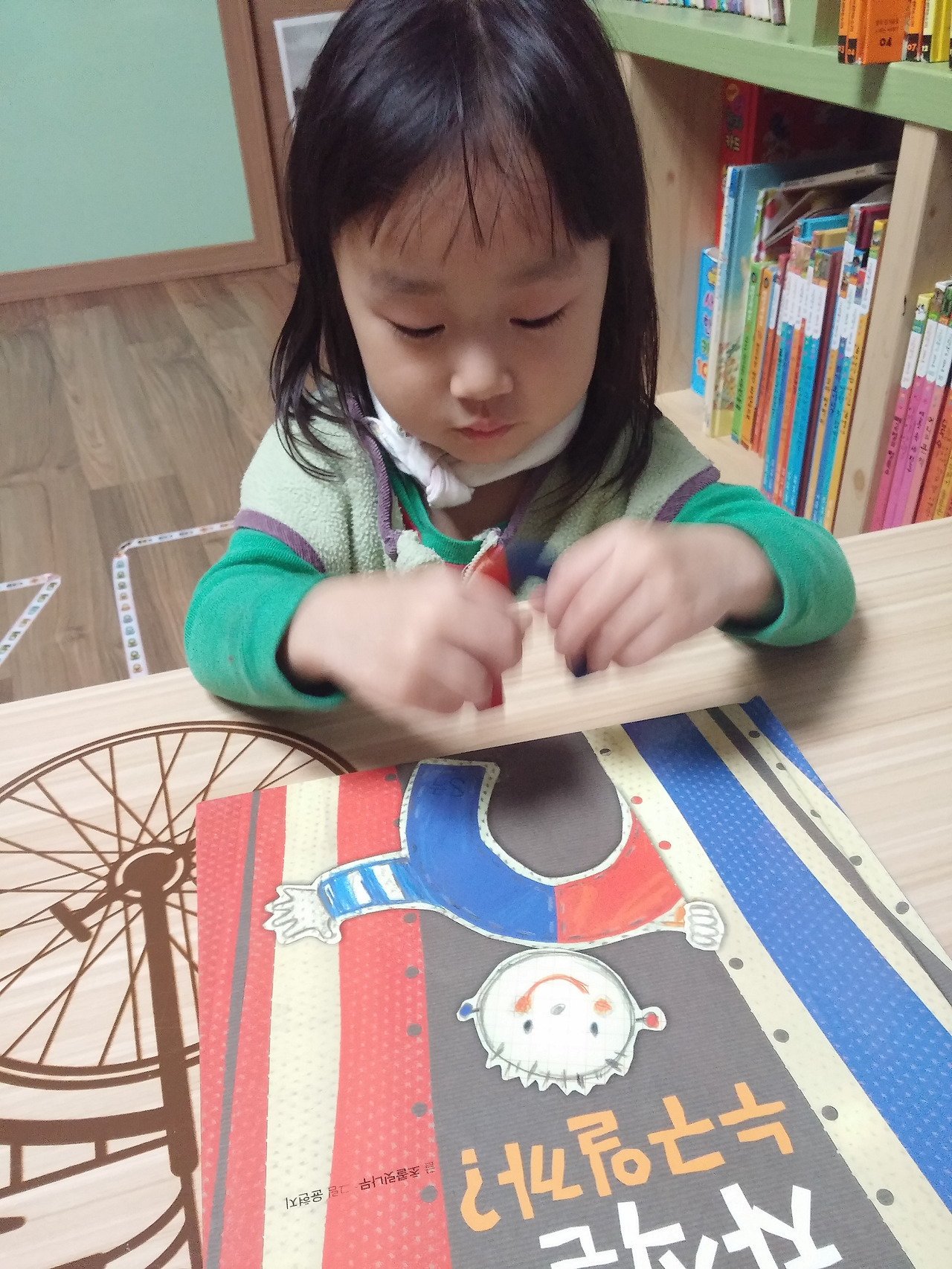 (딸 아이는 풀로 붙이자고 이야기 했다)