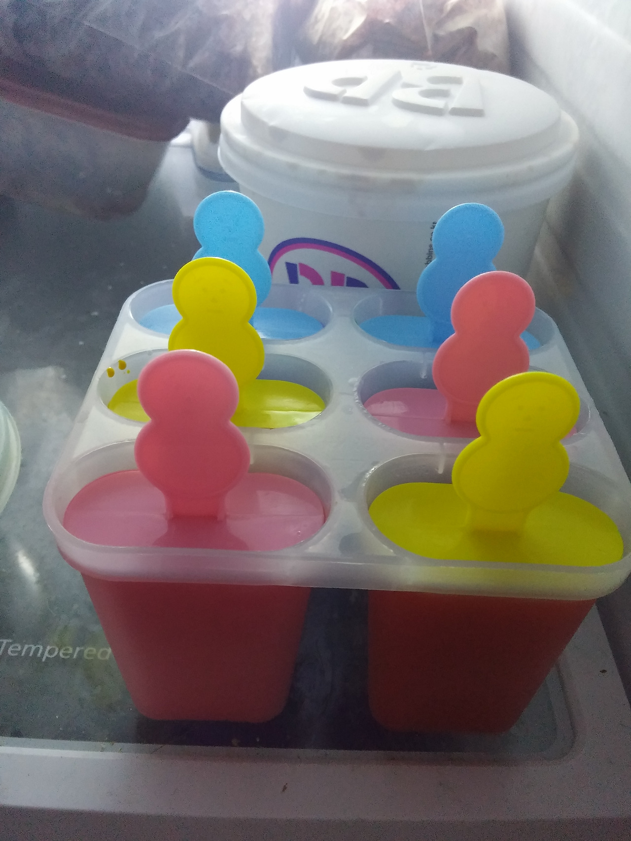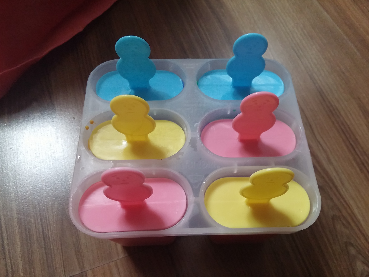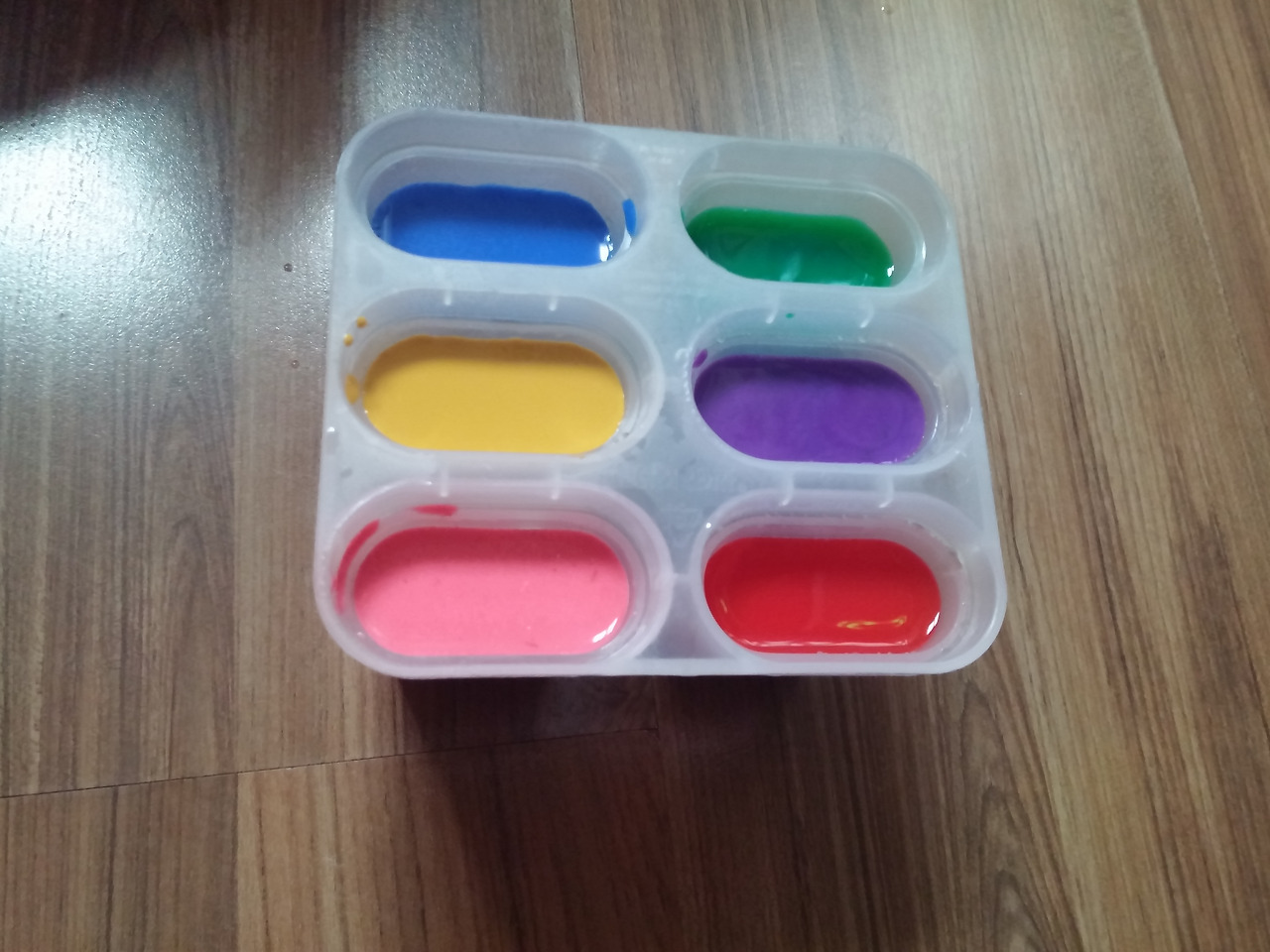 물감을 푼 물에 아이스크림 막대기를 꼽아주고