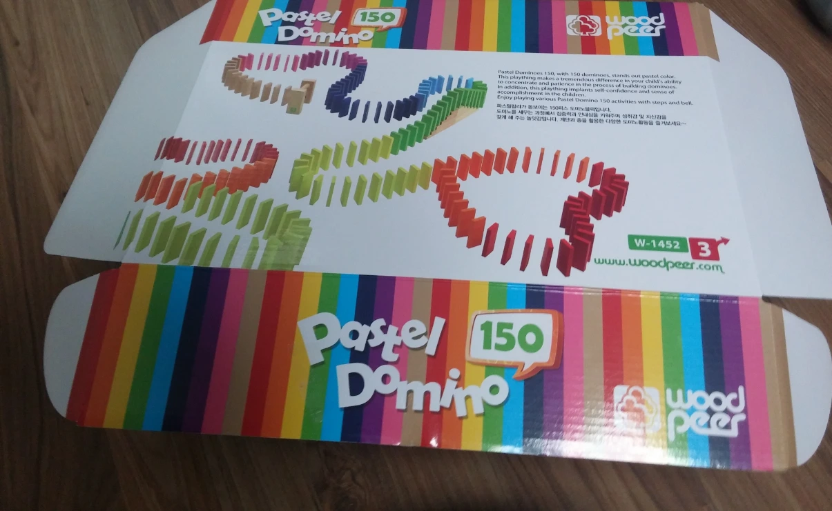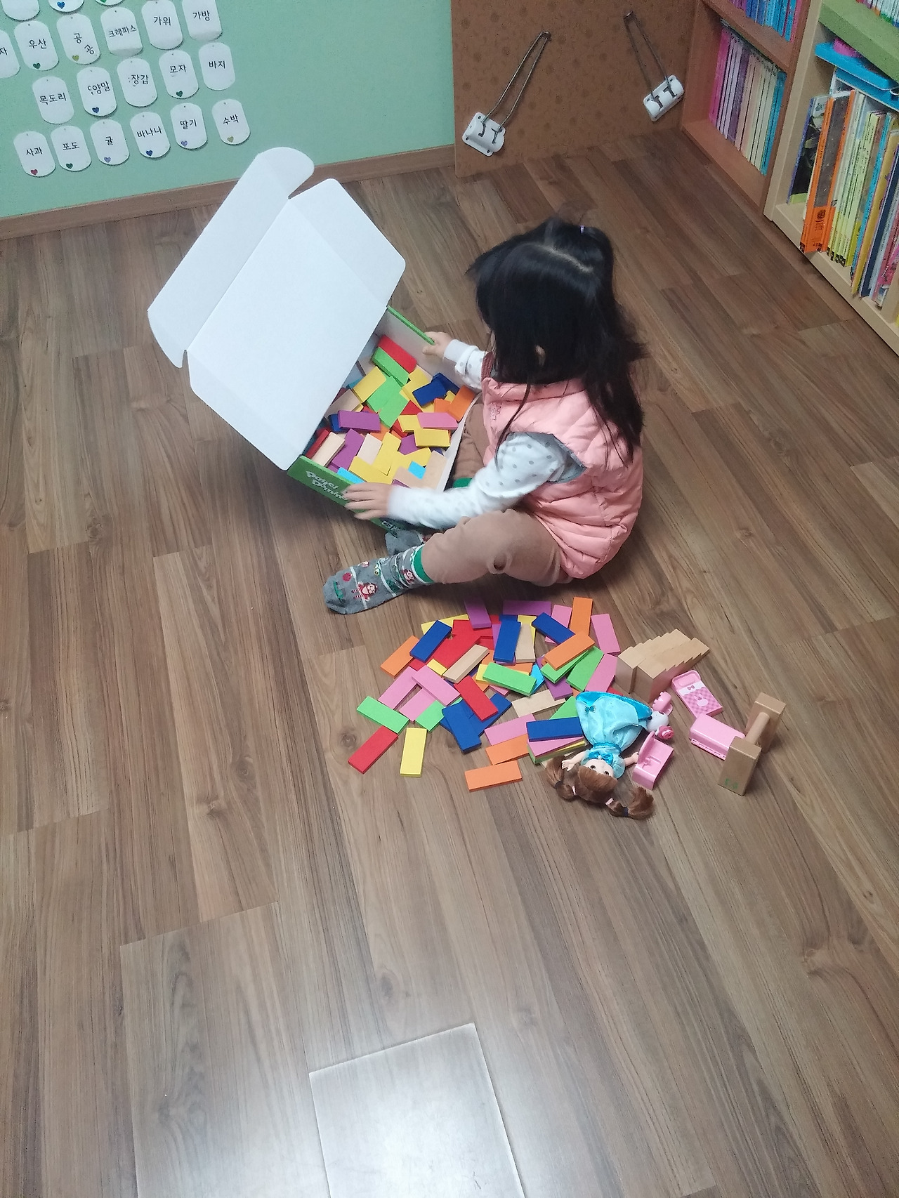 주말에 아빠와 둘이 놀던 아이가 책을 다 꺼내 달라더니 도미노를 하는 그 모습을 보고 측은하게?? 느낀 아빠가 도미노를 주문했다고 했다