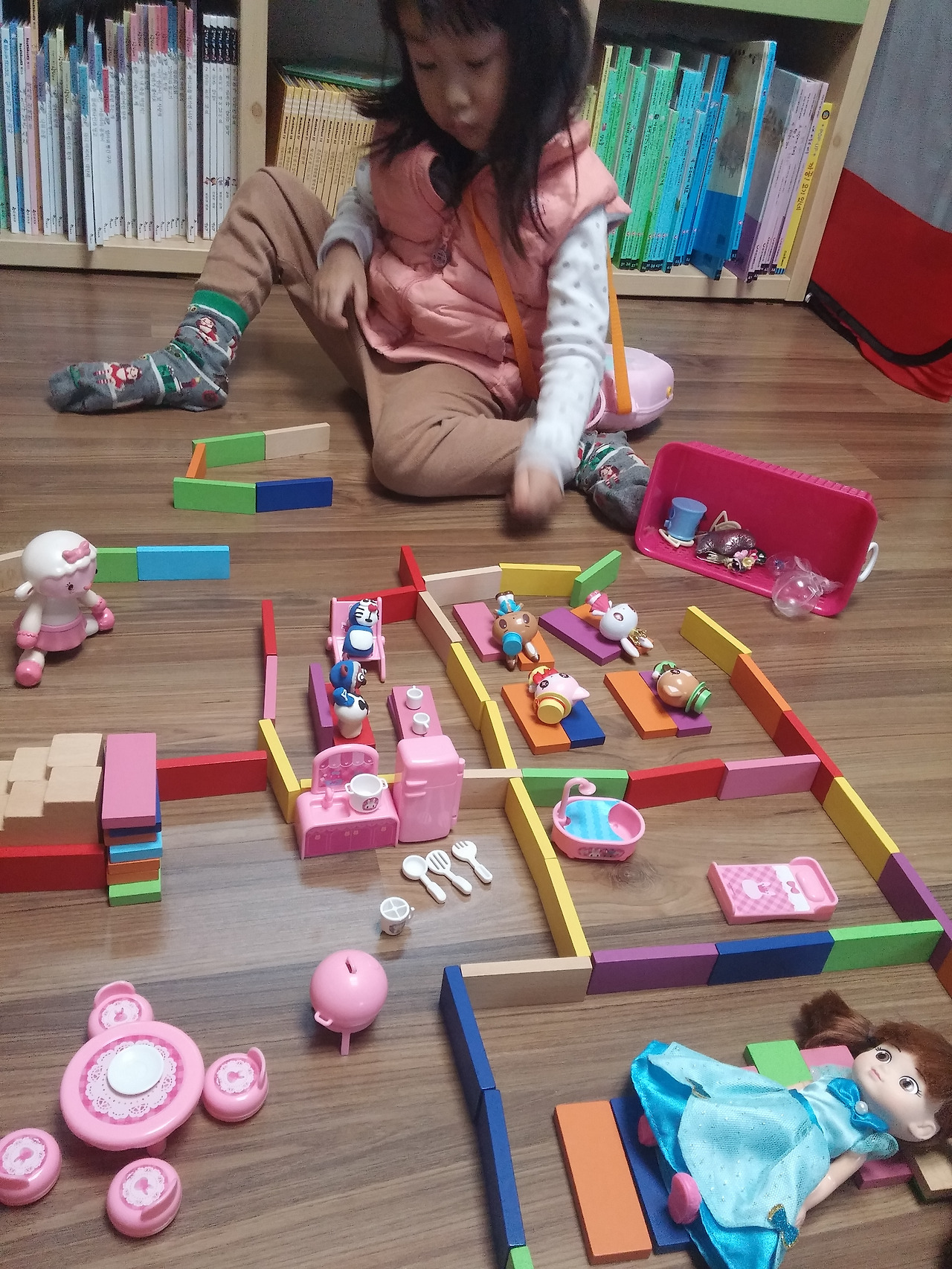 한동안 아이는 초 집중 상태를 보이며 인형들의 집을 만든다
