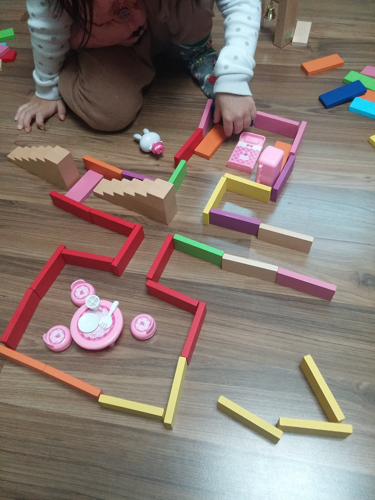 한참을 놀던 아이가 도미노로 다른걸 만들고 놀고 싶더고 하길래 가로로 눕혀 주었더니 집을 만들자고 한다