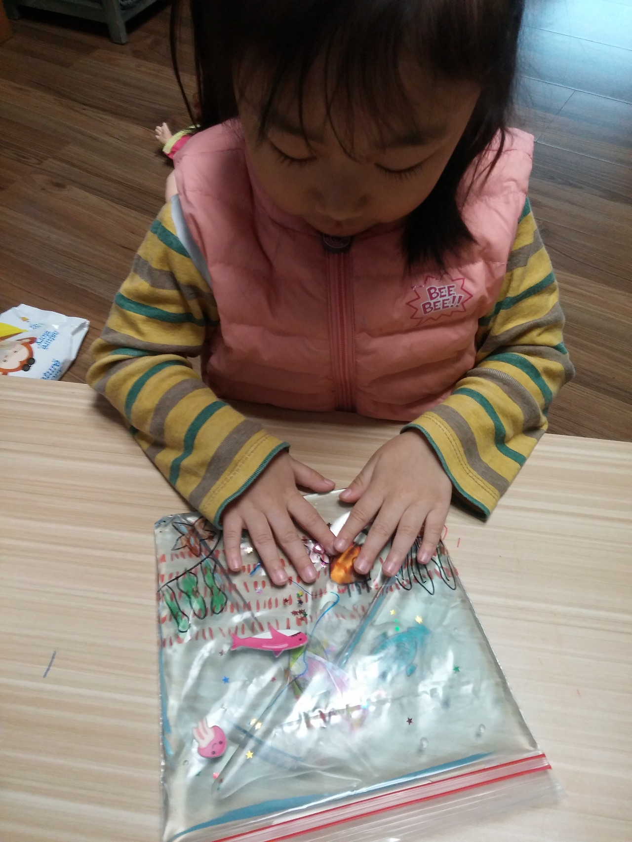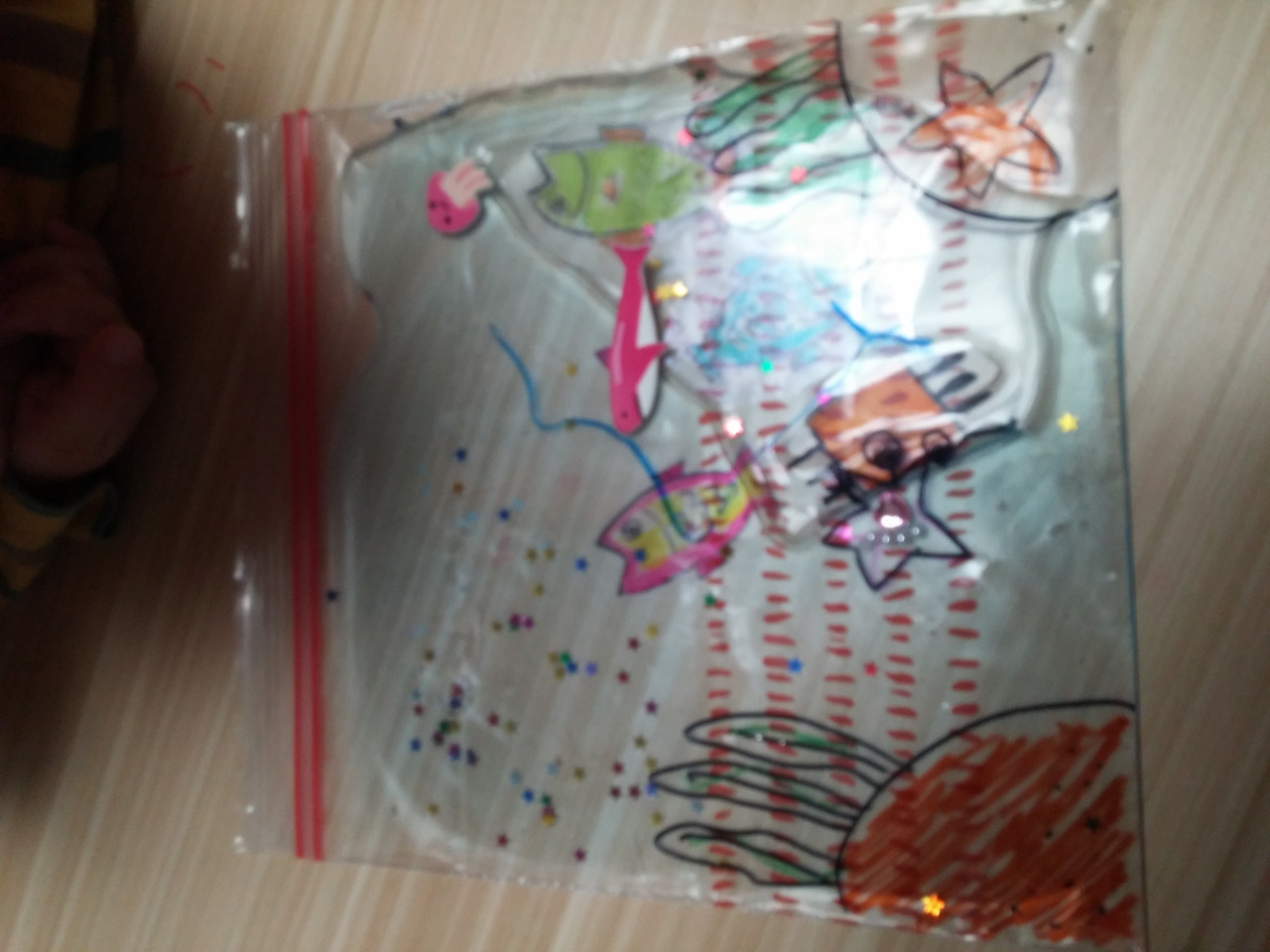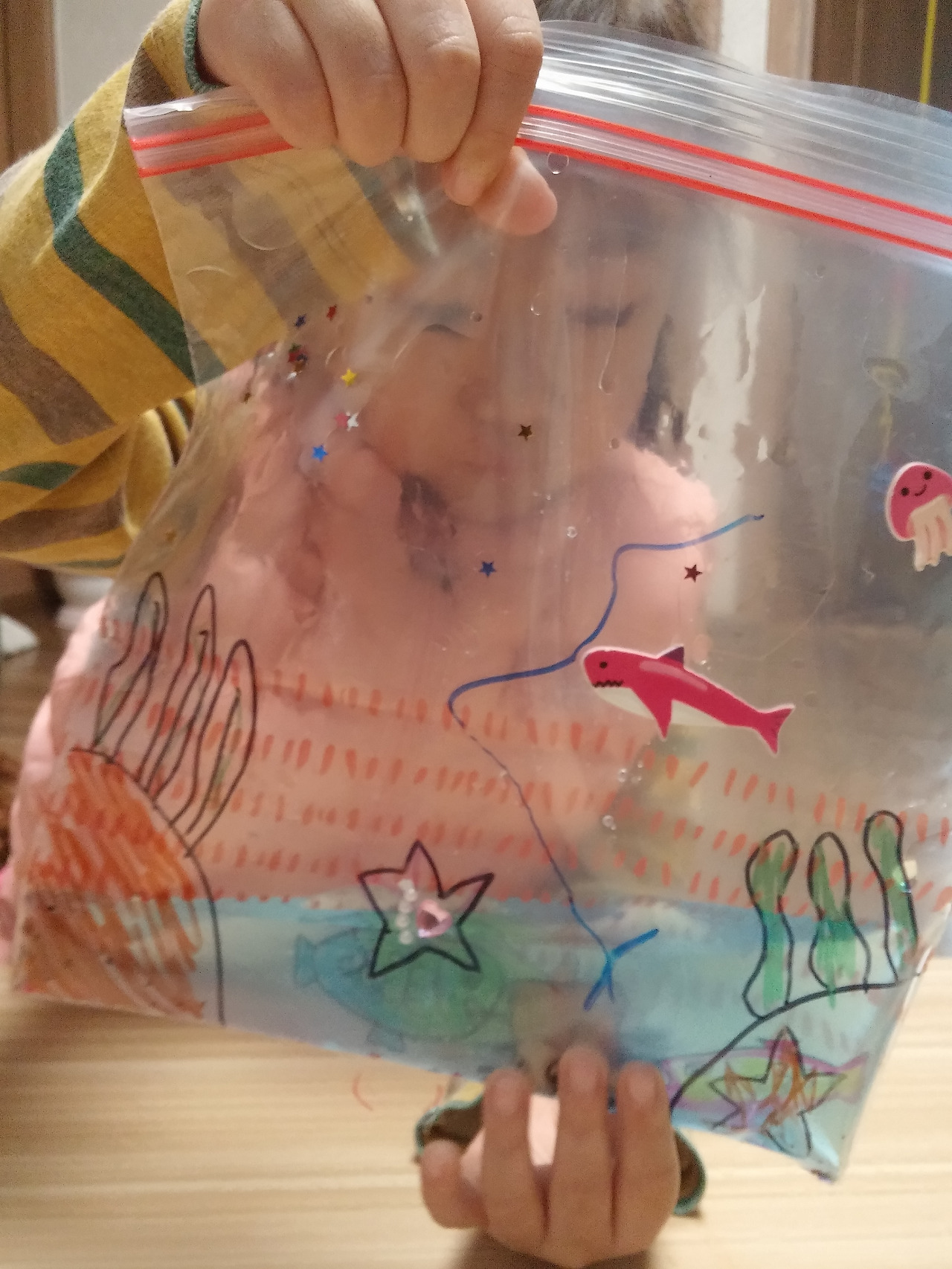 지퍼백 겉 면에 바닷 속 그리기와 꾸미기