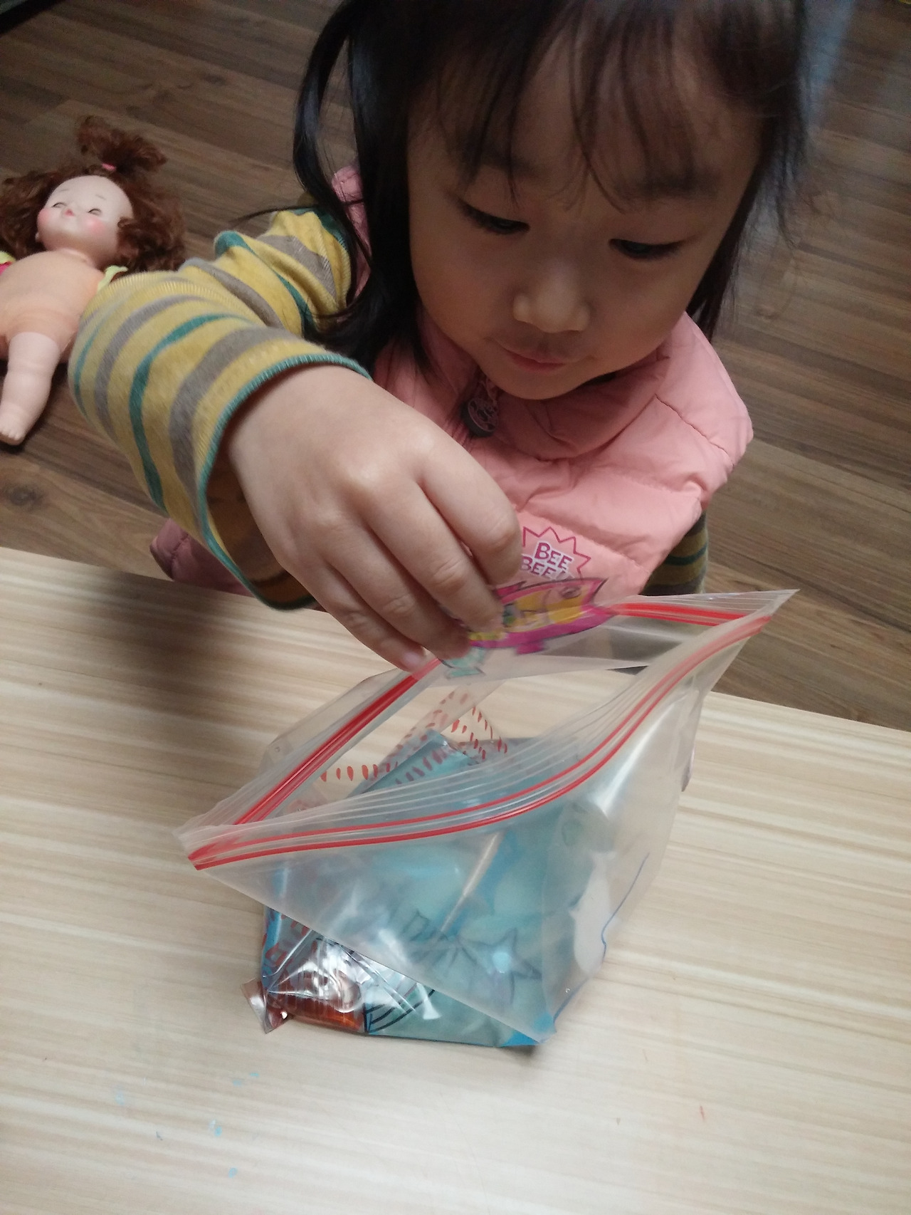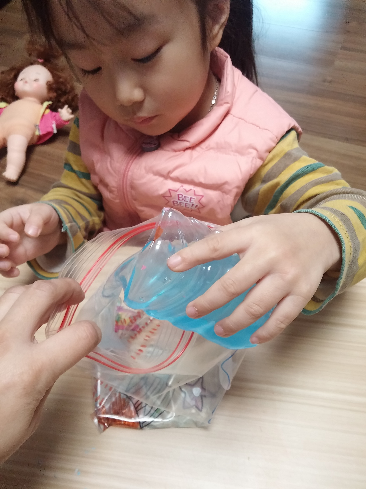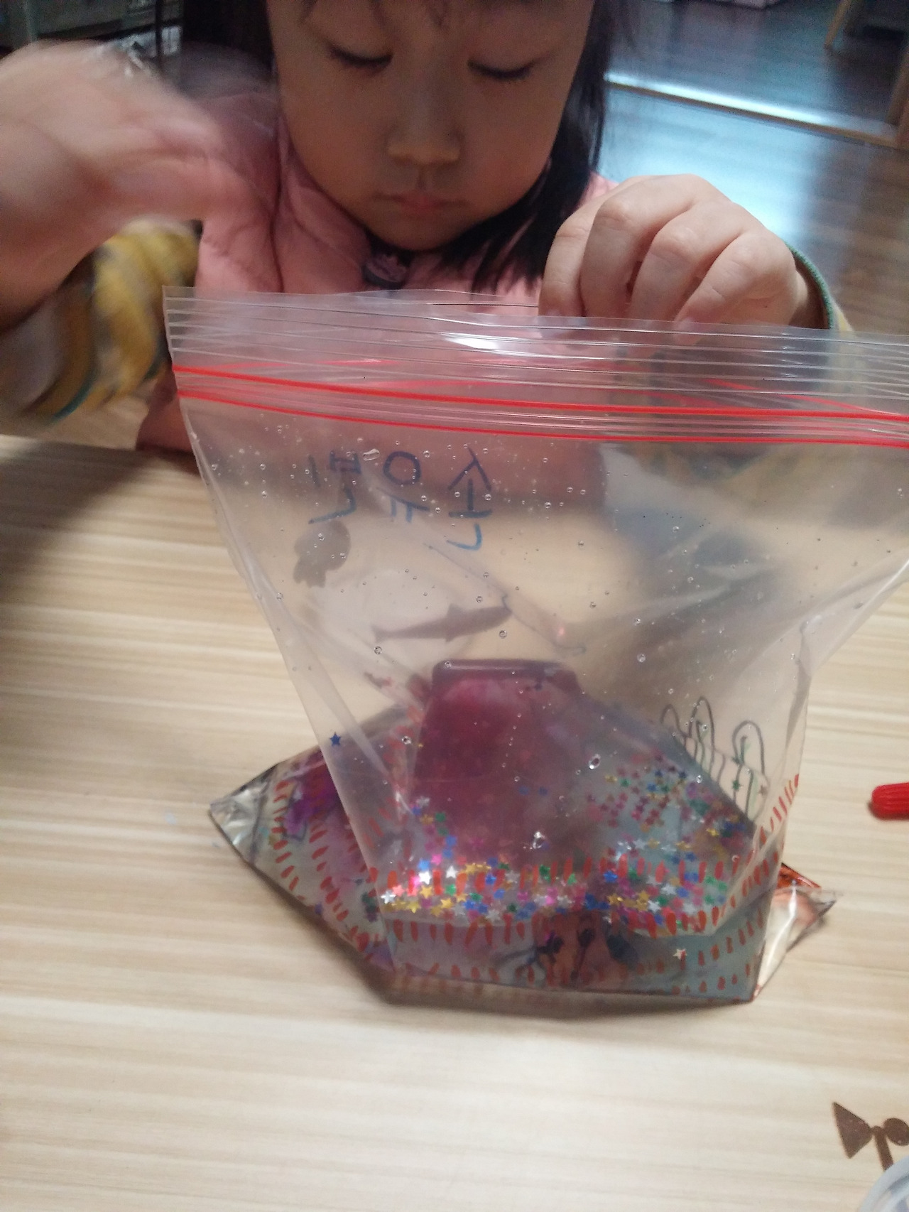 지퍼백에 물을 넣기