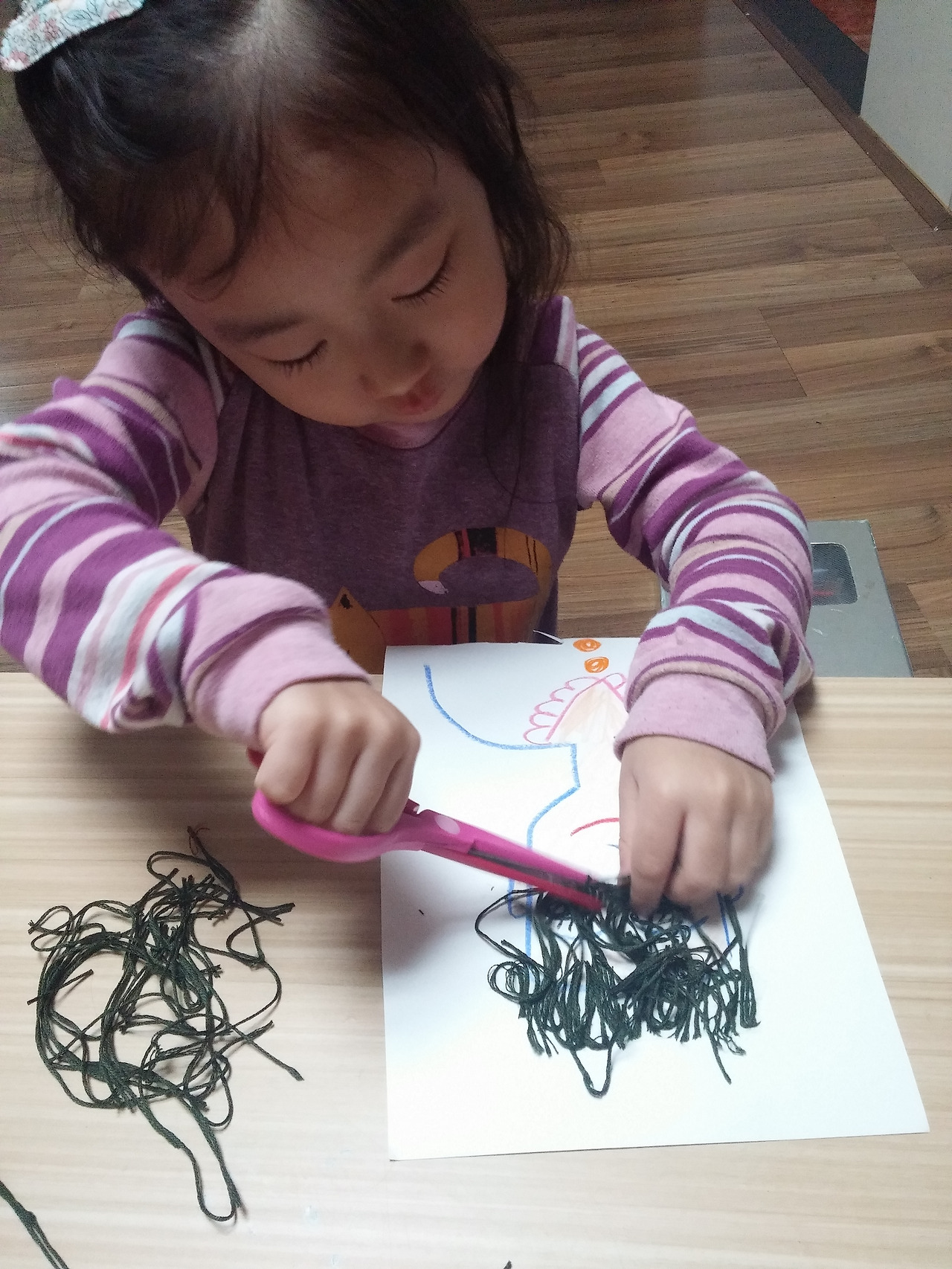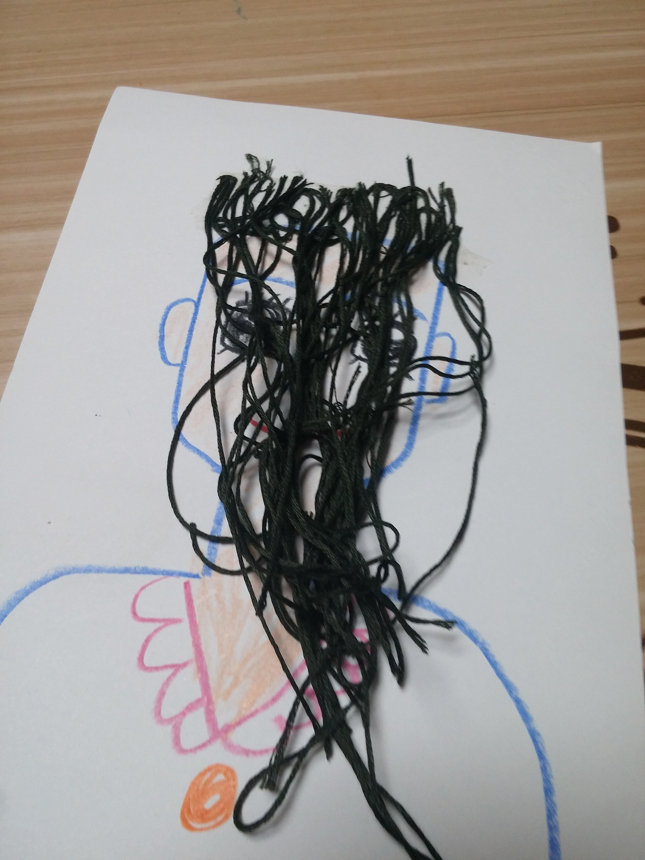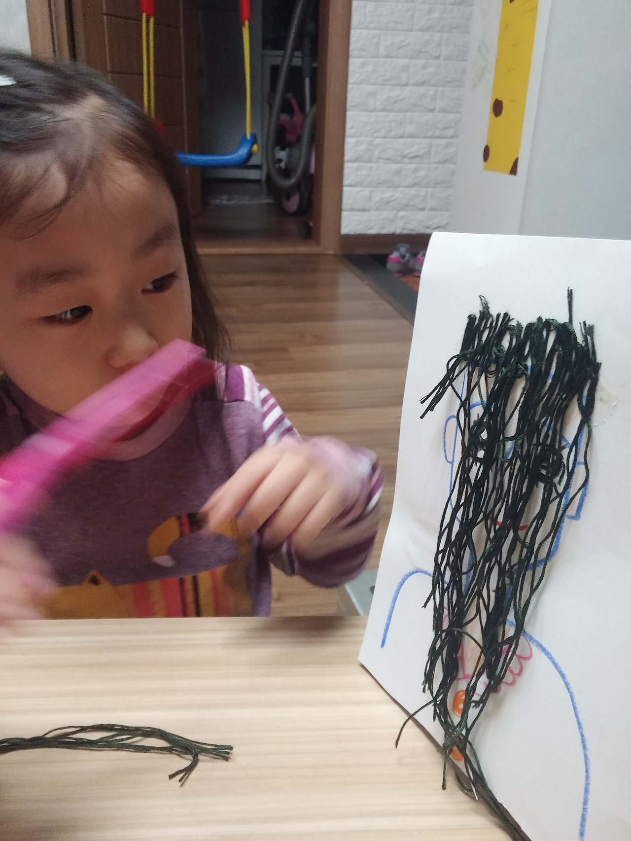 3. 자른 실을 붙여 머리카락 완성!!