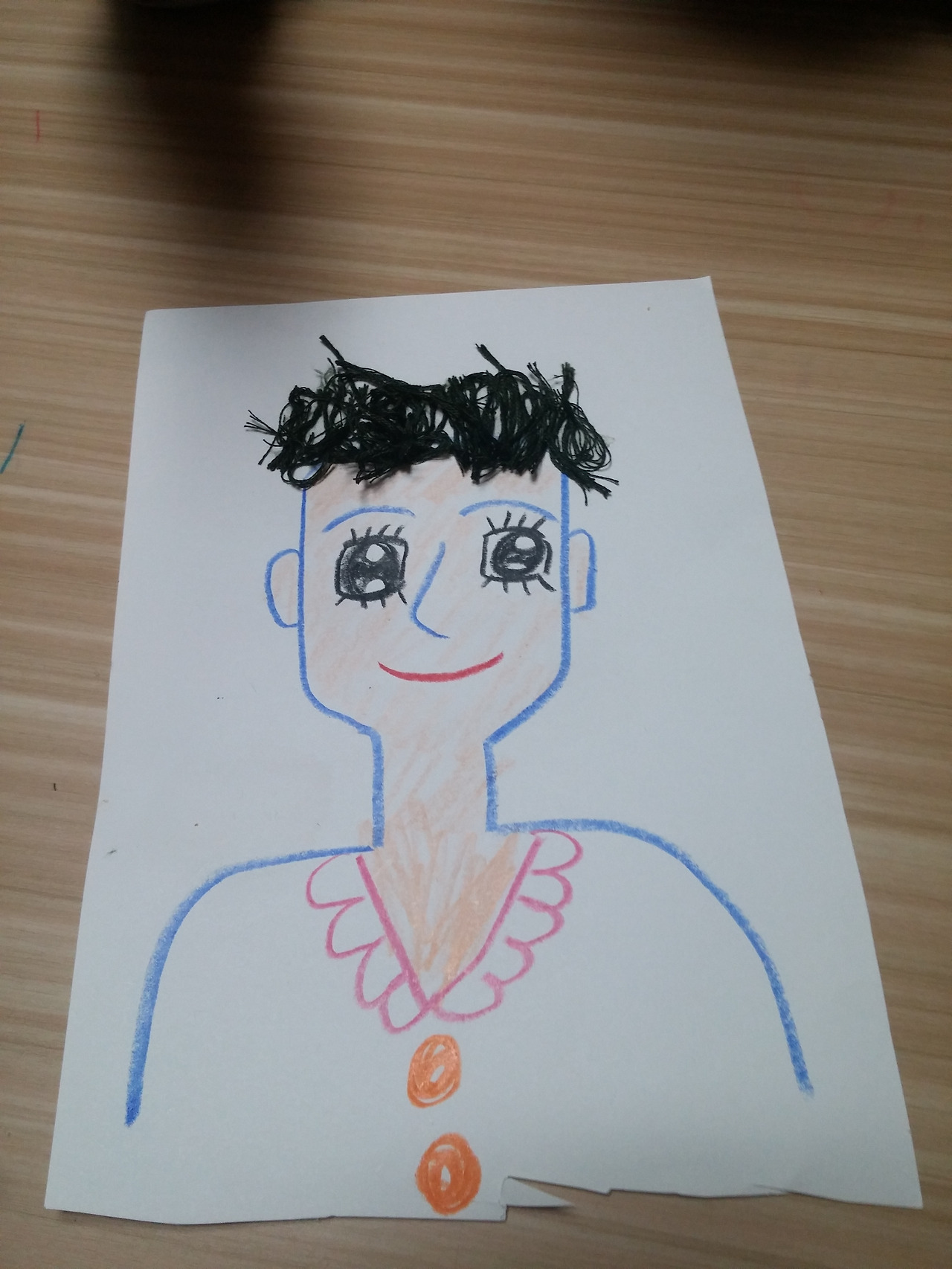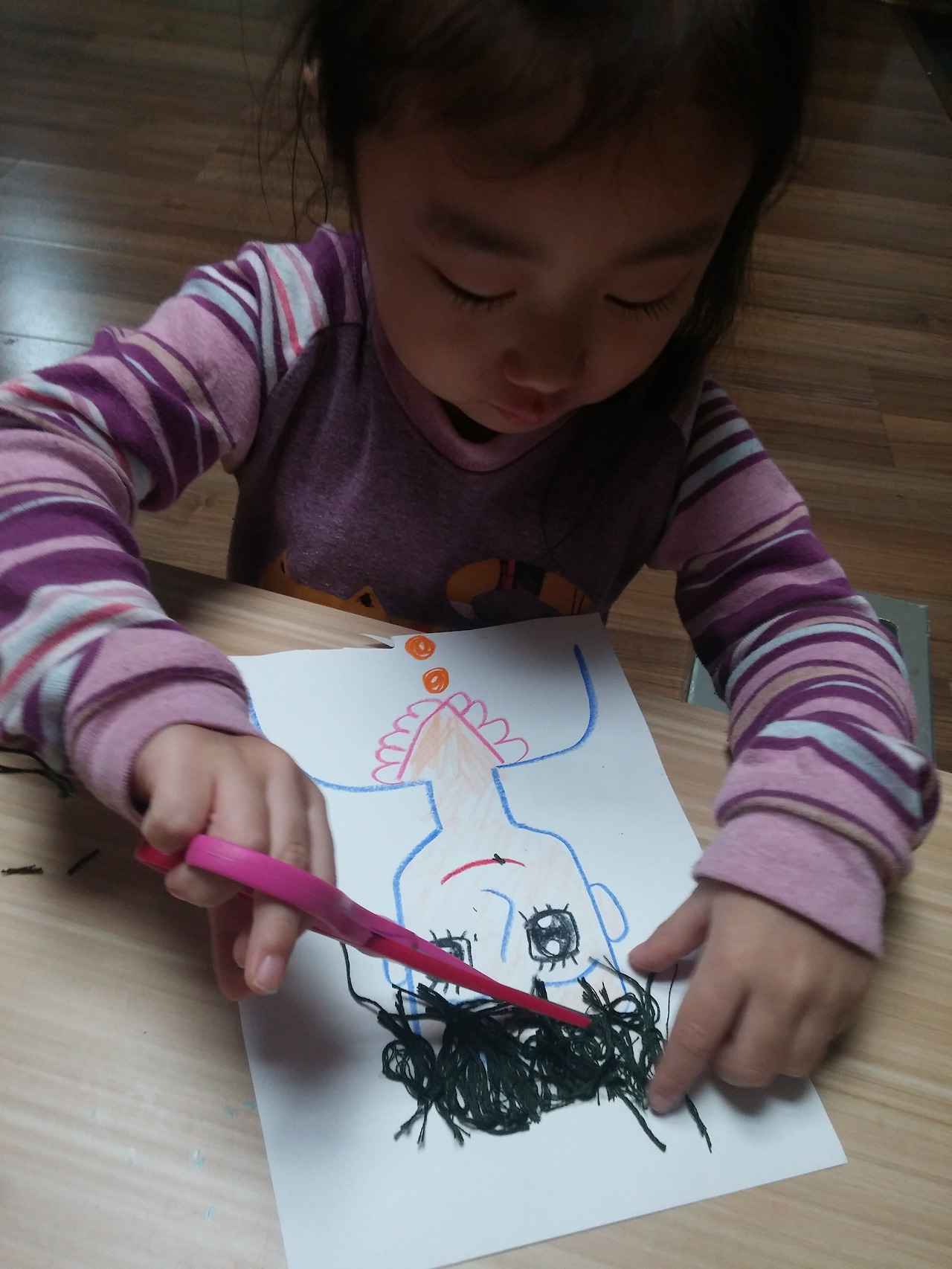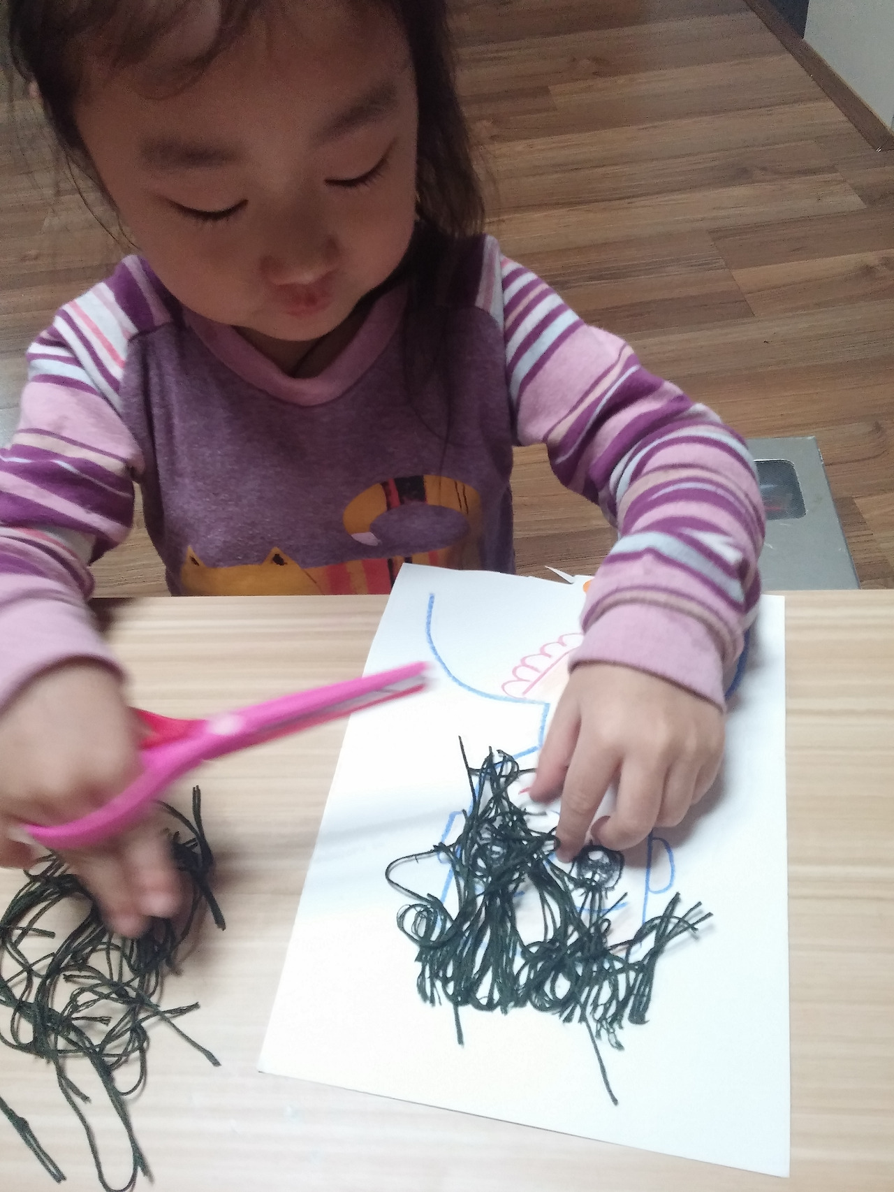 3. 자른 실을 붙여 머리카락 완성!!