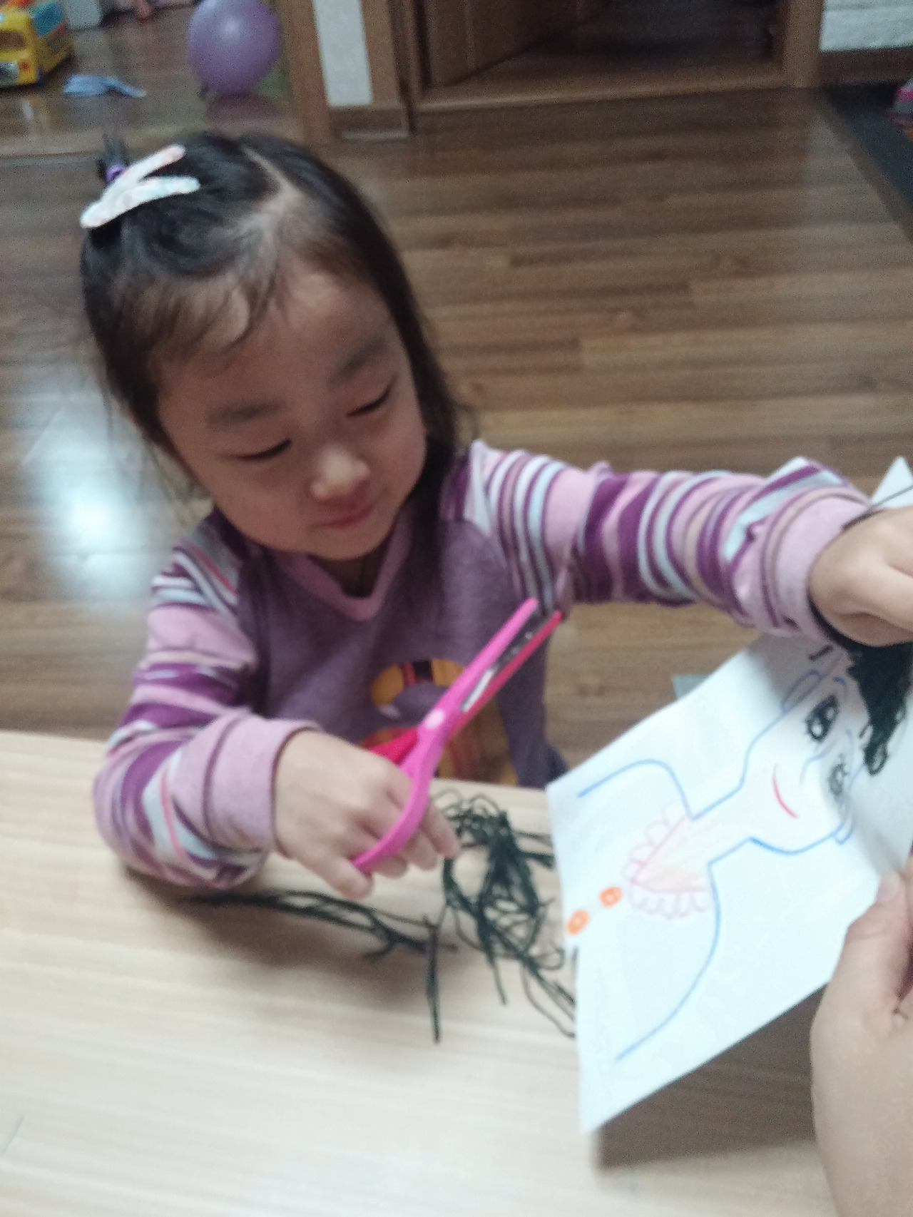 며칠 전 진짜 머리카락을 자르고 싶었는지 내 머리카락과 자신의 머리카락을