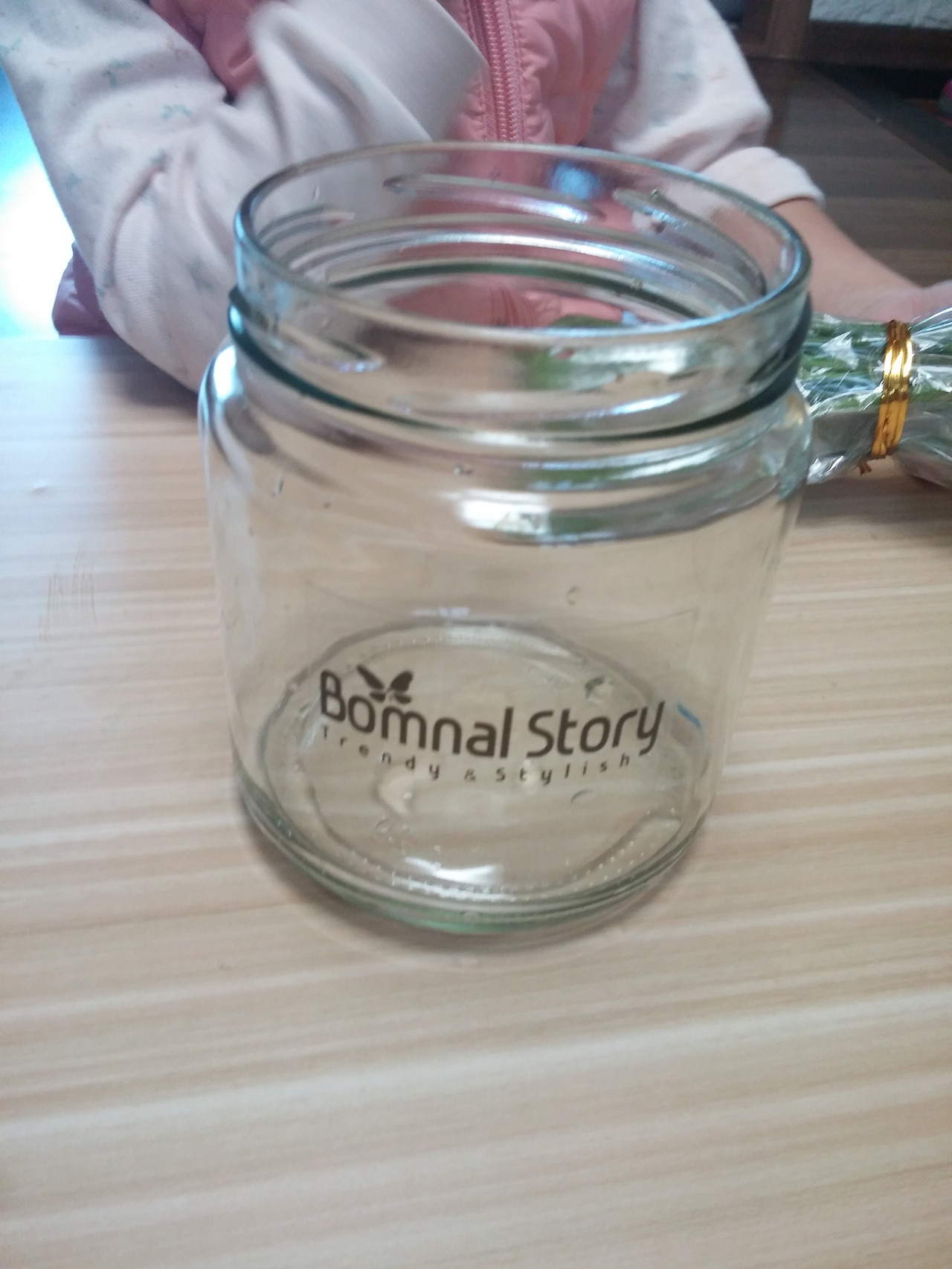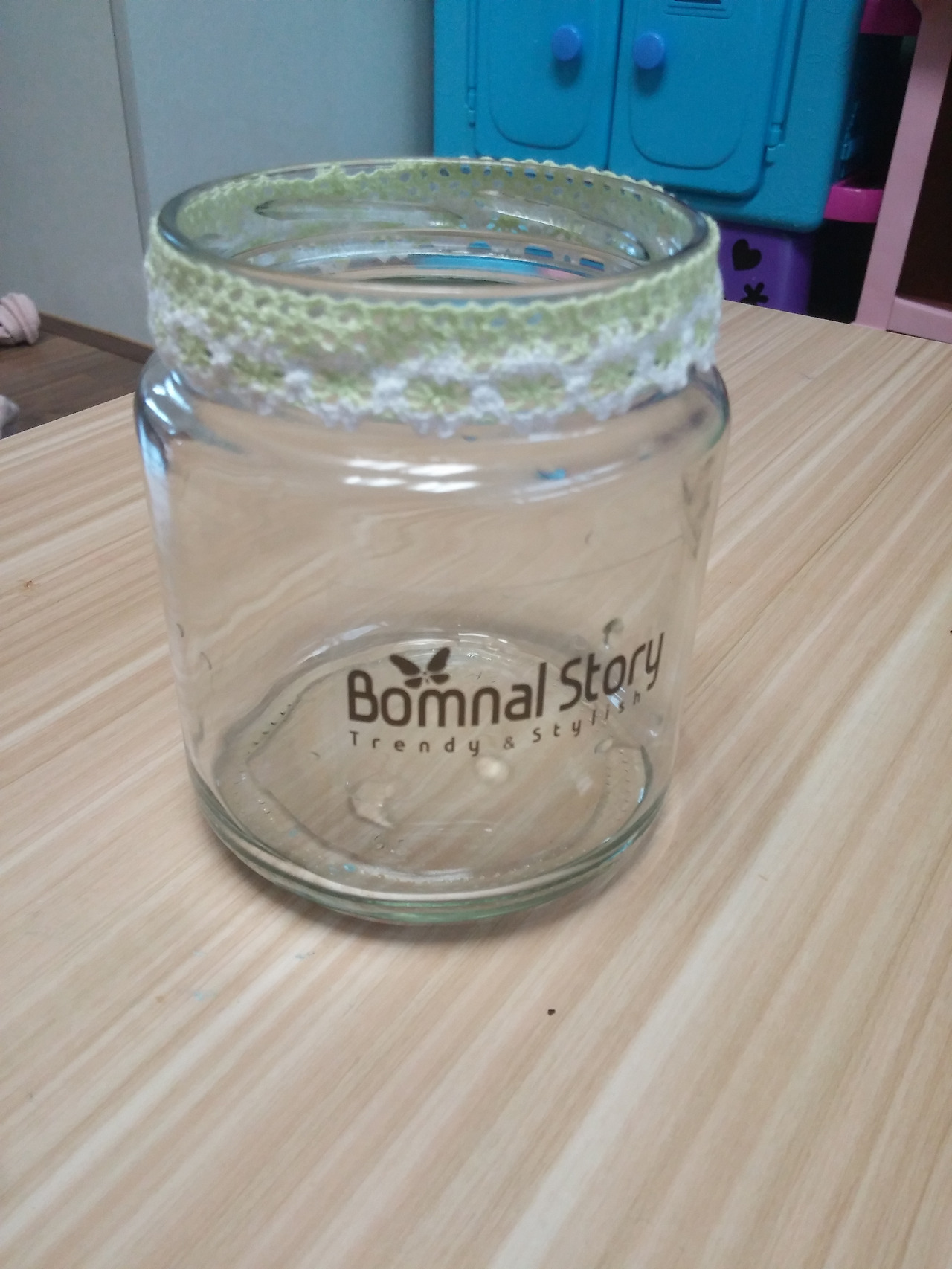 때마침 우리 집에 있는 (친구에게 프리마켓에서 산) 피클병과 리본끈을 가져와