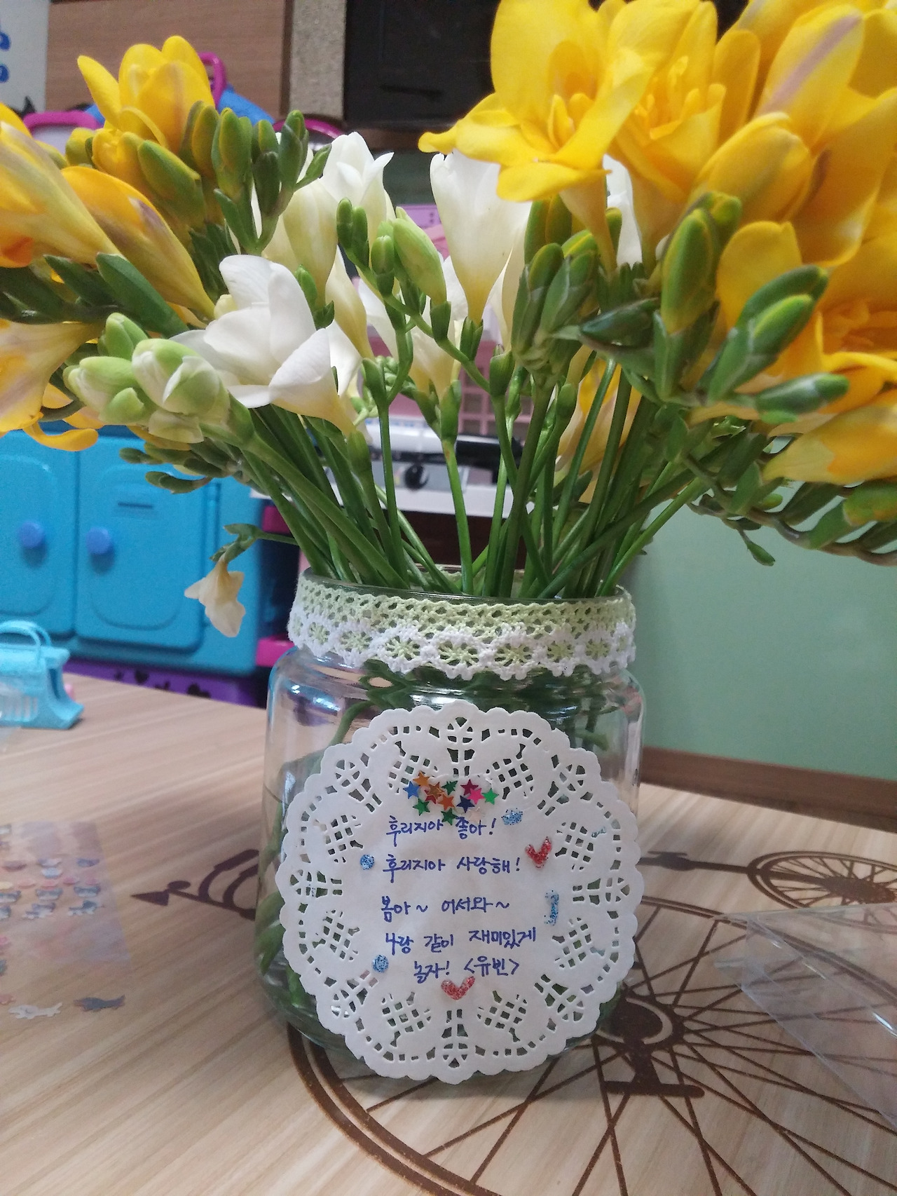 후리지아라며 좋아하고