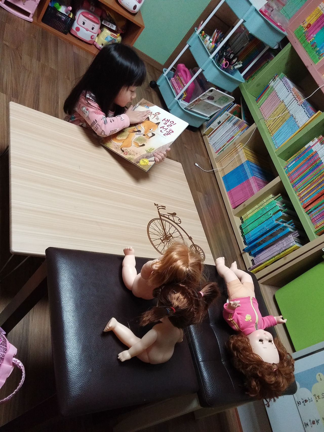 오늘은 인형 아이들에게 책을 읽어 준다며