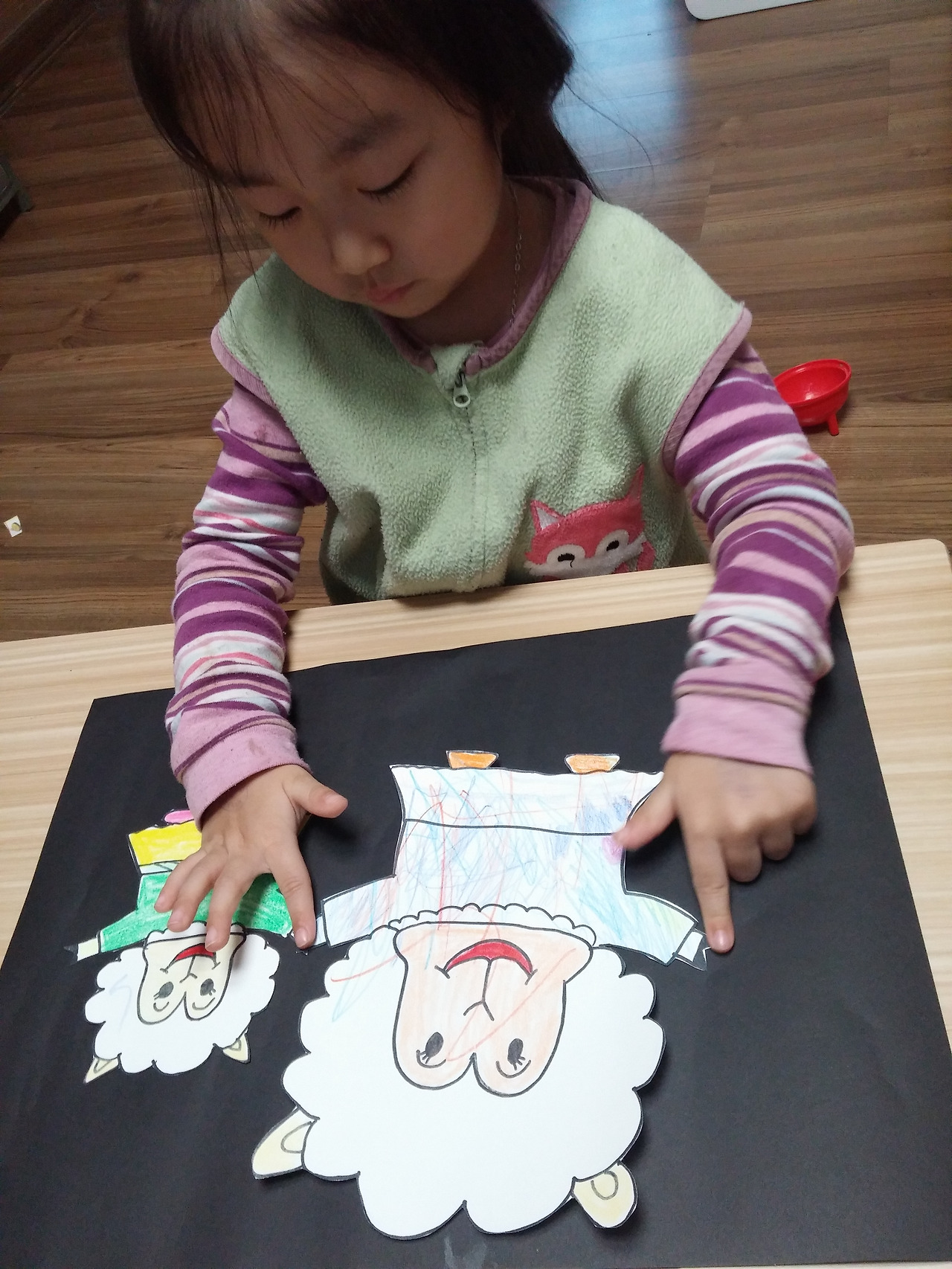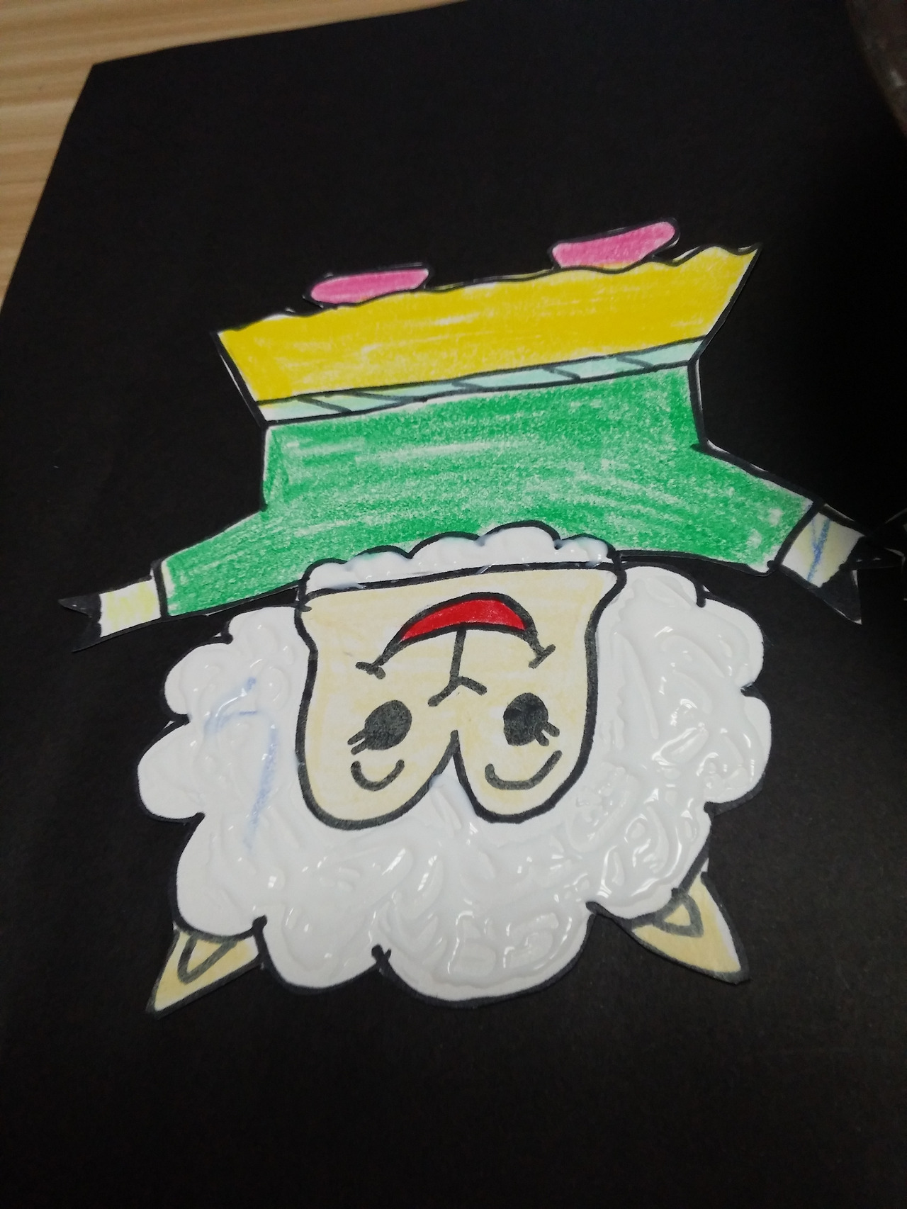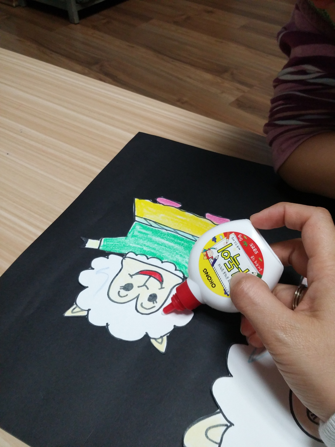 양 그림에 색칠을 한 후 오려서 검정 도화지에 붙여준다
