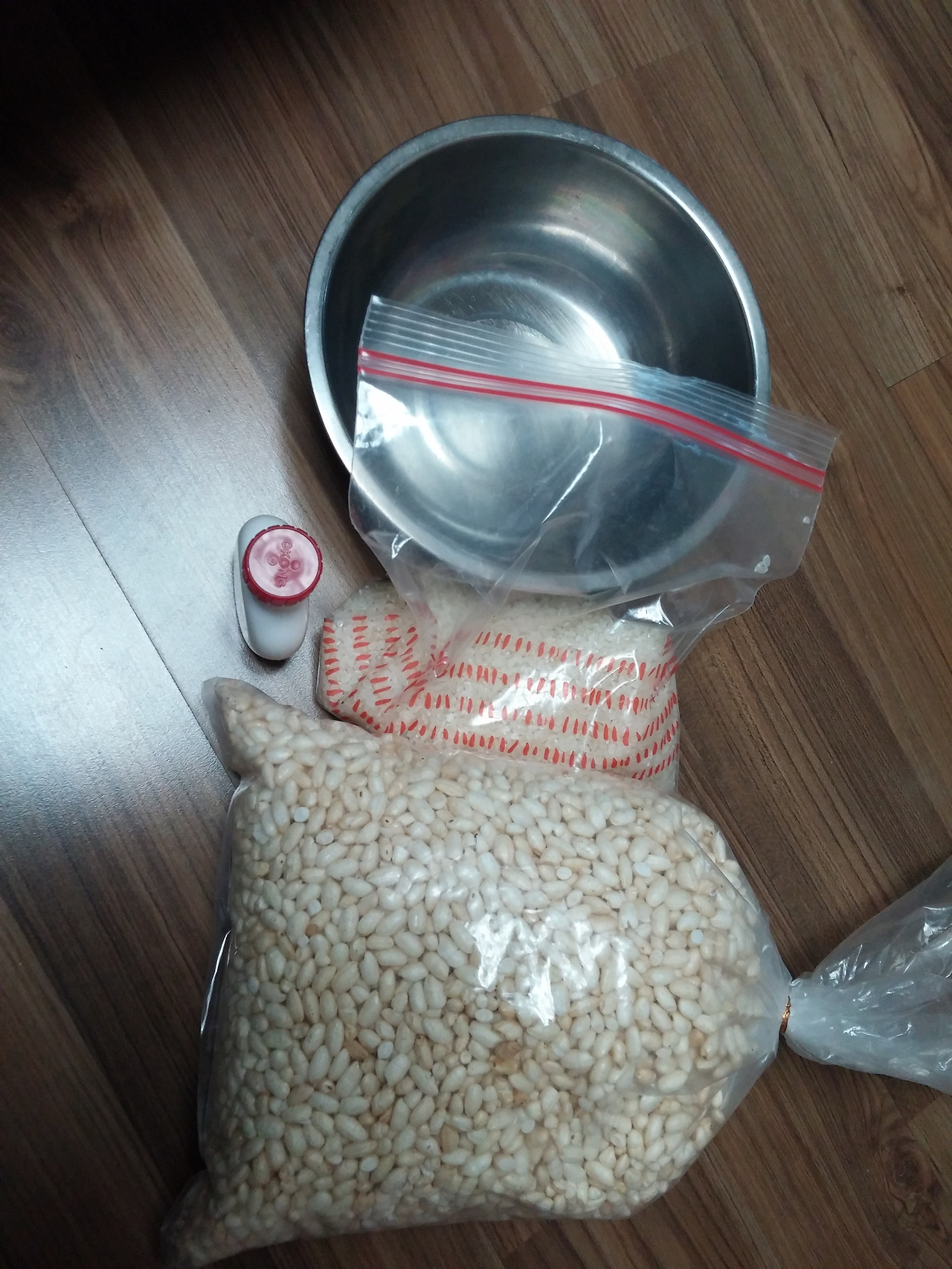 친구네 아파트에 장이 선 날 튀밥을 사 와 쌀과 쌀튀밥을 비교해 보는 놀이를 하기로 한 날