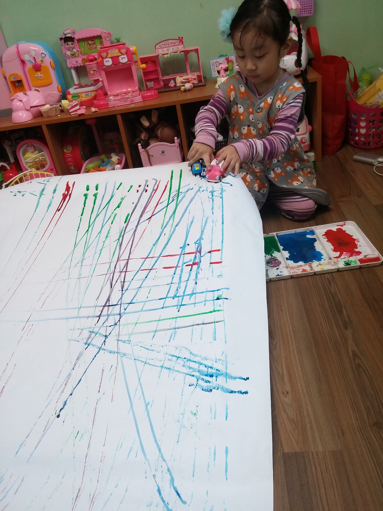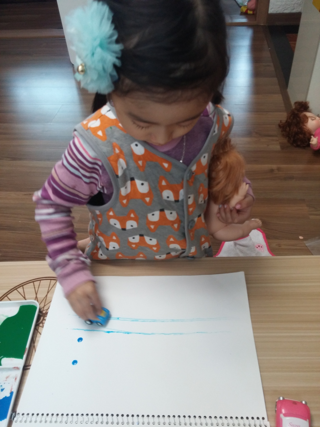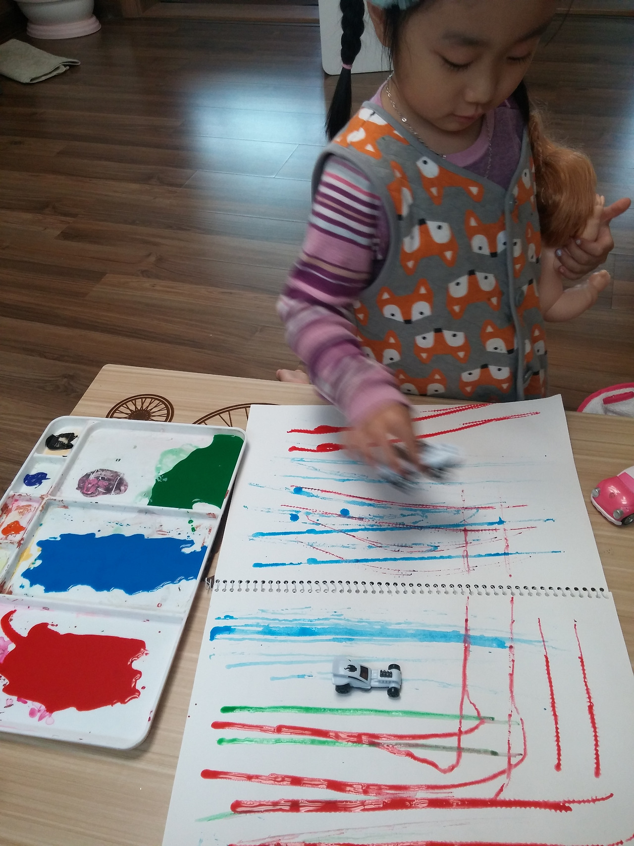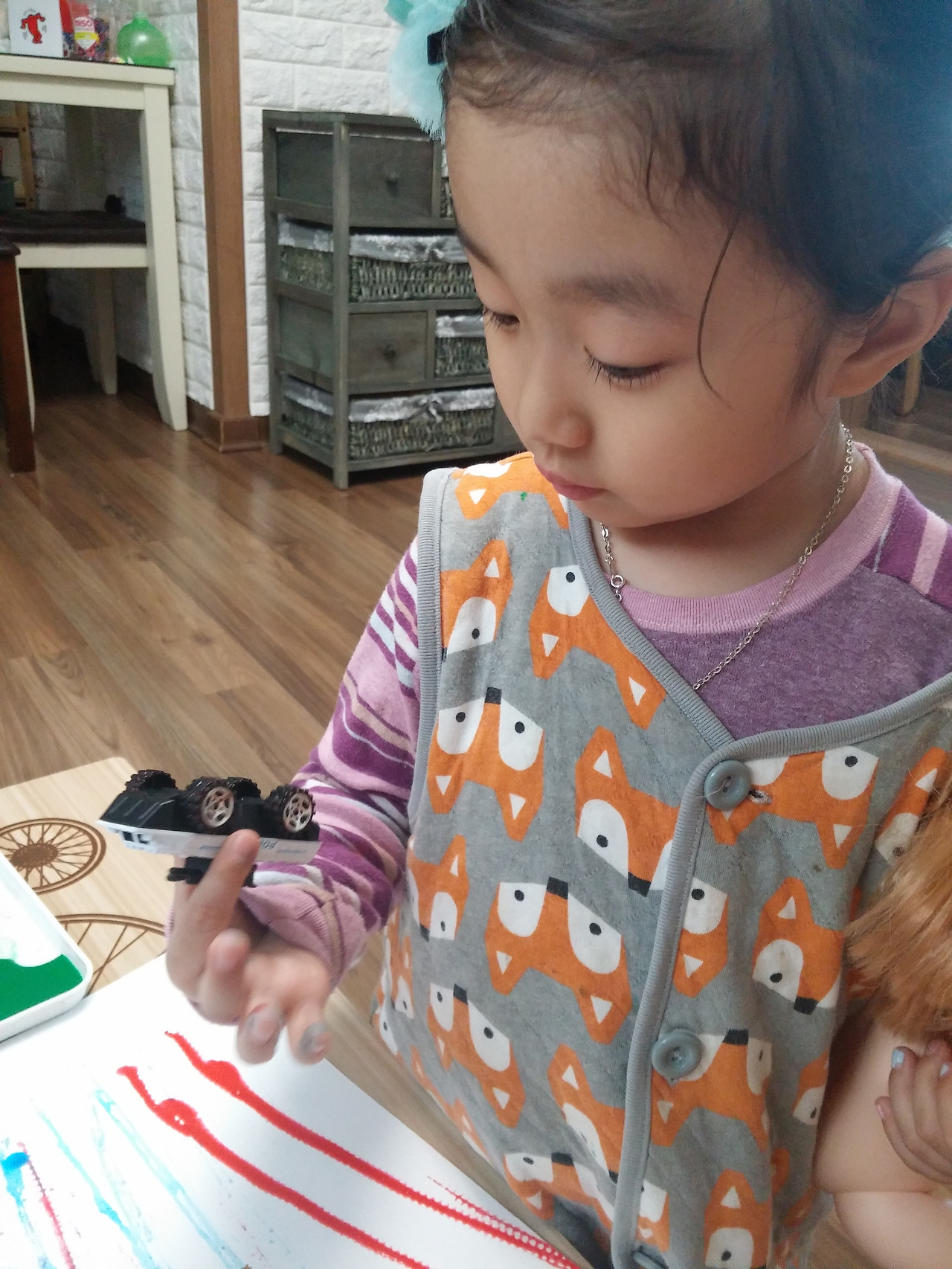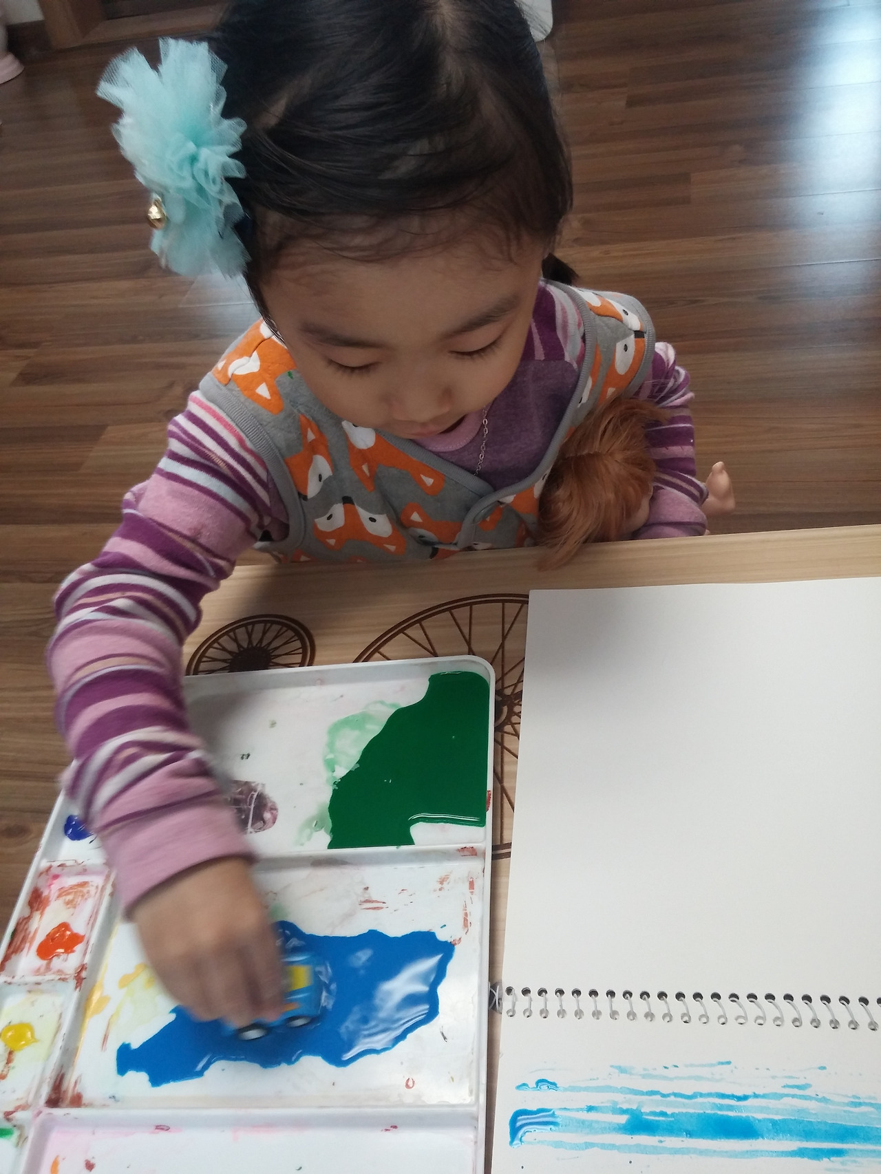 동그란 바퀴가 물감을 묻혀 그림을 그리면 어떤 모양일까? 물어보자 고민도 안하고 동그라미!!를