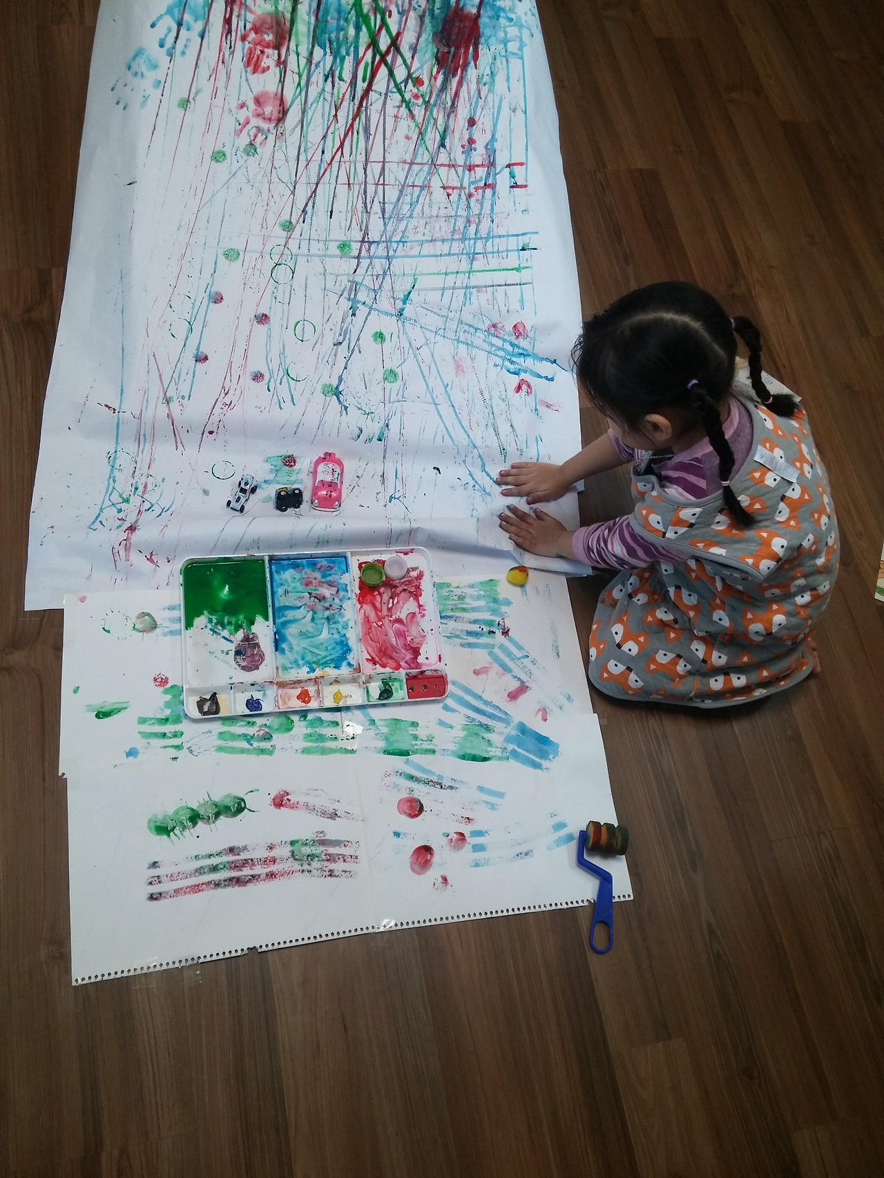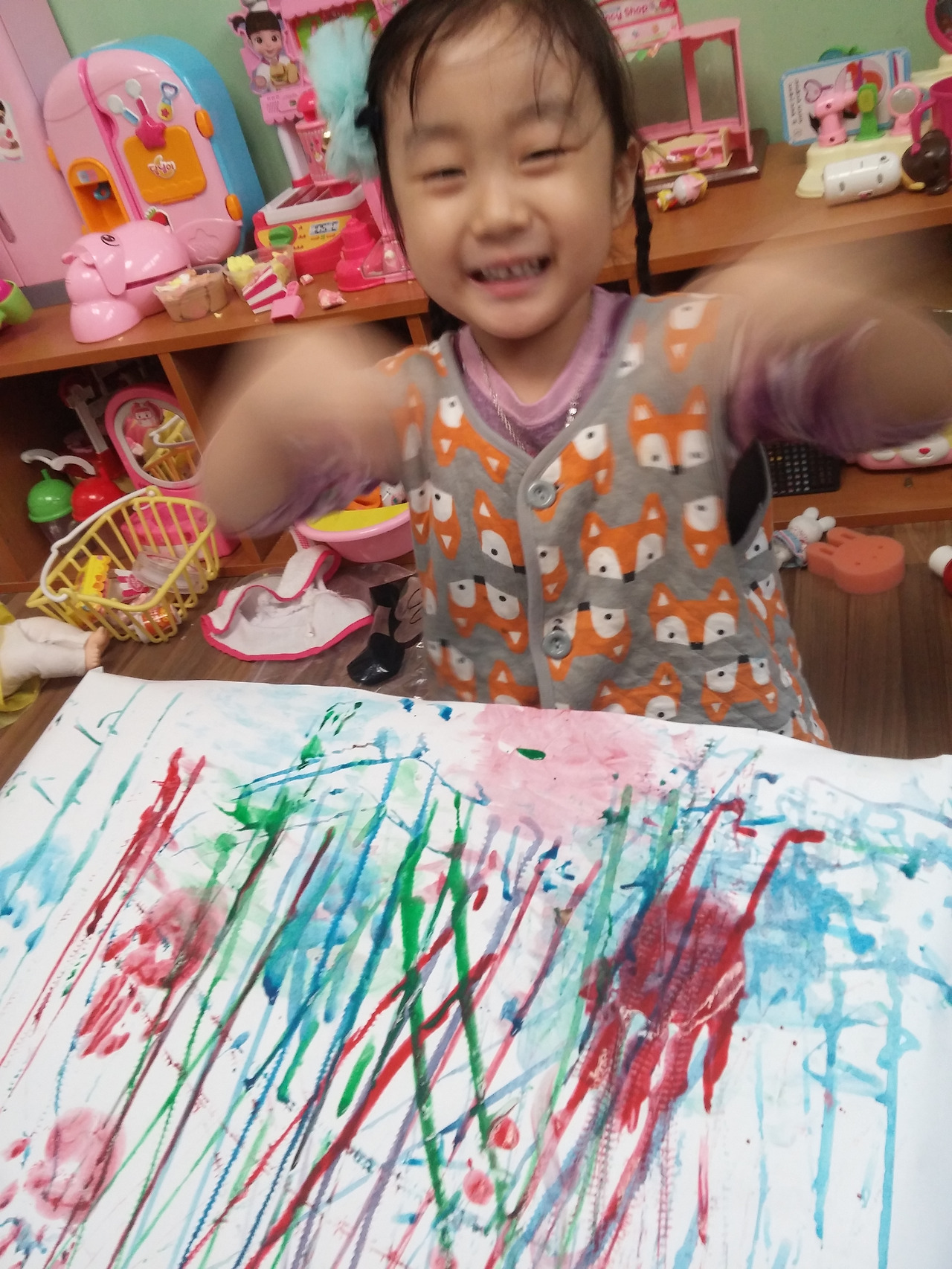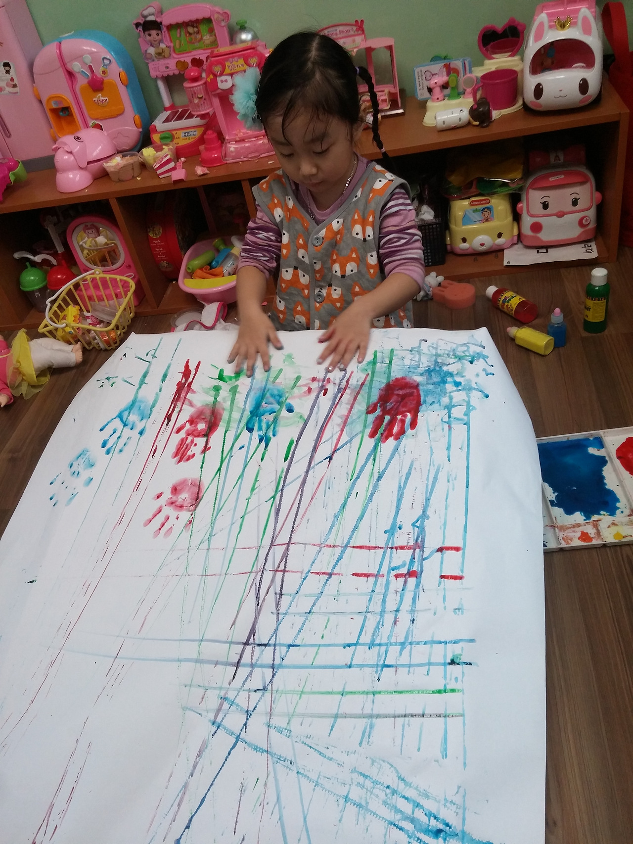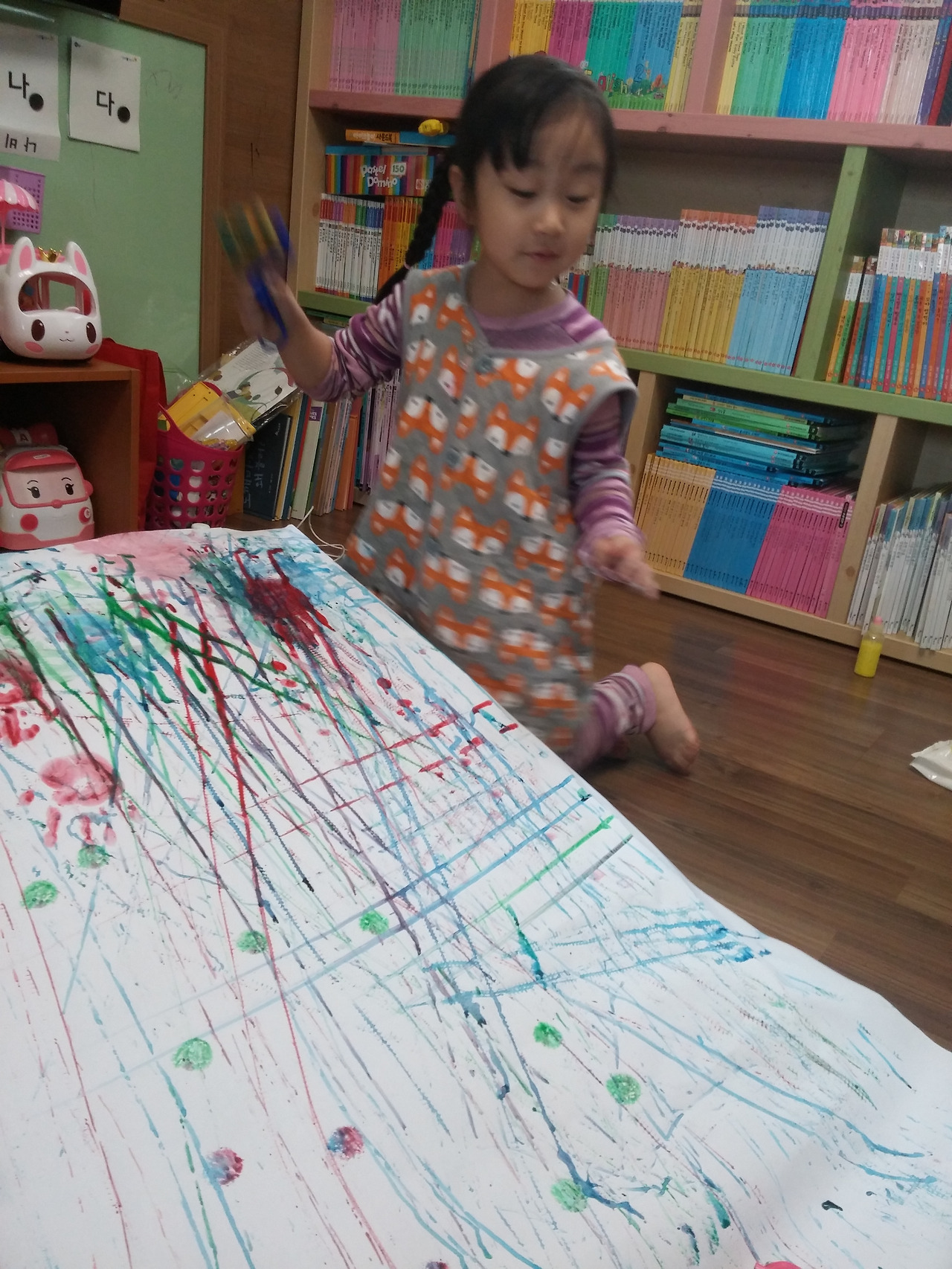 신이난 아이는 흥을 주체 못하고 손도장을 찍는다