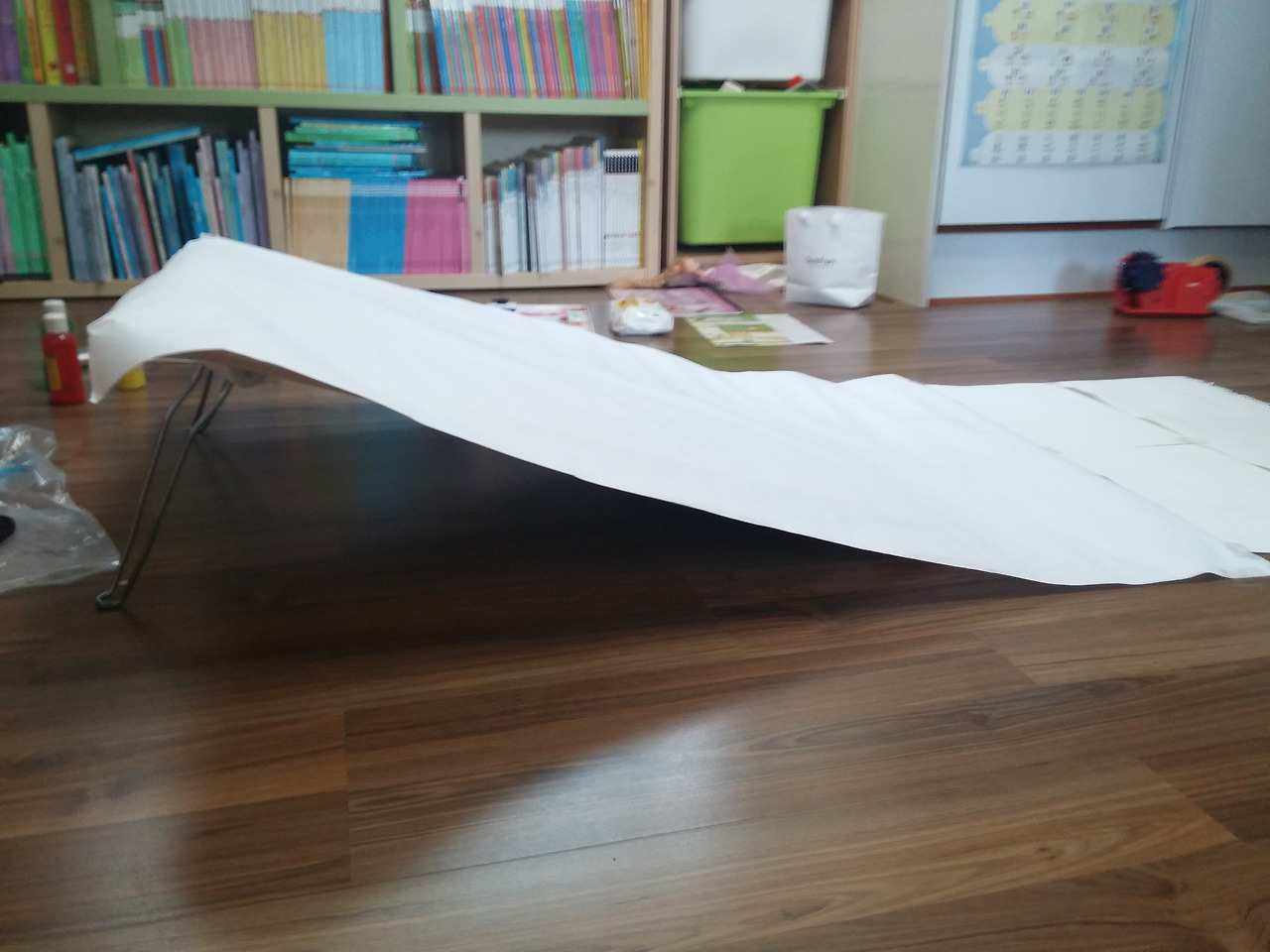 상에 한쪽 다리만 접으면 경사가 생긴다 거기다 전지를 깔고 밑에는 전지가 한 장이였던 관계로..스케치북을 붙여주었다