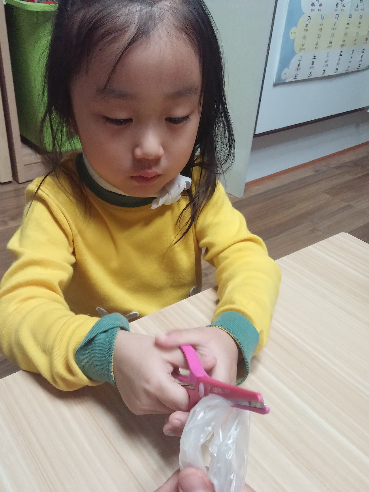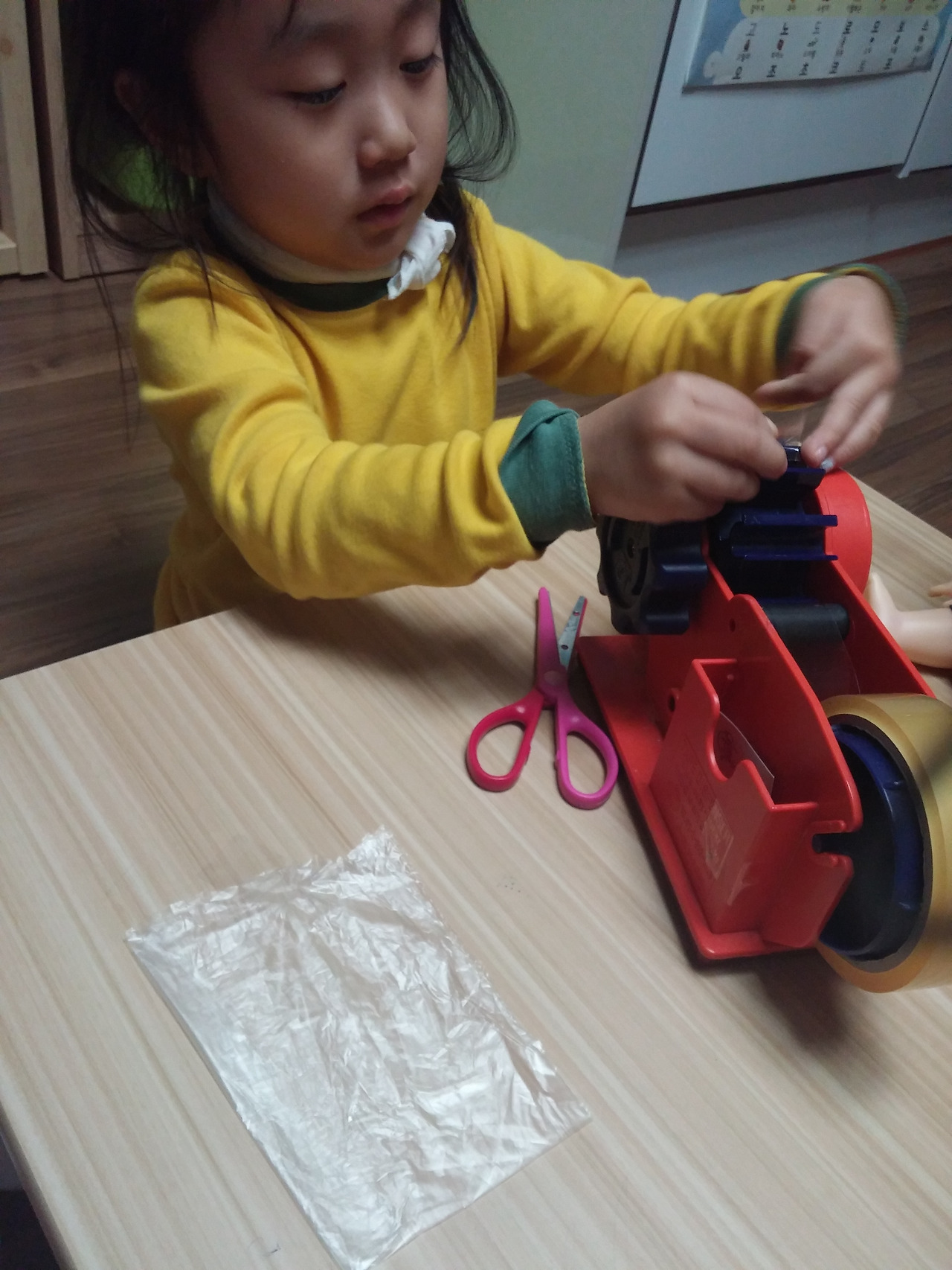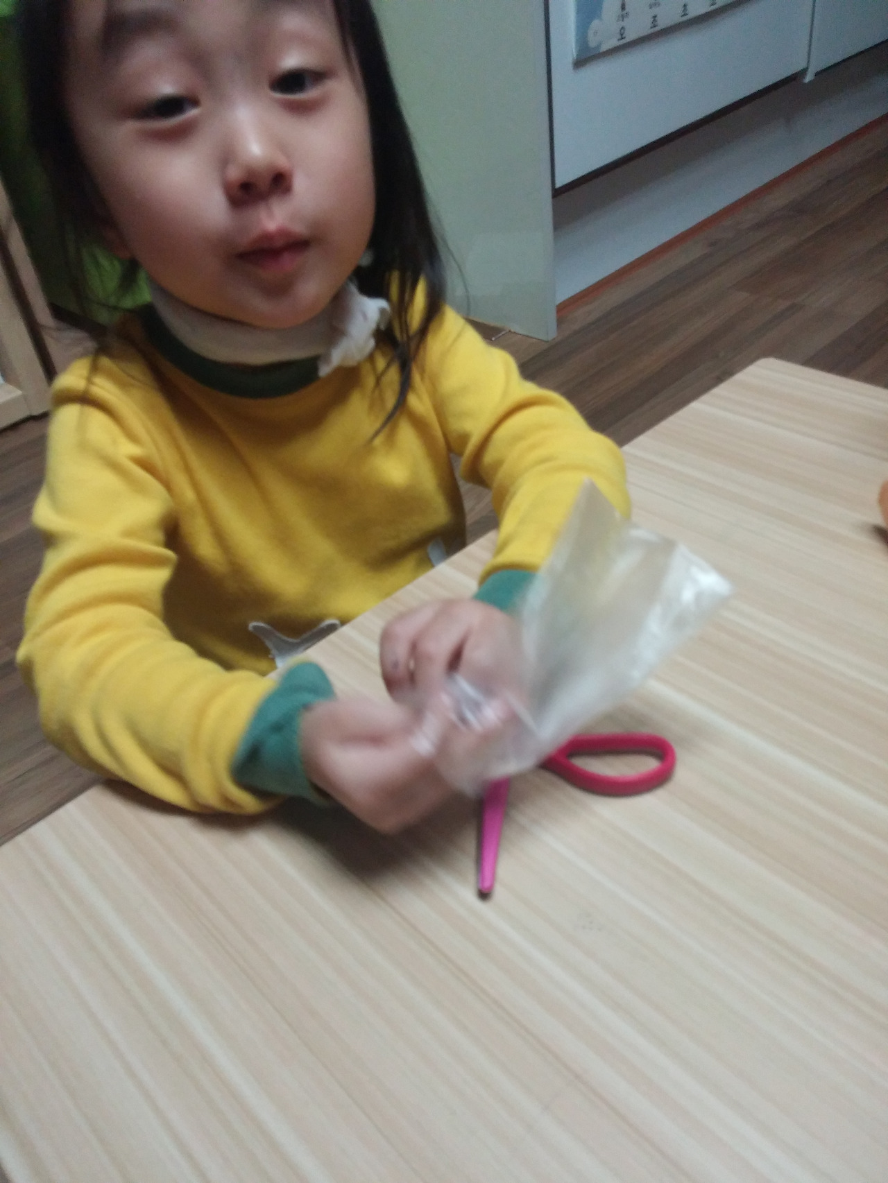 위생팩 비닐을 잘라 주머니?봉투?모양으로 만든다