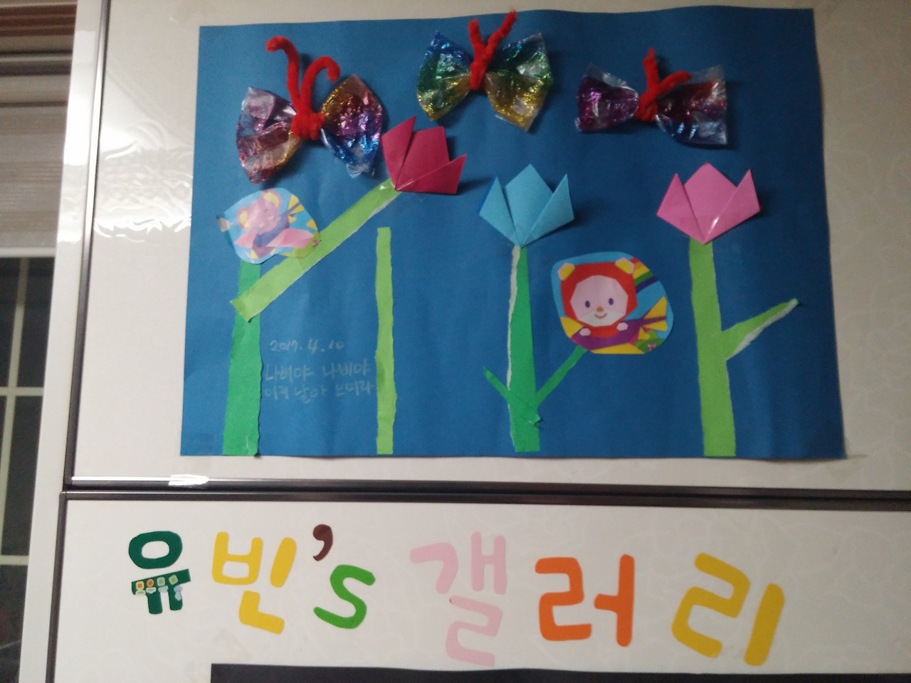 집에 벽이 딸 아이의 봄 작품으로 가득하다