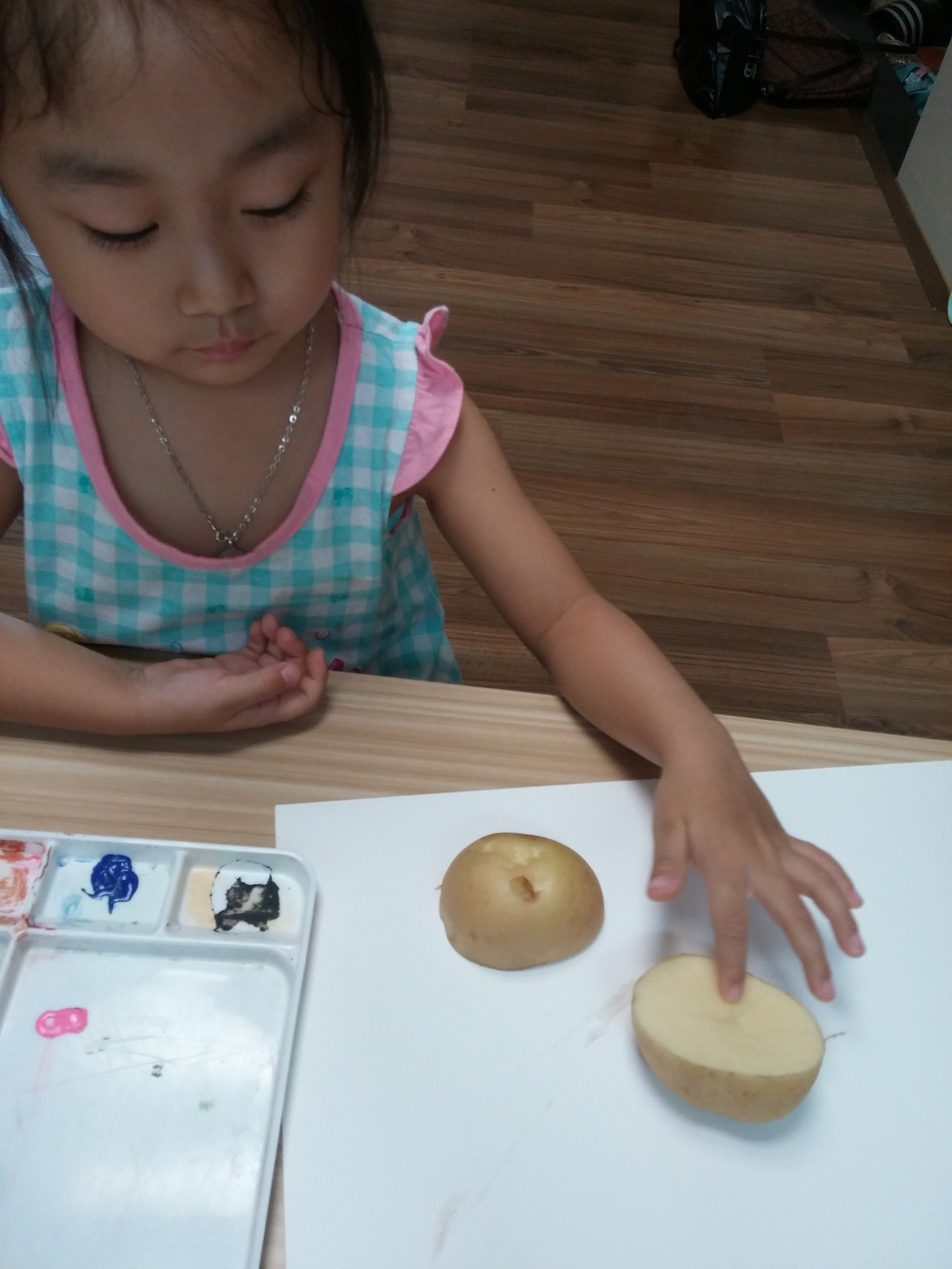 보유 중이라 감자 도장 찍기를 해 보기로 한 모녀