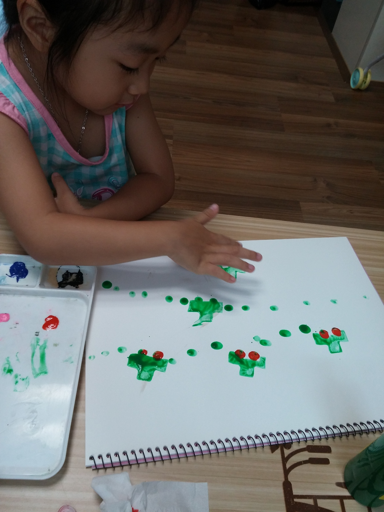 물감을 이용 감자도장을 찍는다