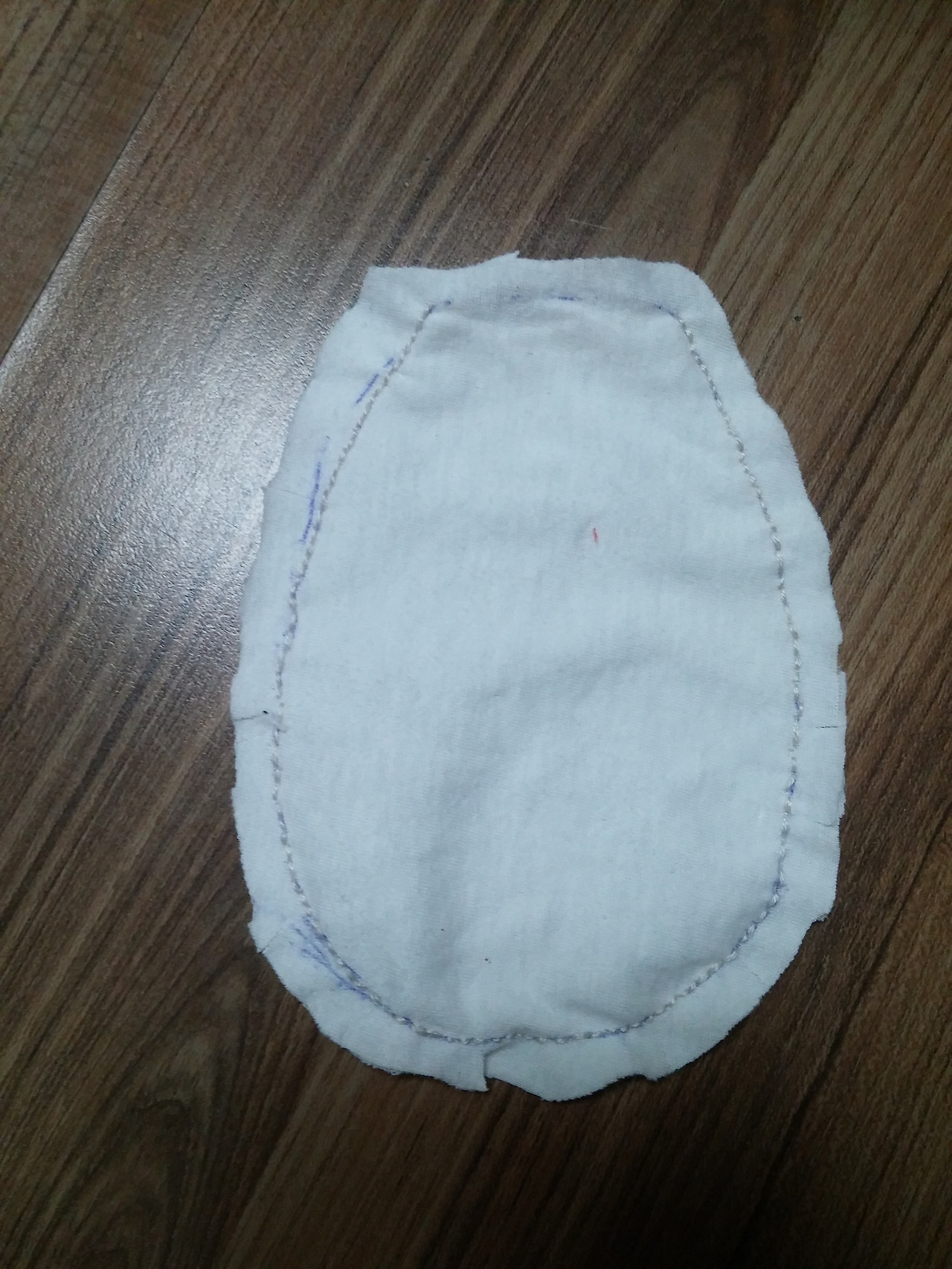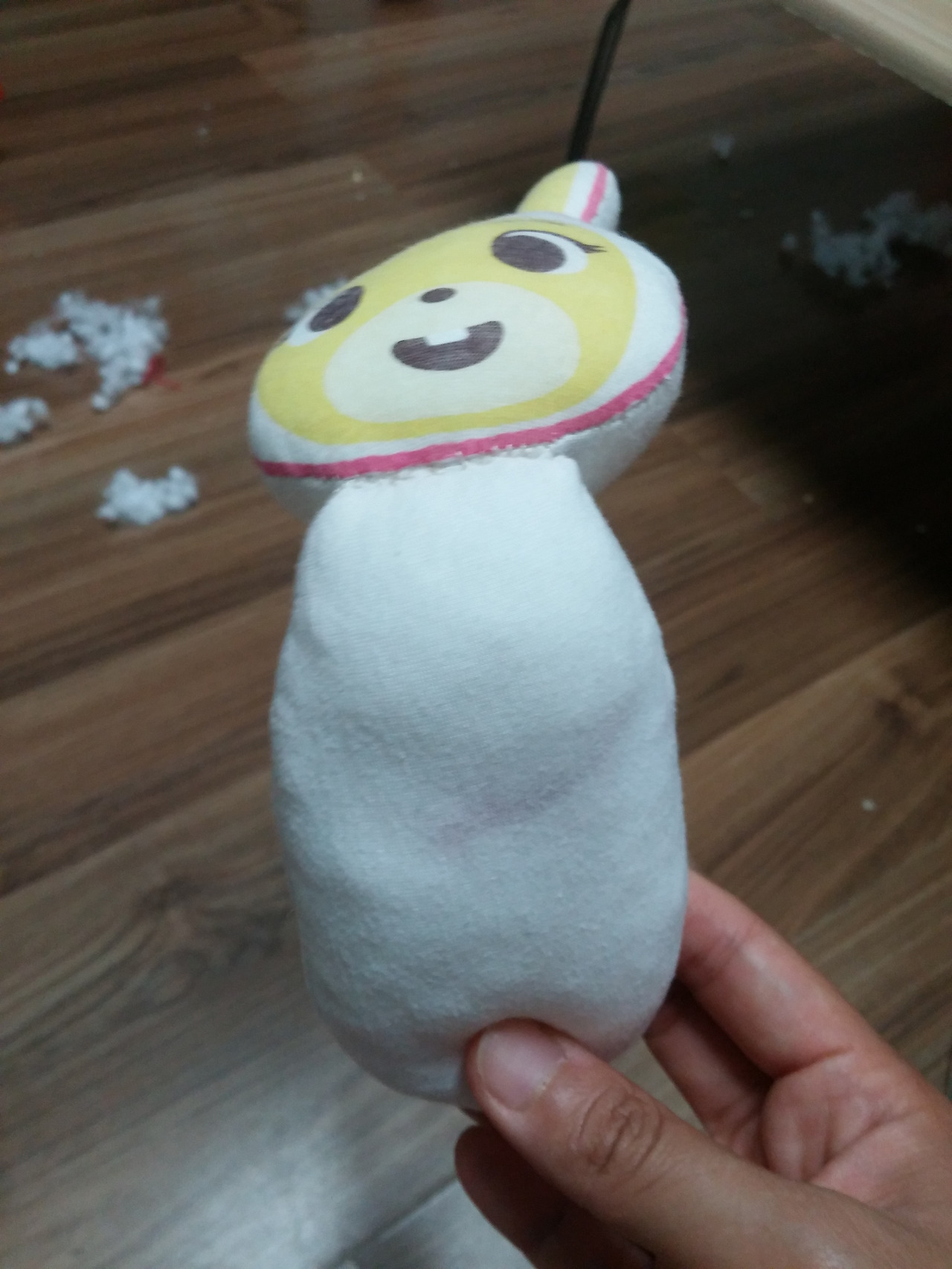 6.몸 통을 만드는데 옆에서 남은 천을 자르고 노는 딸을 보다 그것조차도 버리가 아쉬워 솜 대신 남은 옷을 몸에 넣었다