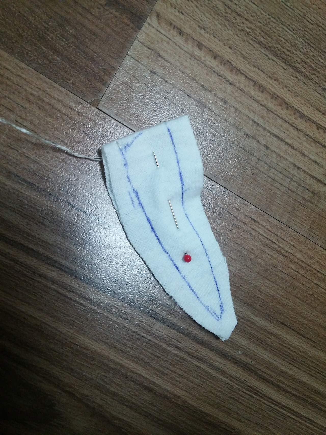 3. 핀으로 고정 후 바느질 선보다 여유있게 자른다
