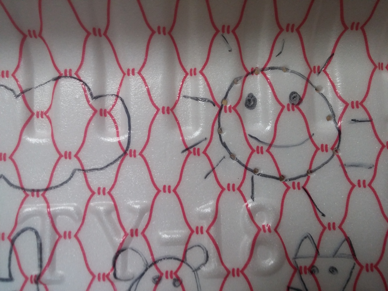 있었는데 배달음식등을 먹은 후 나오는 일회용 스토로폼에 돗바늘로 바느질을 하는 거였다