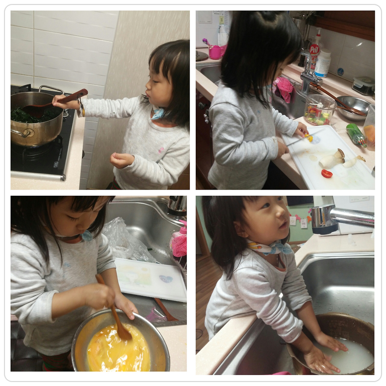너무나 신나하며 쌀 씻고 밥 물도 맞춰보고 미역을 불리고 들기름에 볶고 미역국도직접 끓이고 야채를 썰고 계란을 풀어 달걀말이까지 한 딸