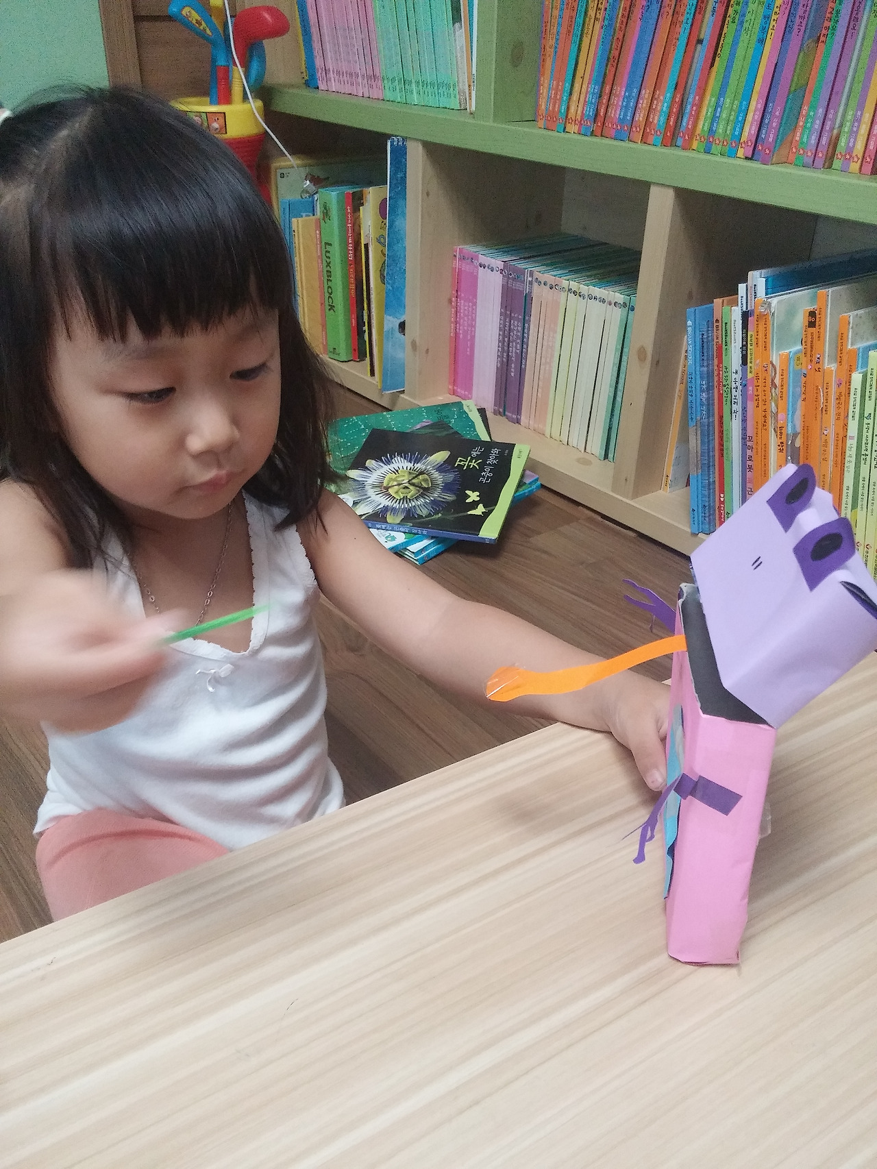 과자를 꺼내는 입구가 크다며 개구리를 만들고 싶다는 아이와 개구리를 만들어 보았다
