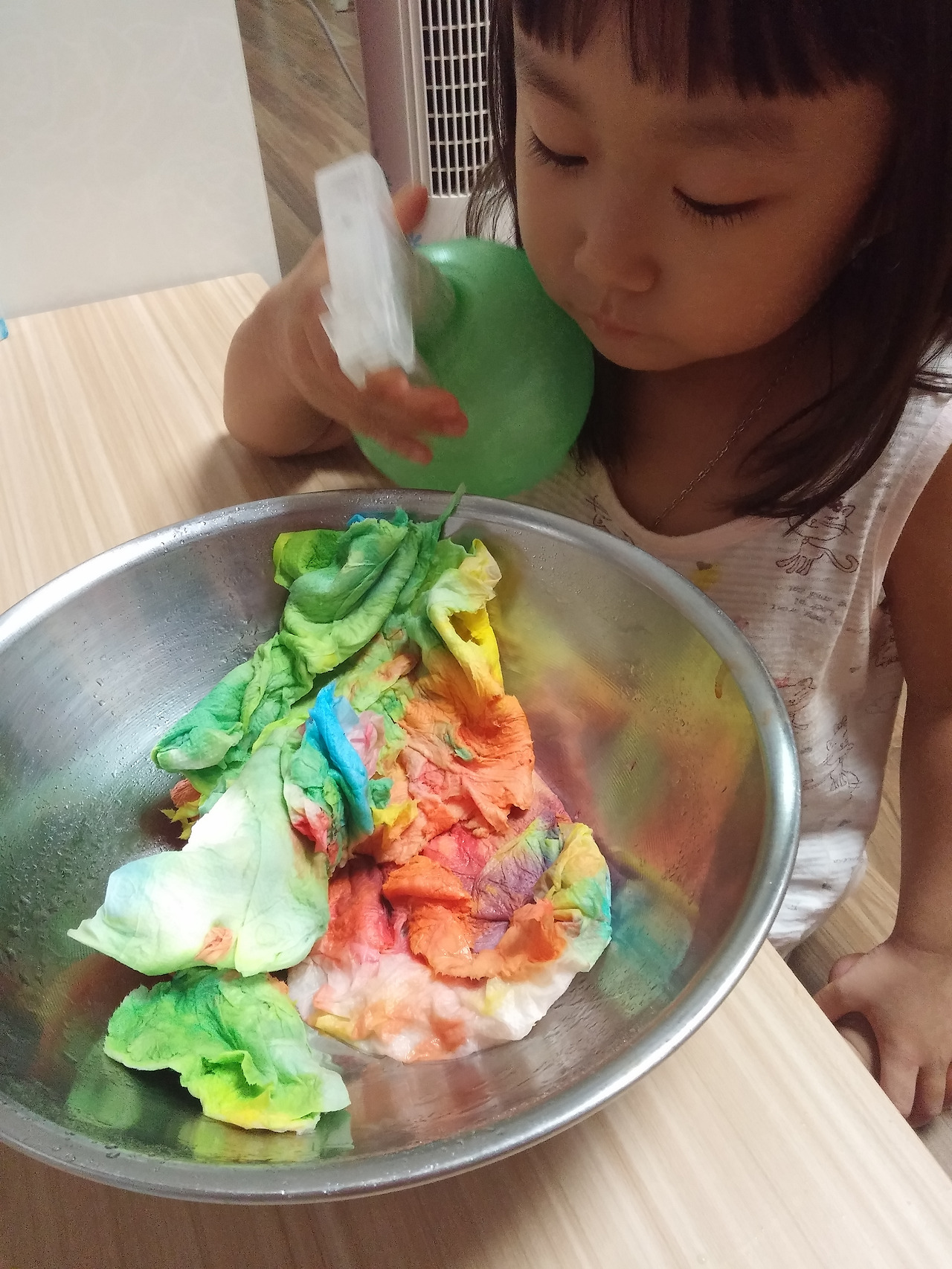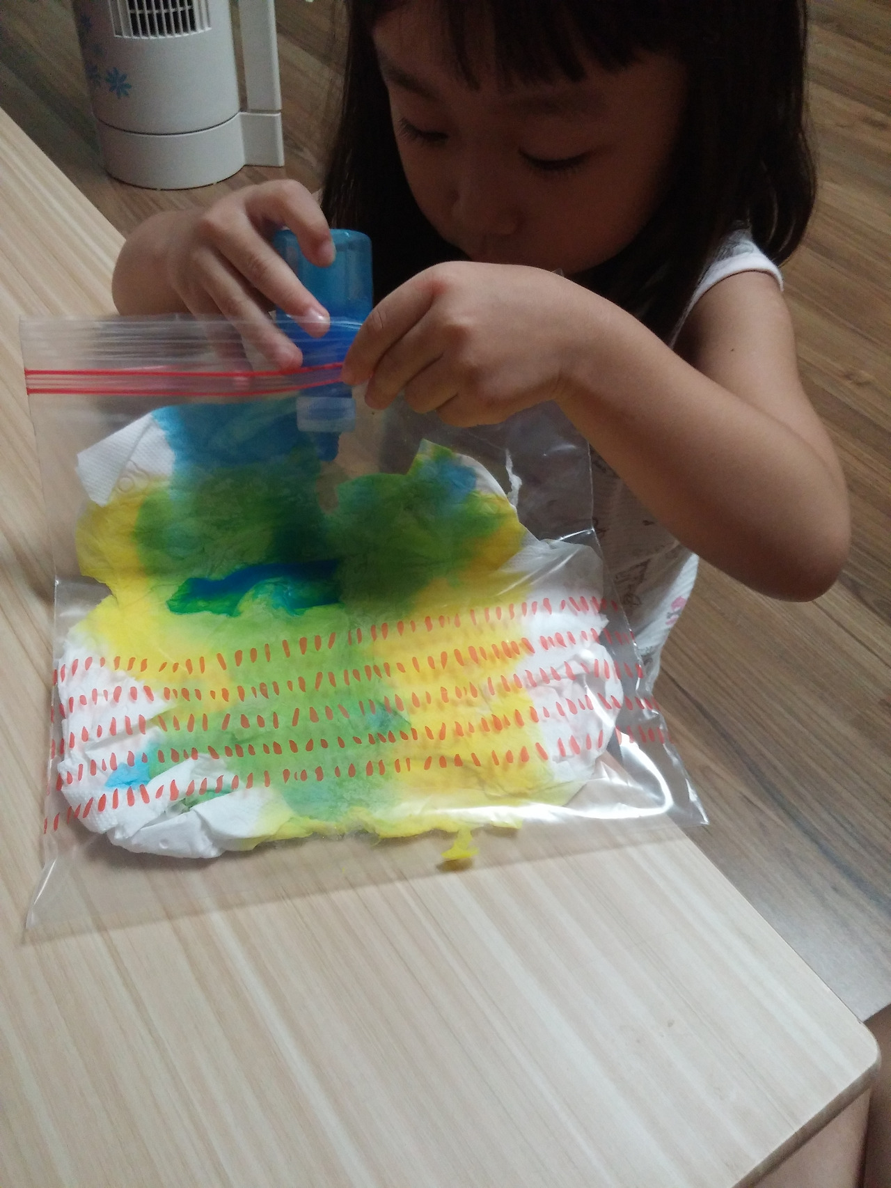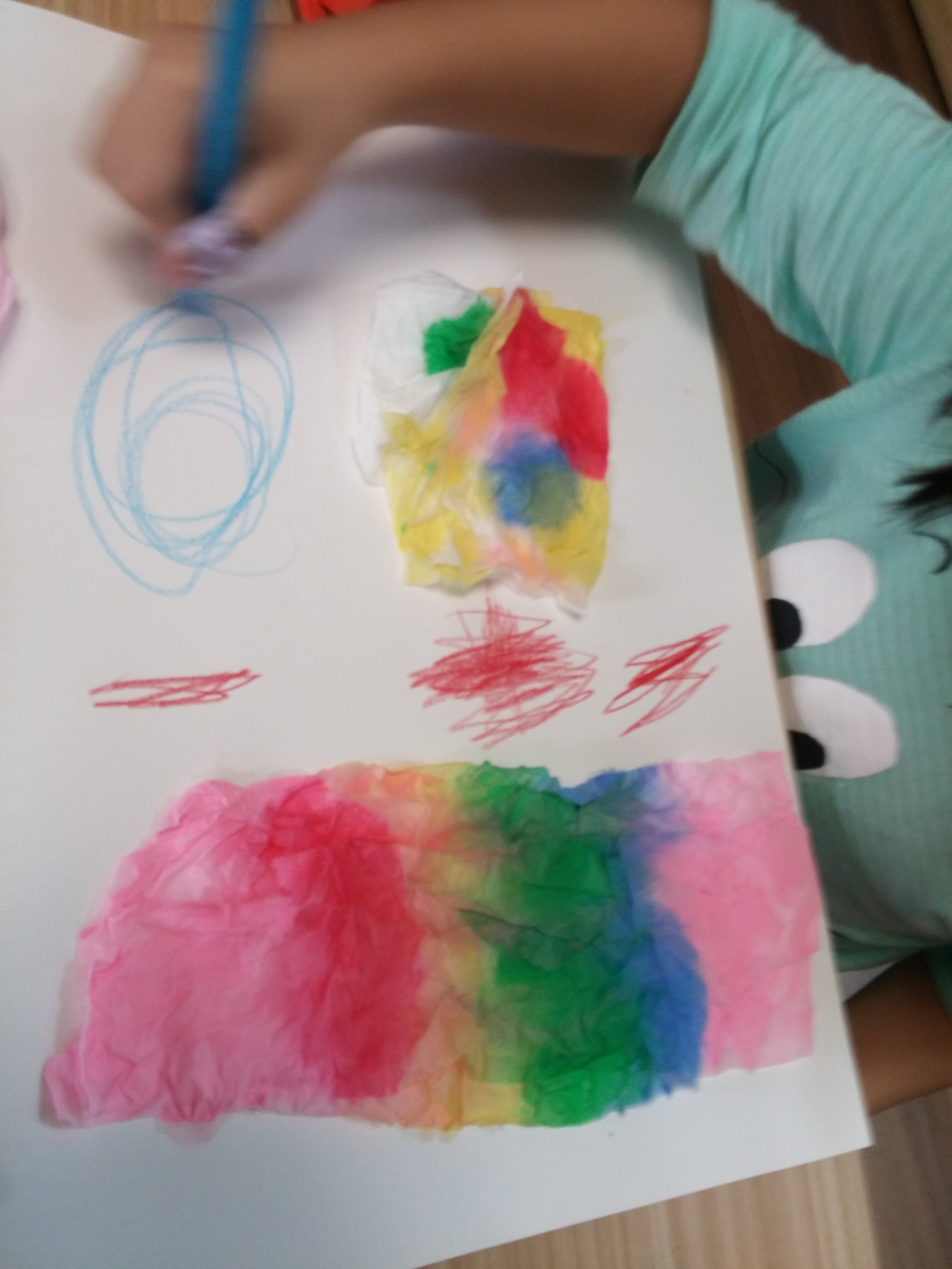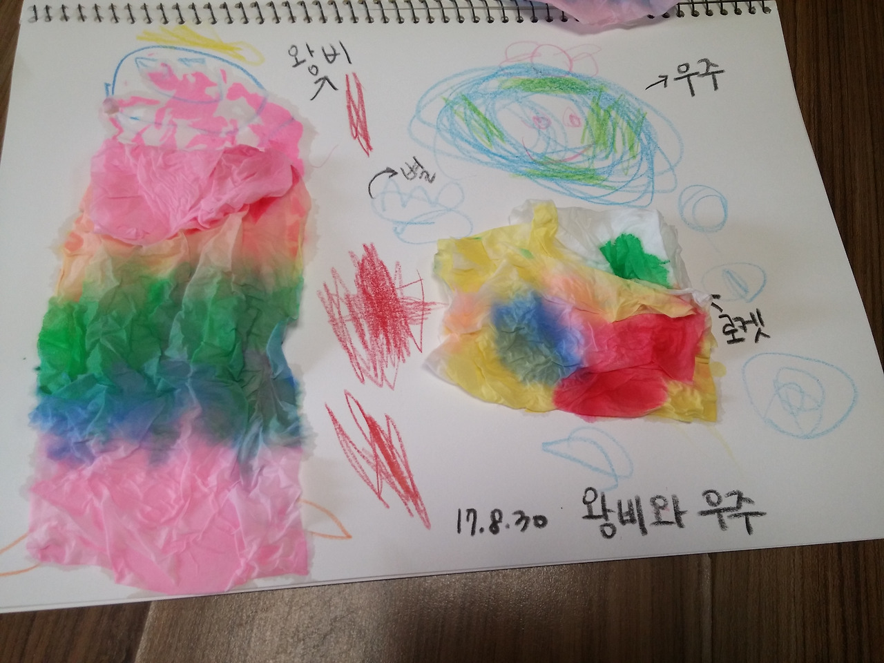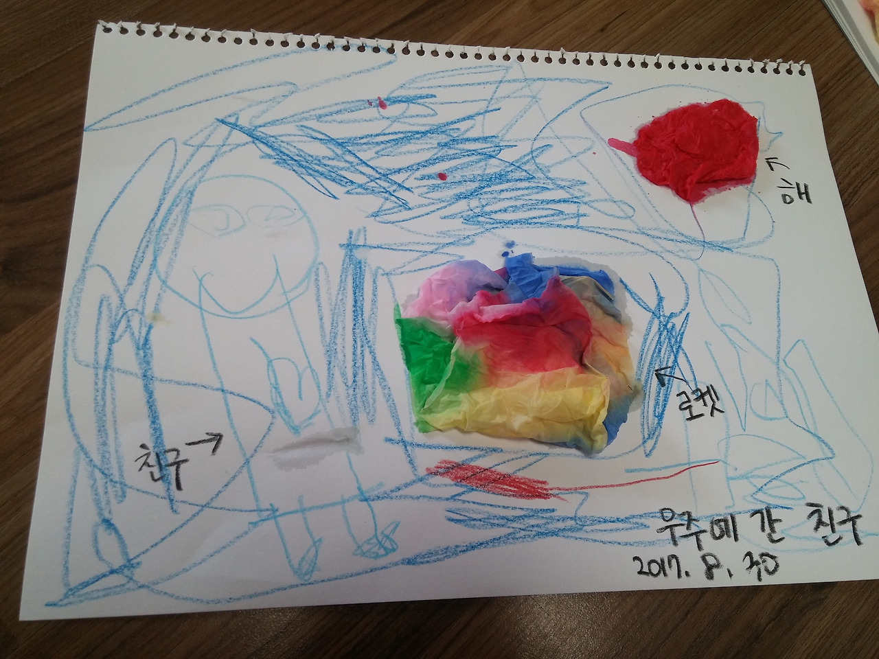 (4살 때 휴지랑 물감으로 색혼합 놀이하던 사진)
