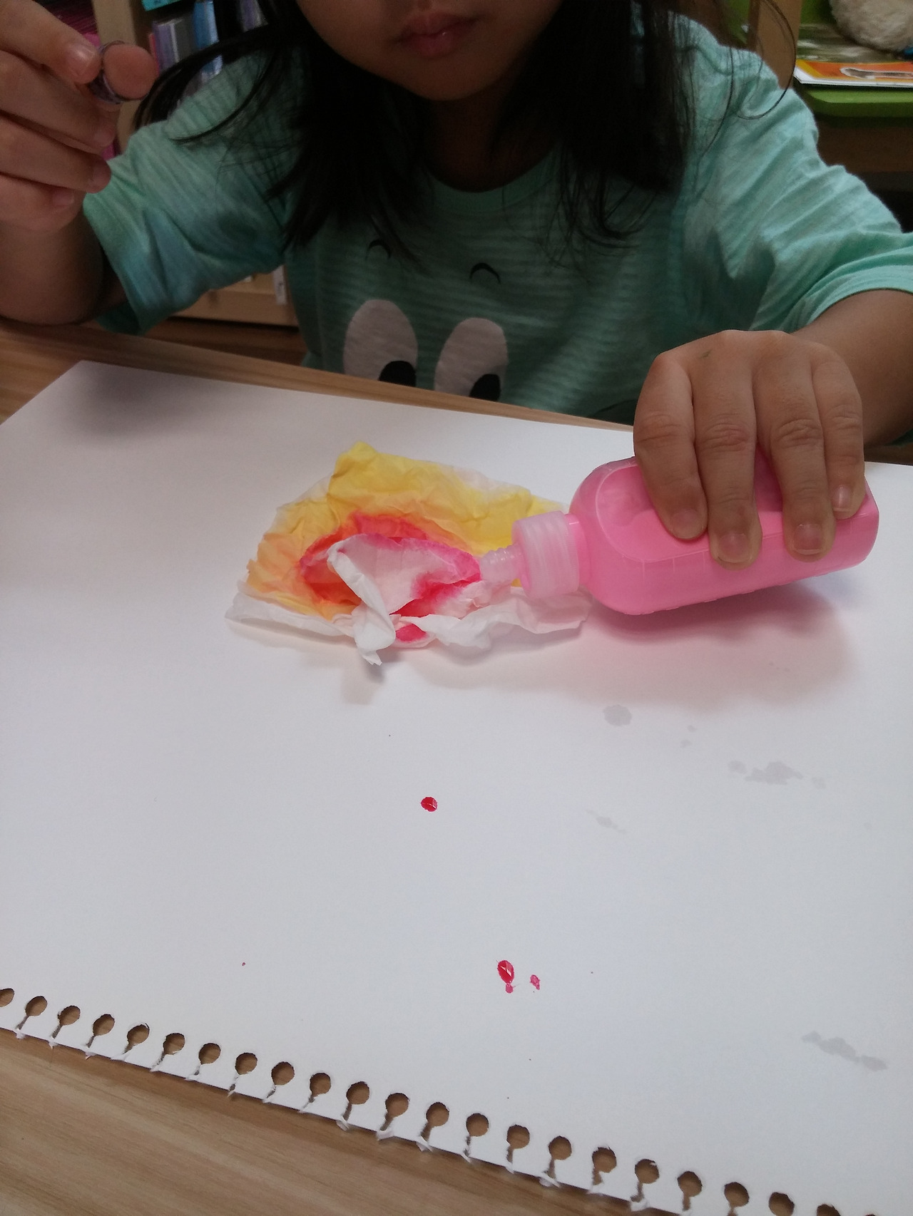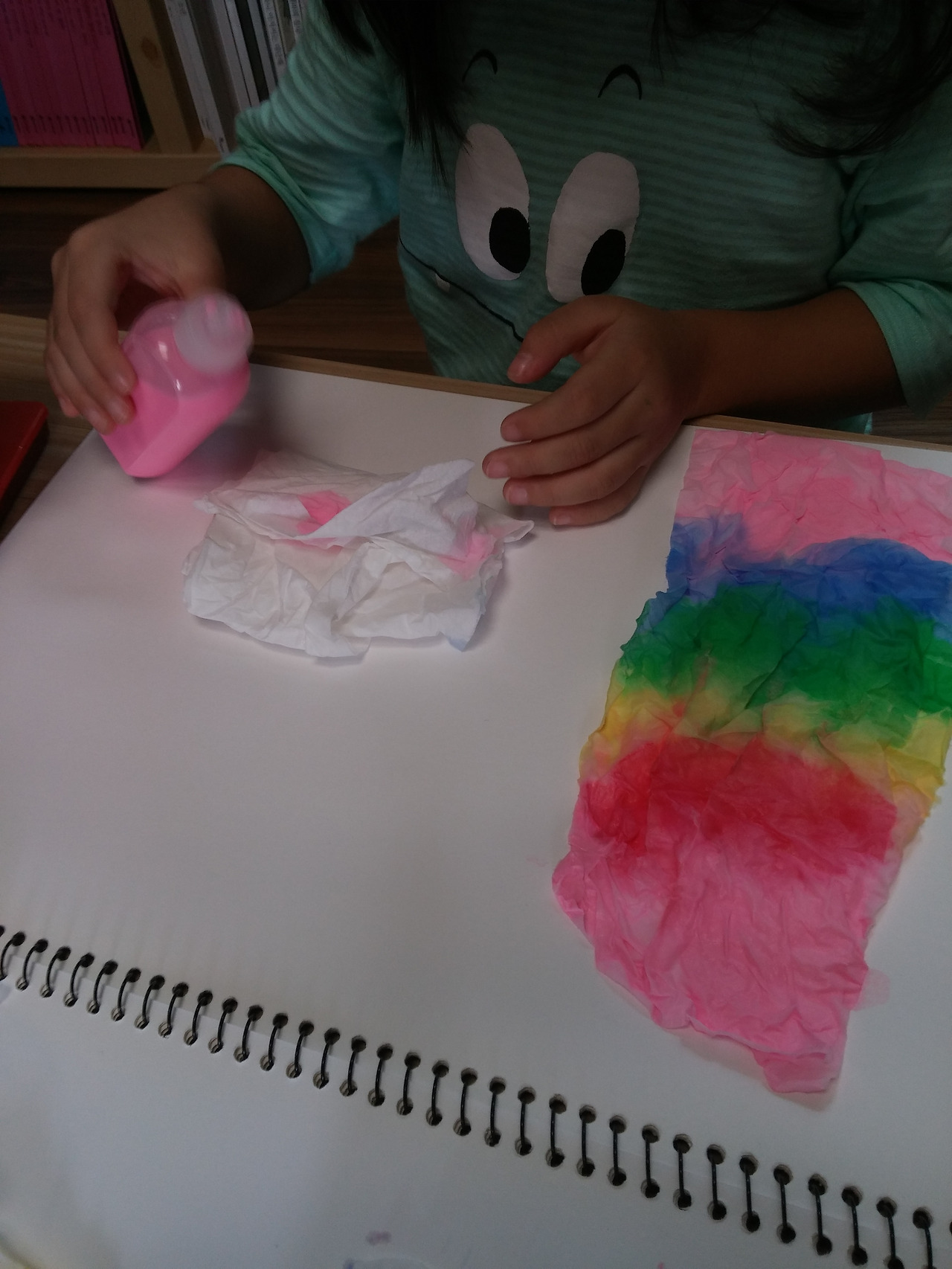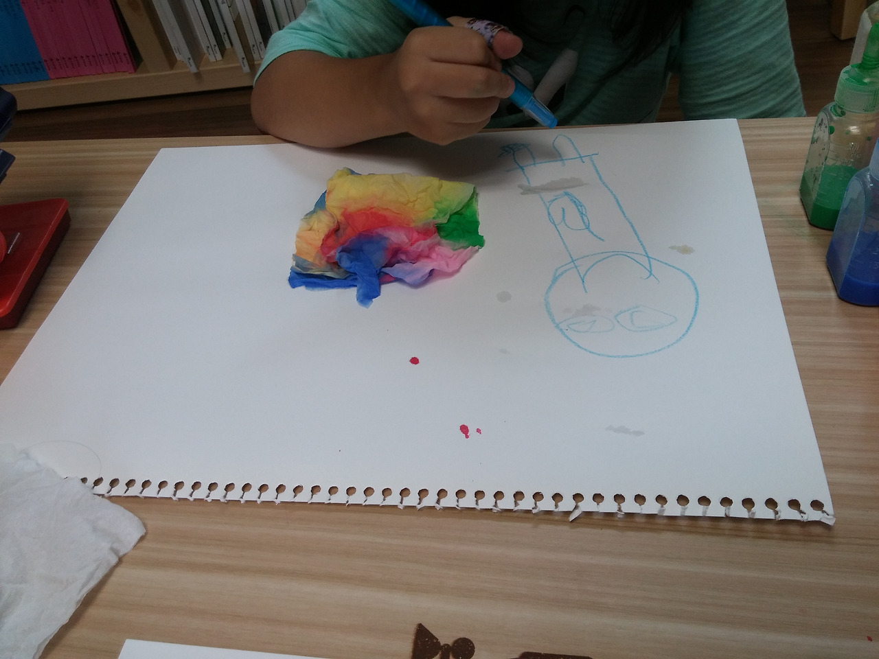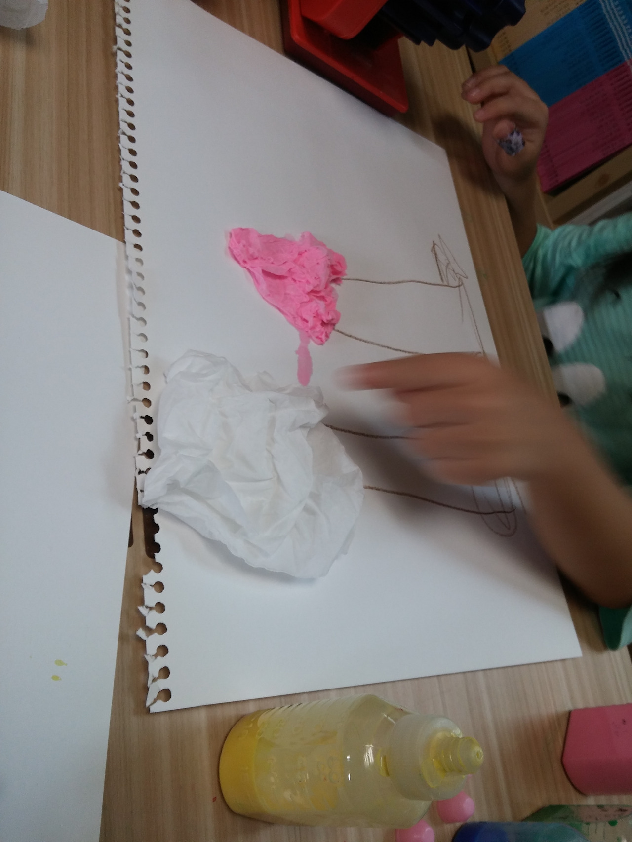 스케치북 위에 휴지를 올려 놓고 물감을 조금씩