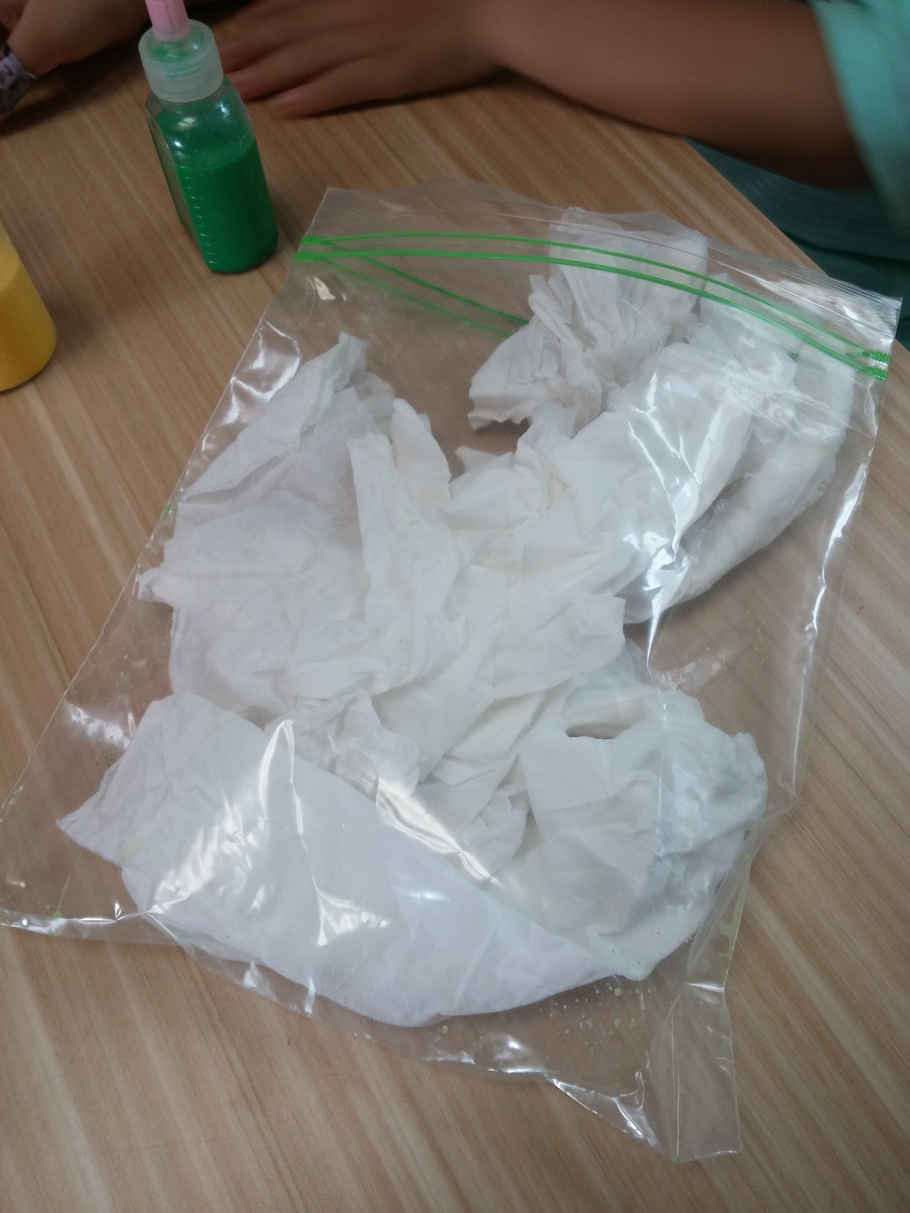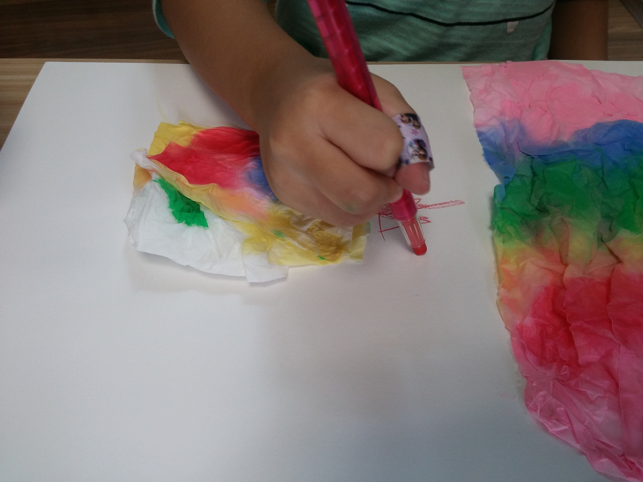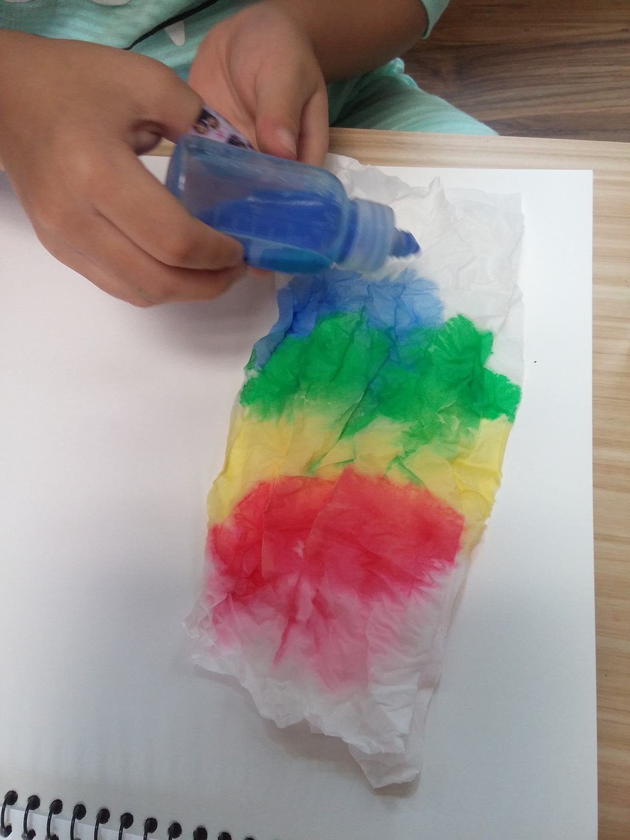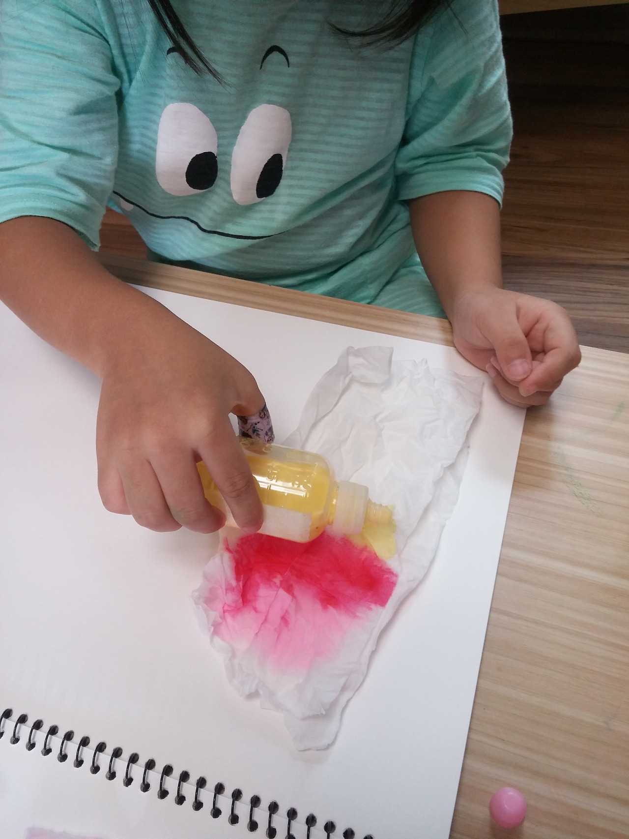 스케치북 위에 휴지를 올려 놓고 물감을 조금씩