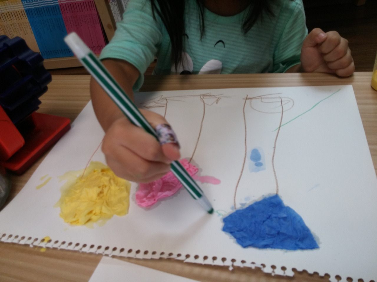 꾸며 준 휴지 주변에 그림을 그려 자신의