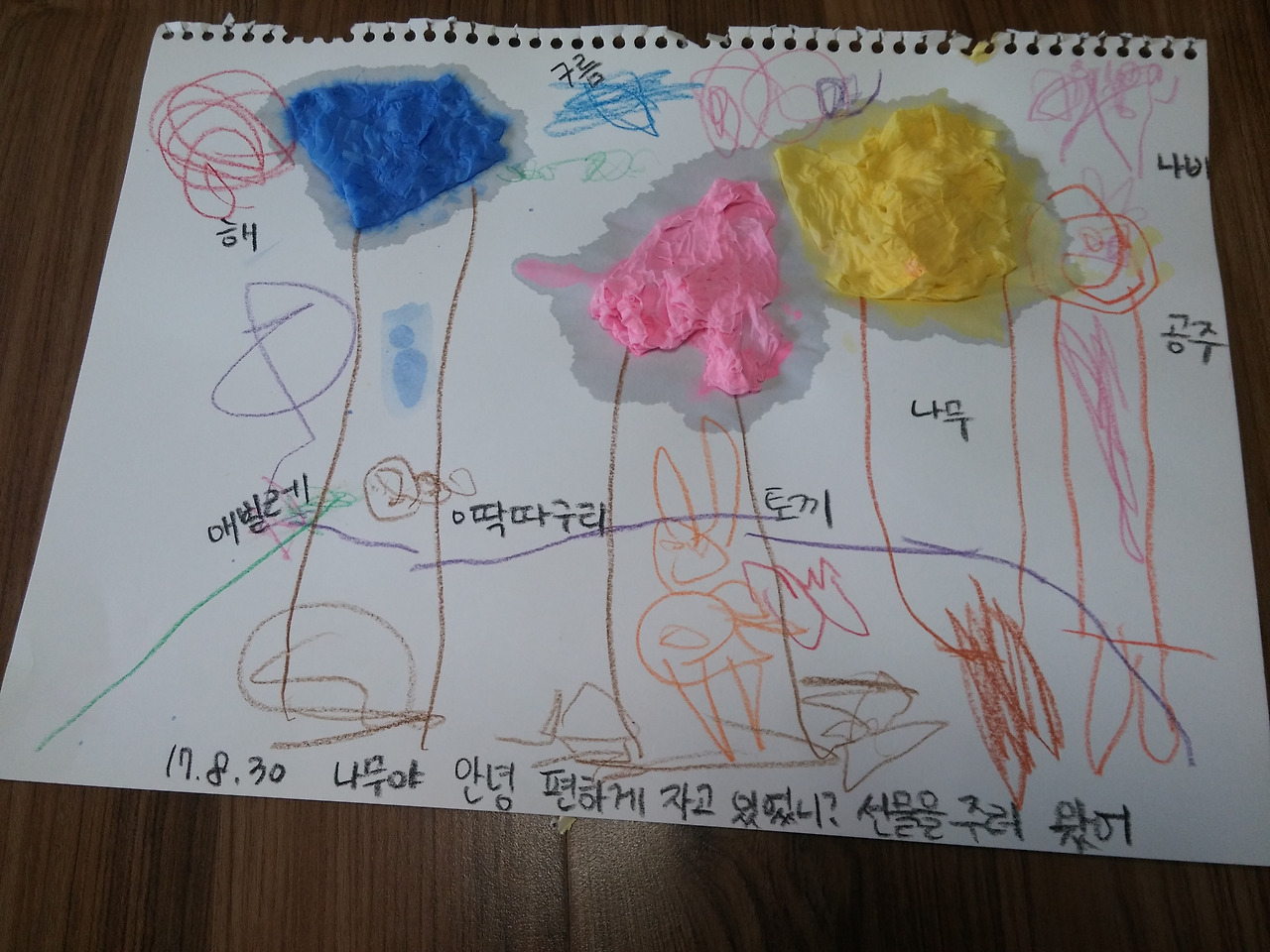 준비물은 물감.휴지.스케치북.색연필