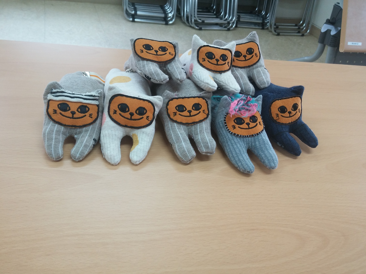 고양이를 만들고 남은 양말 끝 자투리도 아까워 고양이의 머리에 머리띠처럼 달았더니 운동하는 고양이가 되었다. 고양이가 쥐를 쫓아주어 풍요로움과 고마움의 상징이라고 하던데...