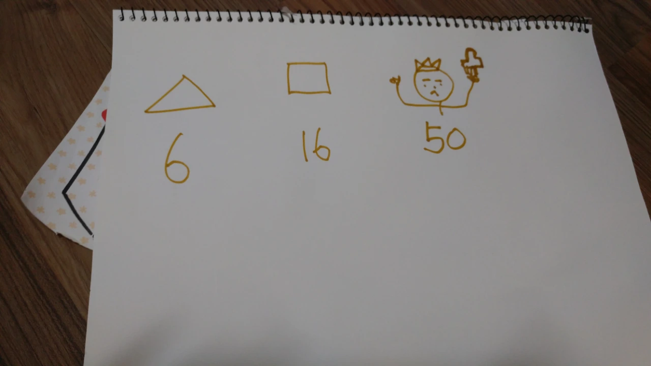 세모는 6권. 네모는 16권의 책을 올렸을 때