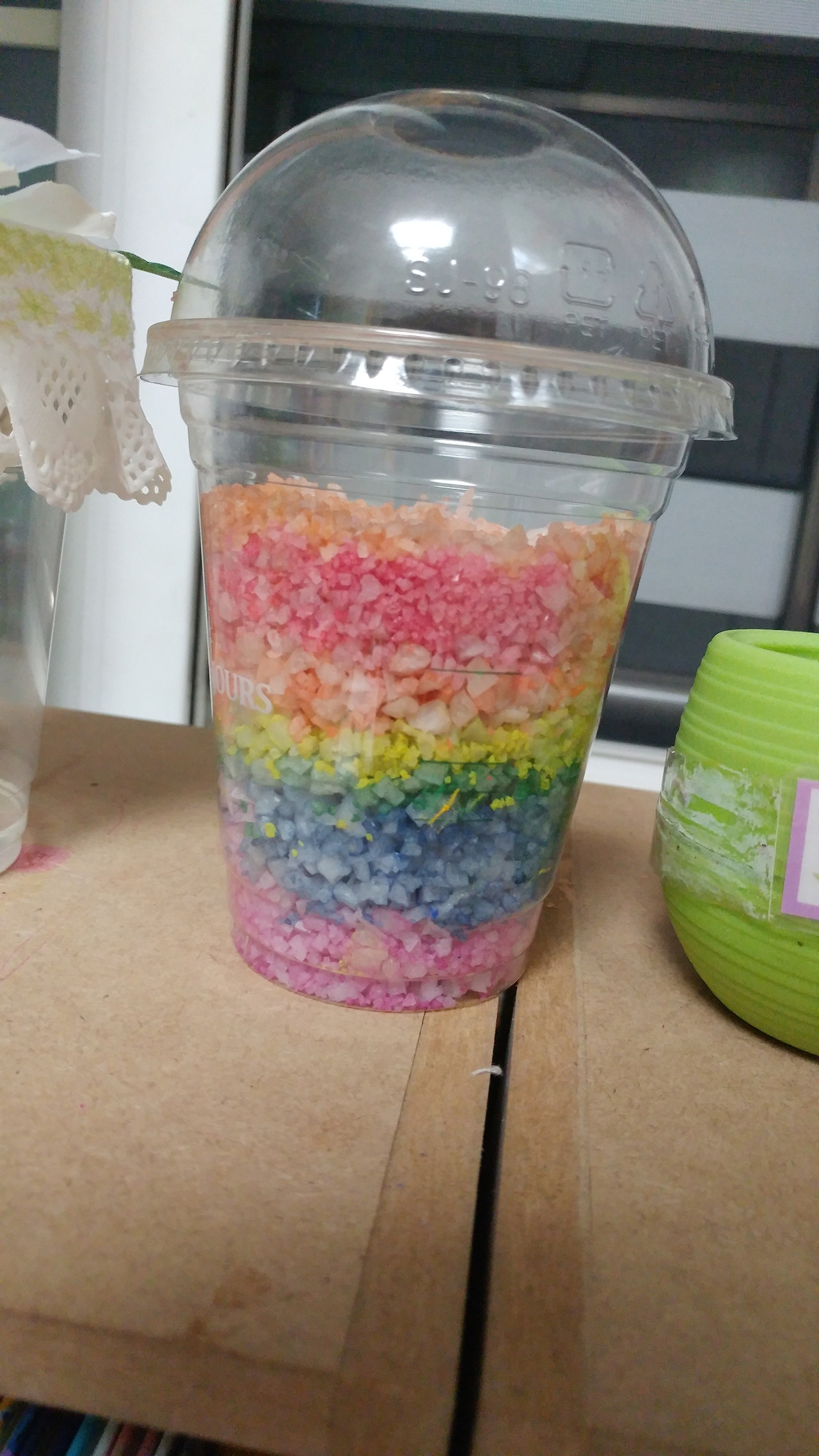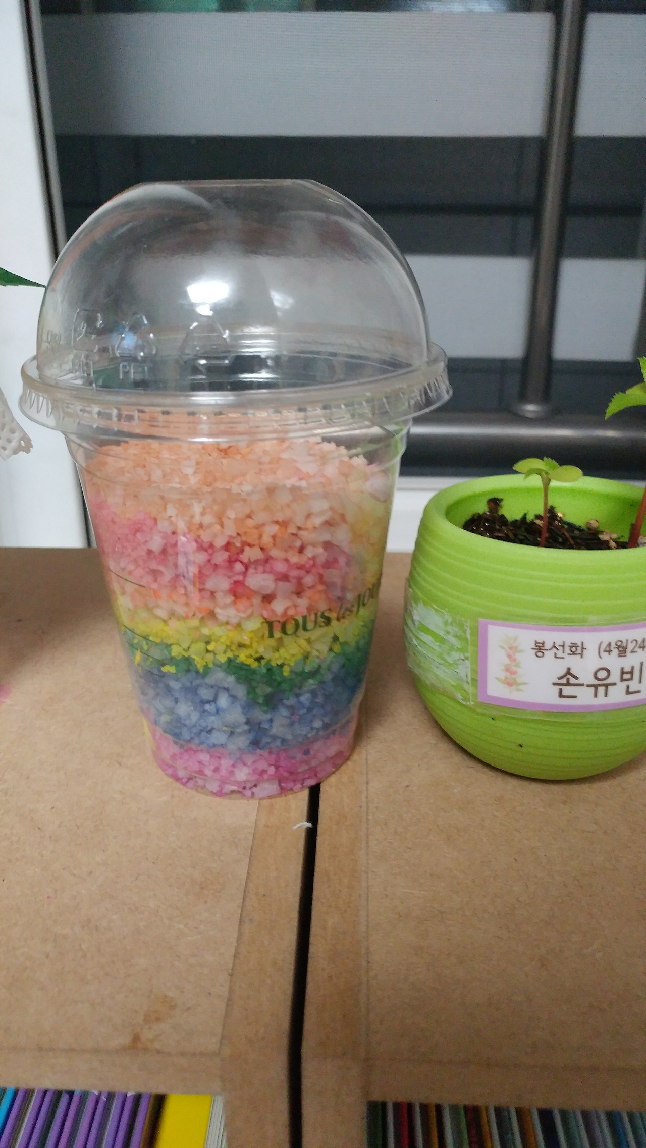 버리기 아까워 아이와 색 소금을 만들어 담아보았다