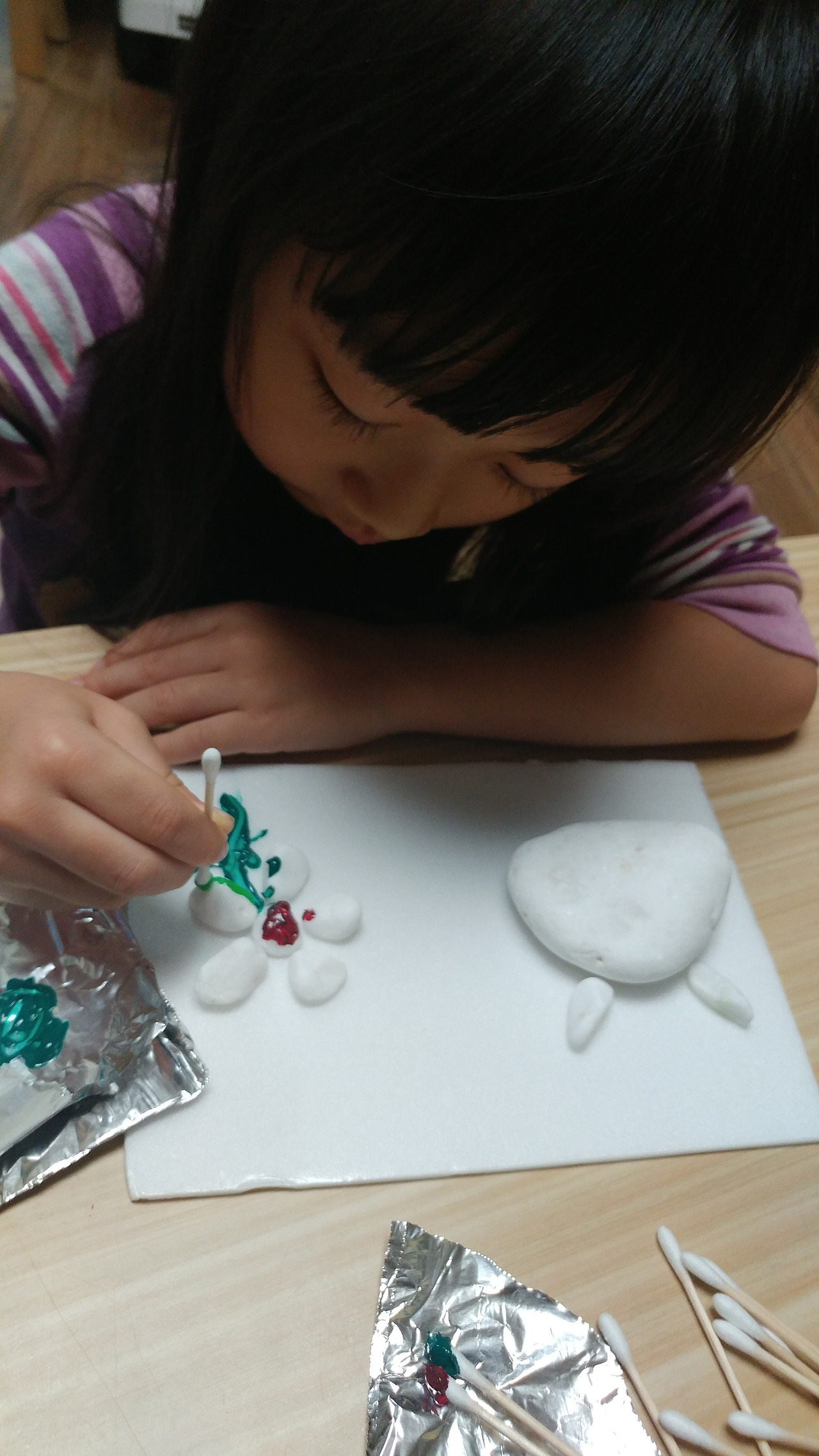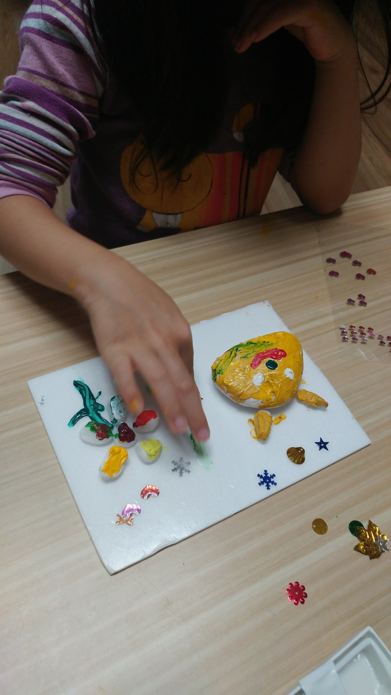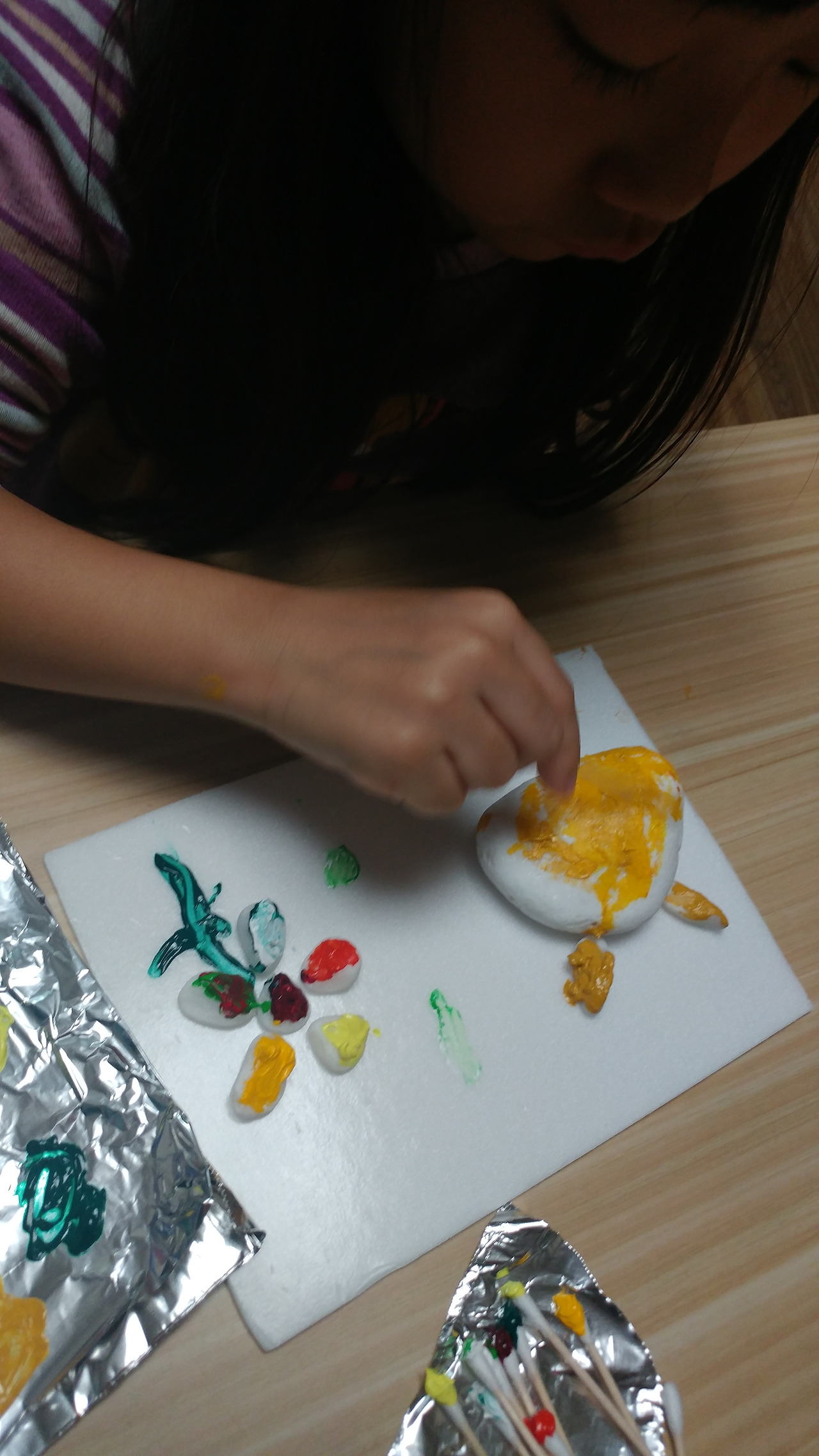 돌멩이,아크릴 물감,단면 우드락,면봉,꾸미기재료