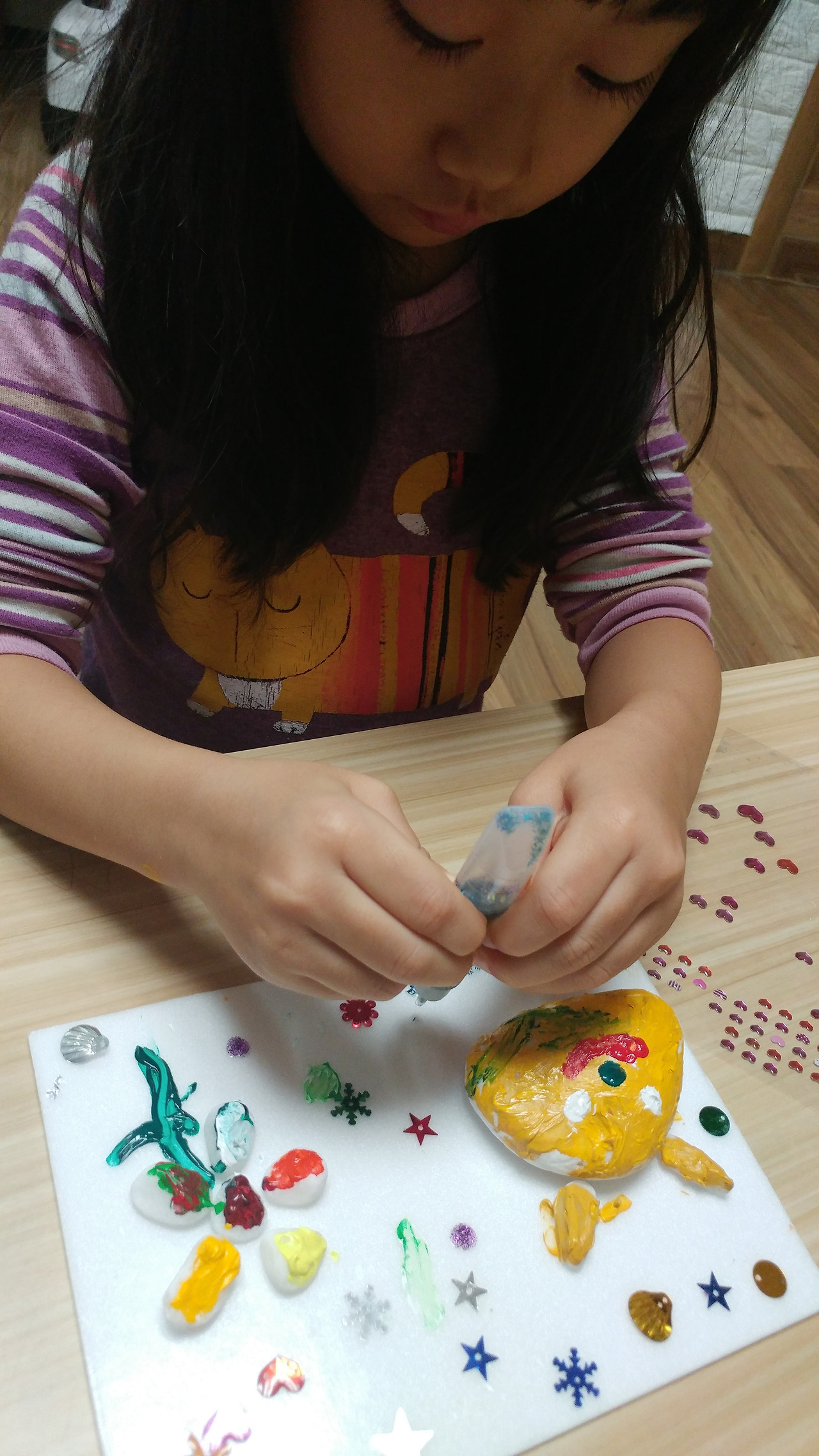 아이가 수업시간에 활동하지 못한 돌멩이를