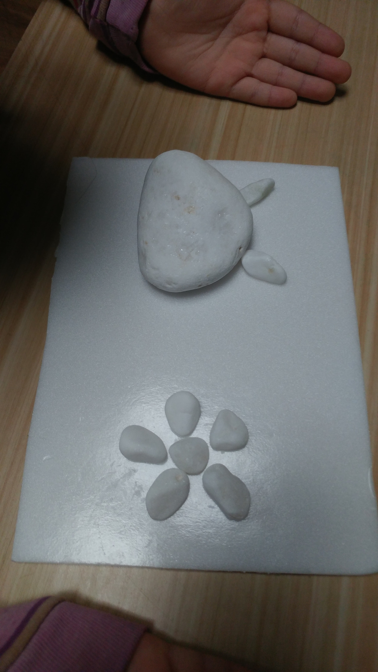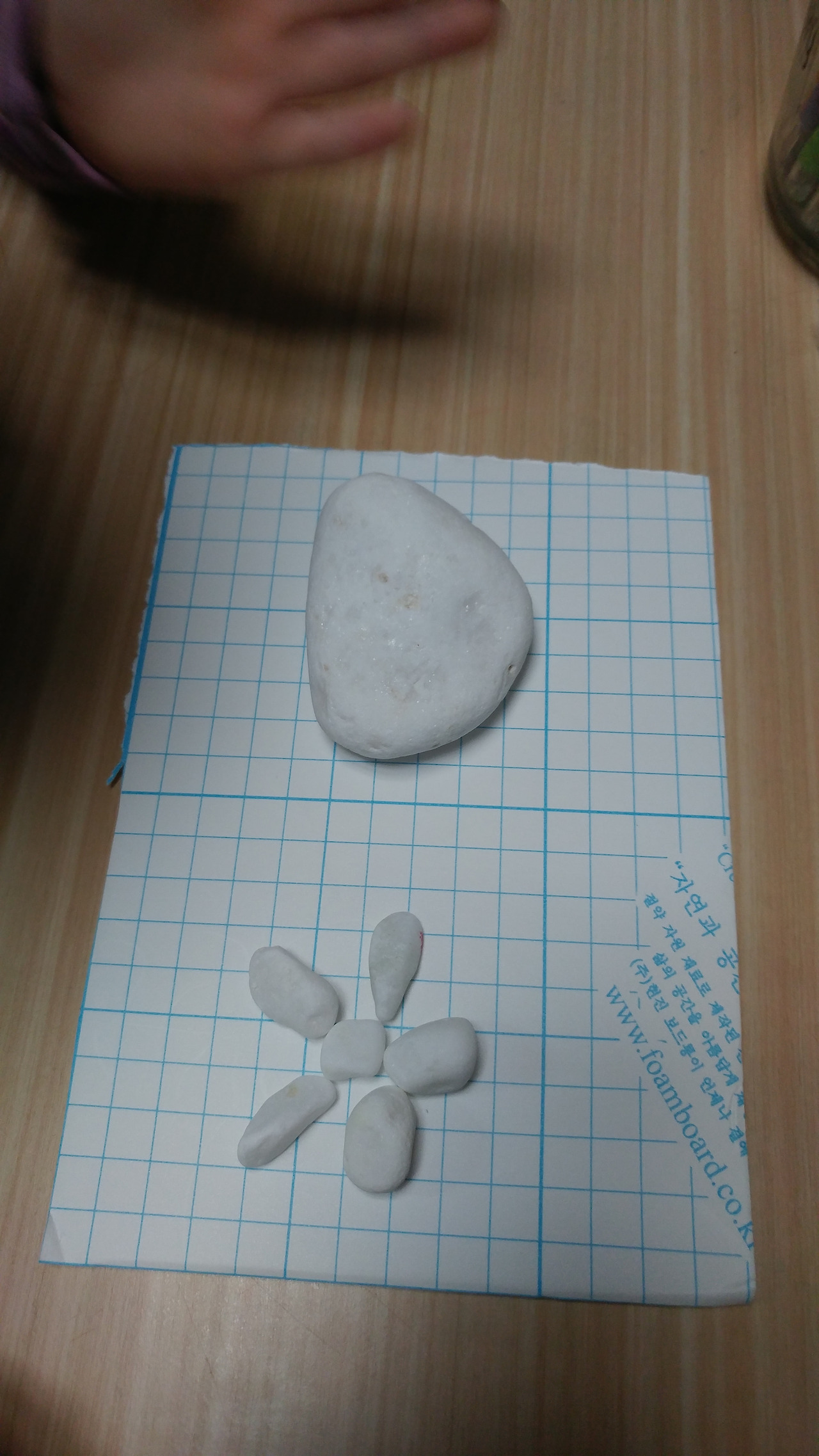 돌멩이로 무얼 만들지 생각해본 후 우드락 위에