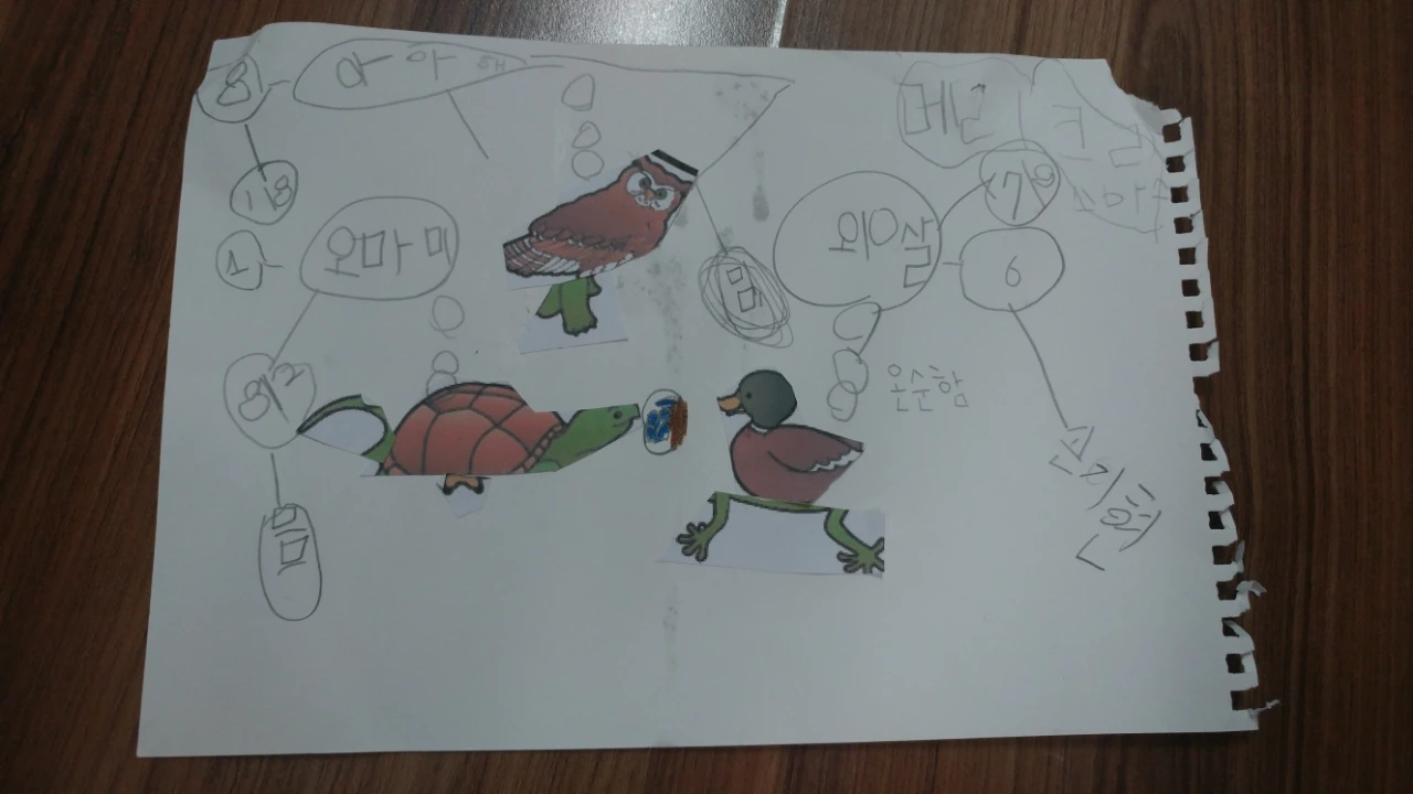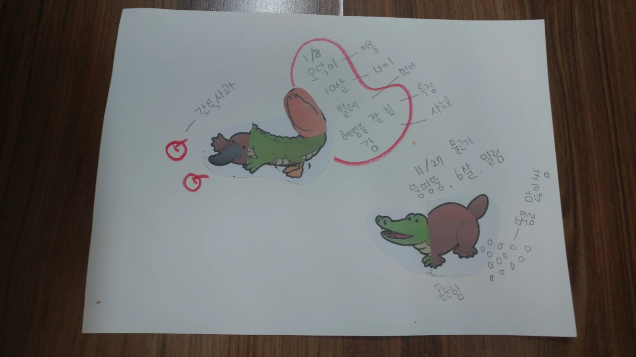 쓰고 (비록 받침없는 글자들로 이루어져있지만) 각자 만든 동물을 발표까지 해보았다.