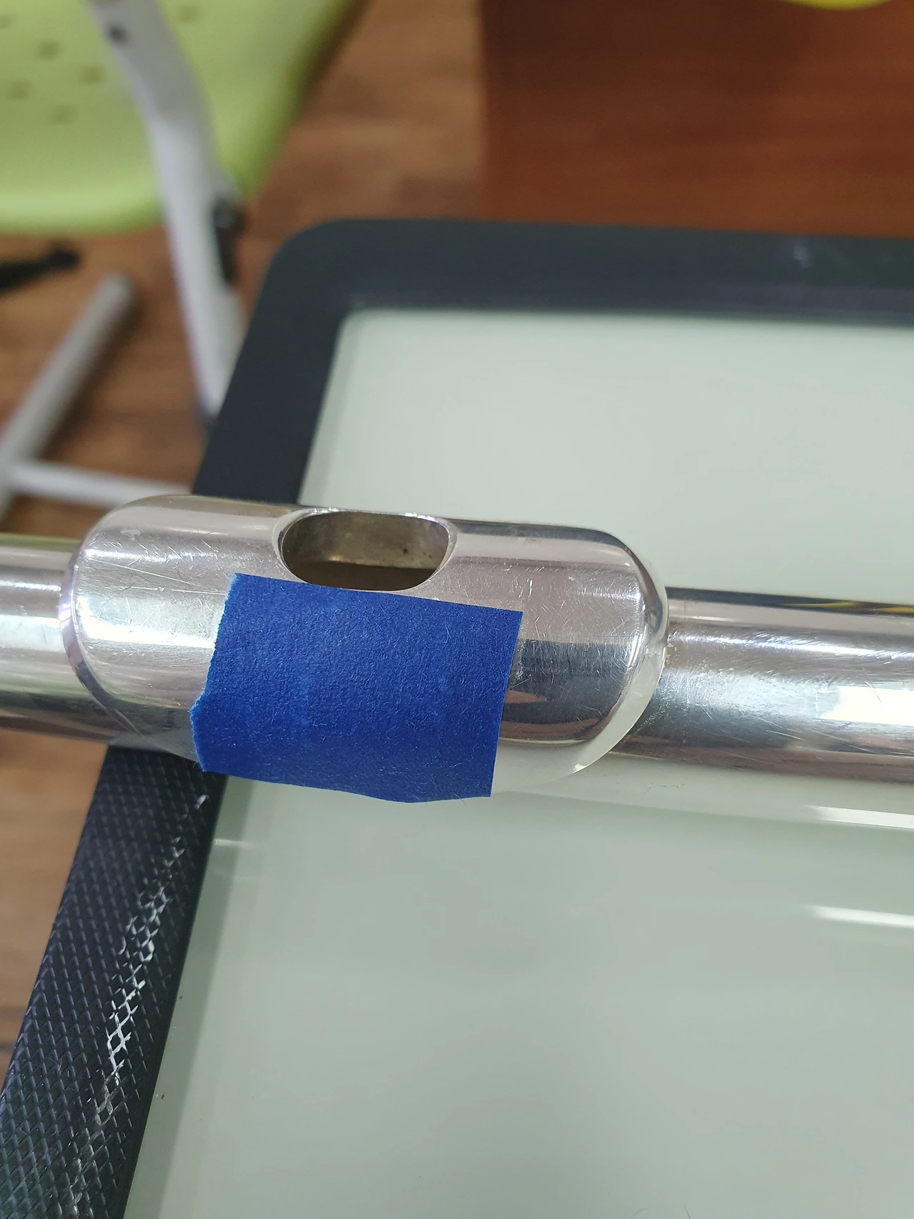플루트를 불 때 마우스피스 부분에 테이프를 붙이면 플루트를 불 때 끈적거리지 않아요
