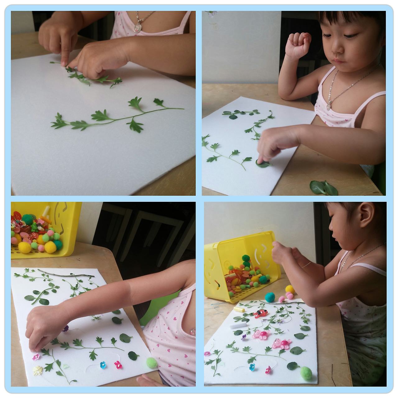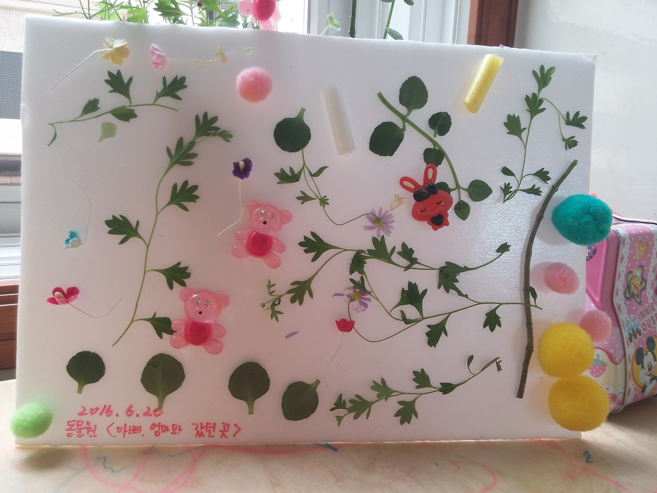 밖에 나가 꽃과 여러 나뭇잎을 따오려고 했는데...