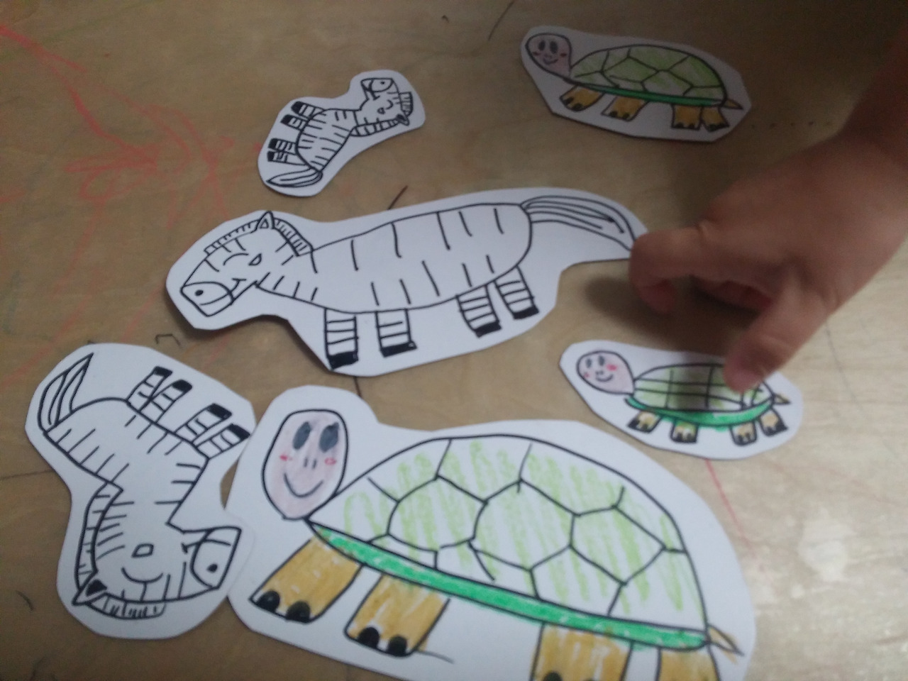 다른 얼룩말과 거북을 그려준 후 가위로 오려내었다