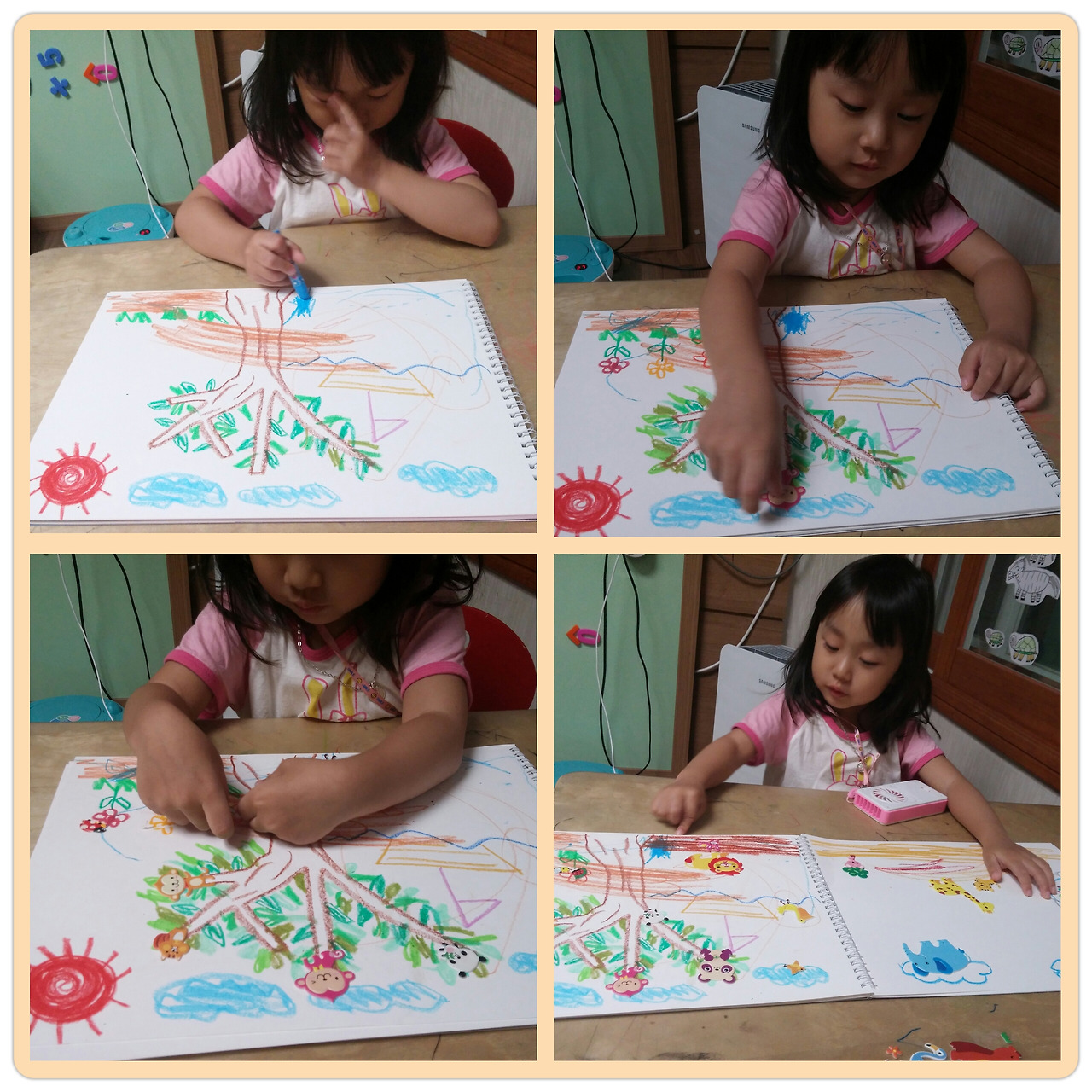 친구네 가면 나와 친구가 수다를 떠는 동안 의미없이 여기저기 붙이고 종이에 붙이고 오분이면 스티커 하나를 다 써 버릴거 같아 집에 가 엄마랑 하자고 하니 딸 아이도 좋다고 한다