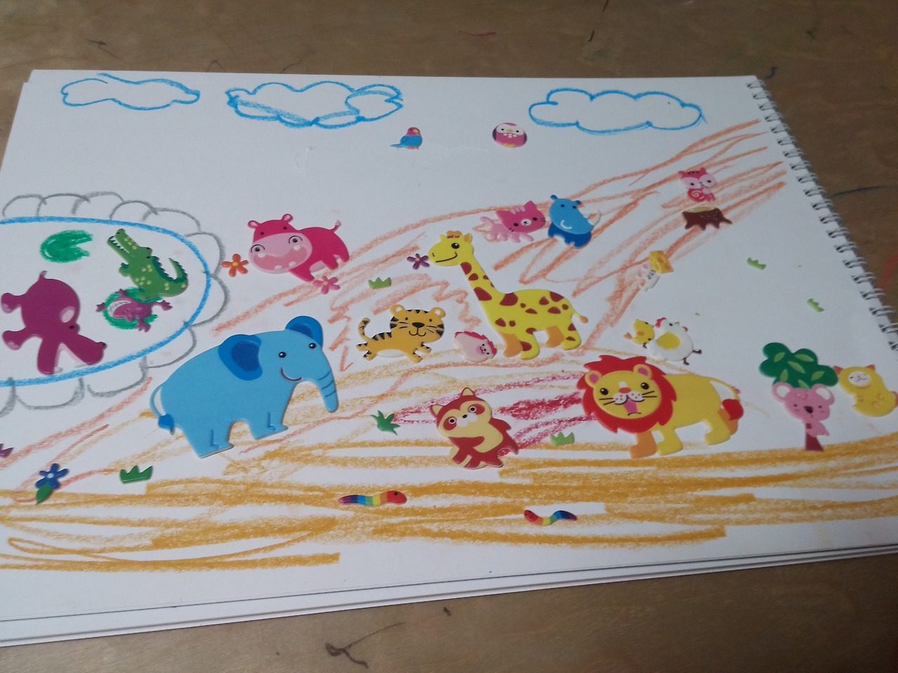 준비물은 스케치북.크레파스.스티커
