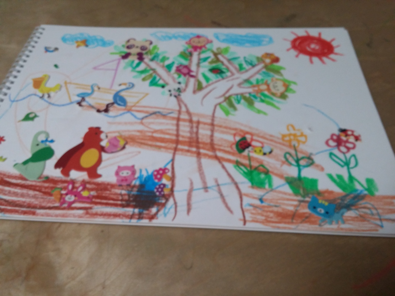 우선 아이와 스케치북에 땅.나무.하늘. 바다.연못 같은 강을 그렸다