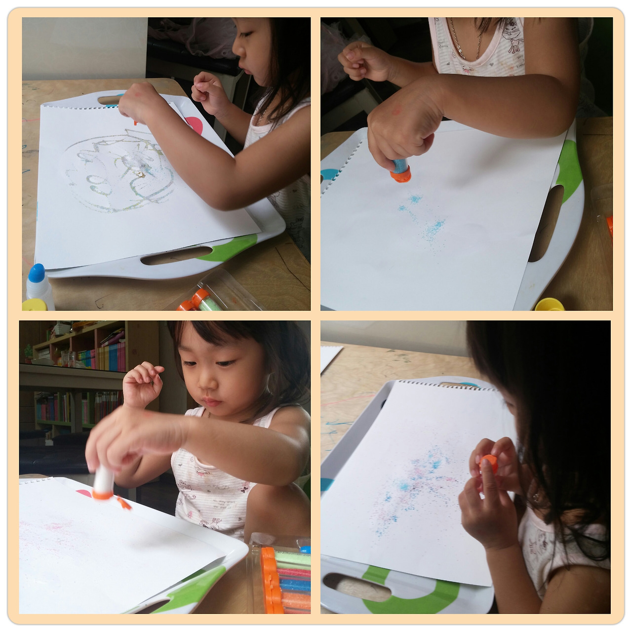저렇게 7장인가 정도를 그리고 색모래로 꾸미고 반복하며 놀더니 배 고프다는 딸