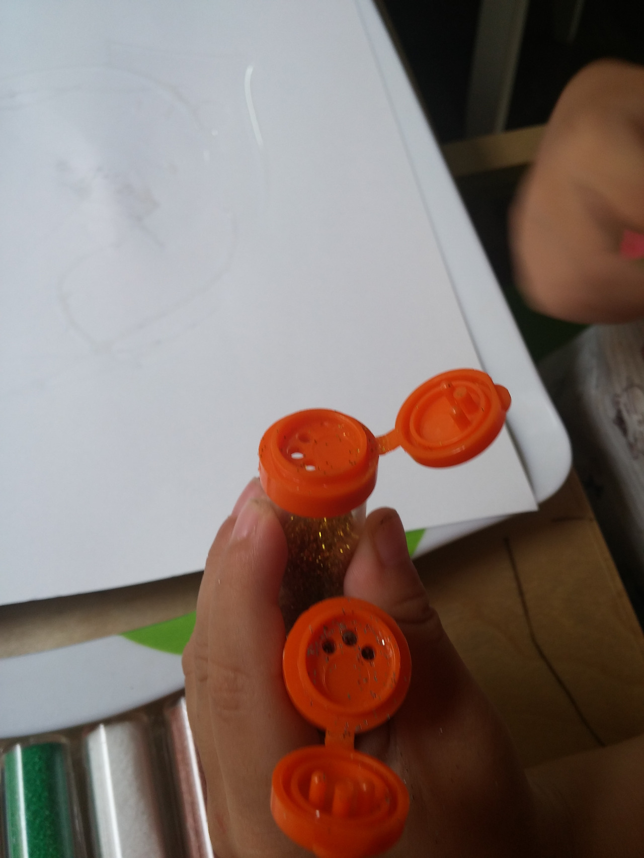 풀로 그림을 그리면 잘 보이지 않는 걸 이야기하고 색모래를 뿌려 흔들기만 하면 끝!!!