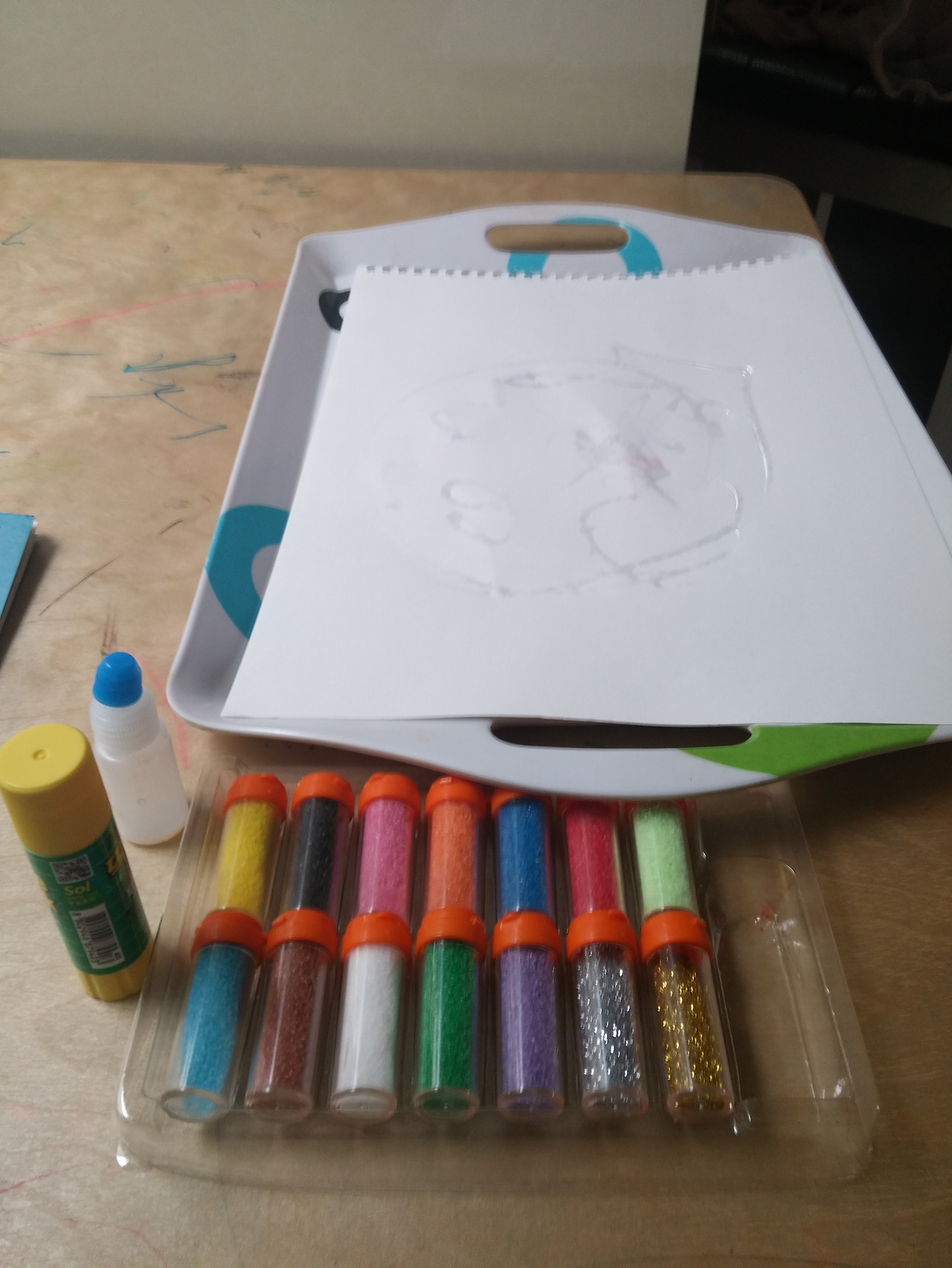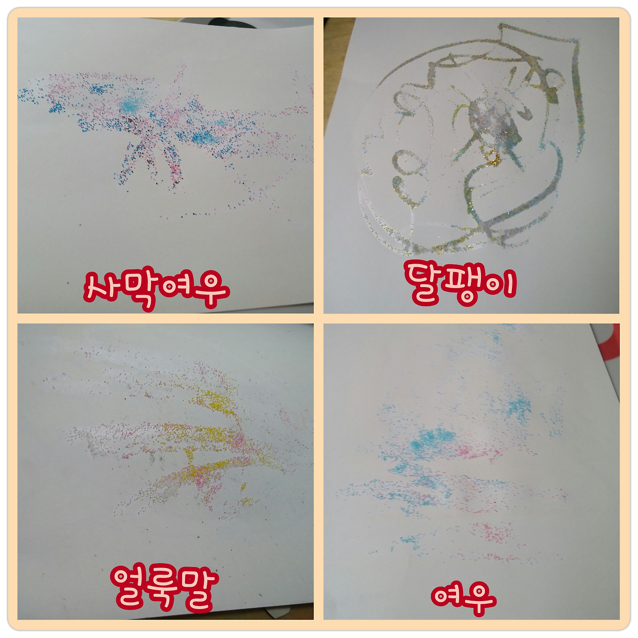 누구나 초등학교에서 한 번쯤 해 보았을 그 놀이!! 풀로 먼저 그림 그리고 색모래 뿌려 꾸미기
